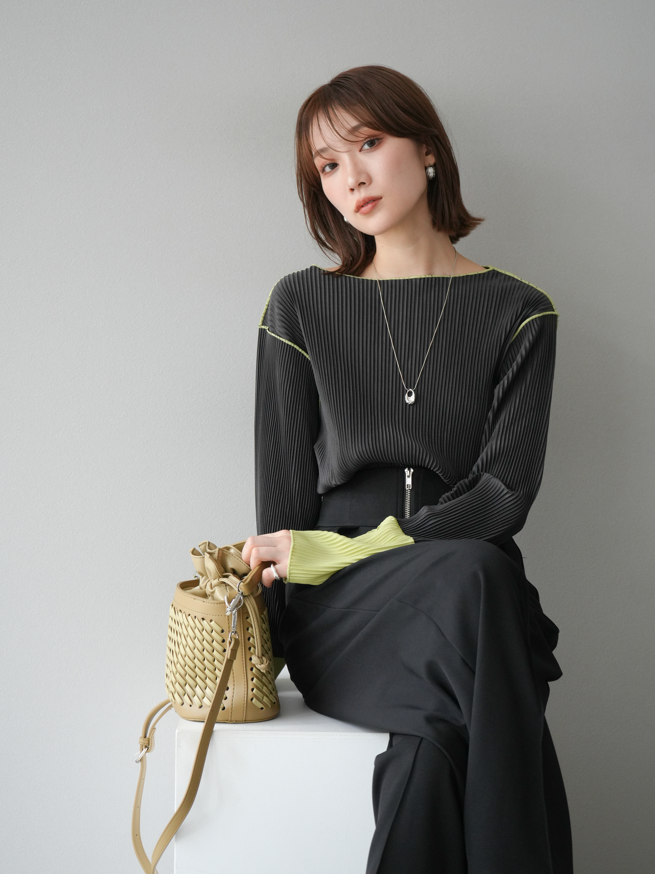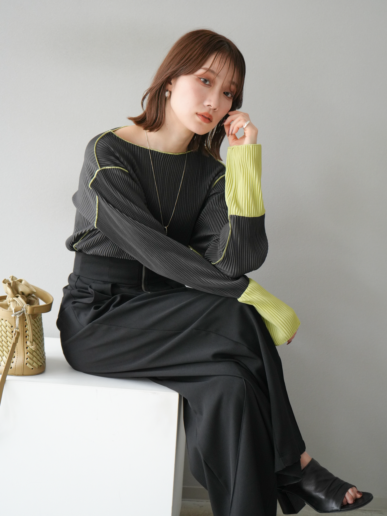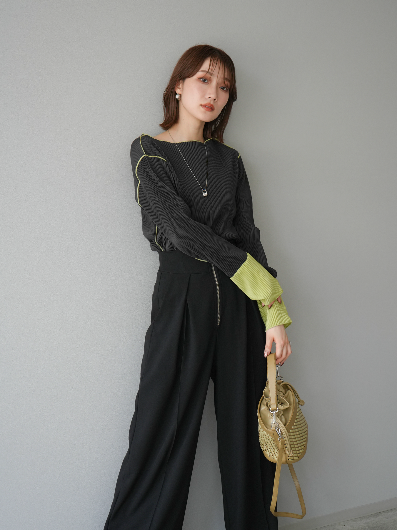 [予約]バイカラープリーツトップスに関連する商品を探す↓