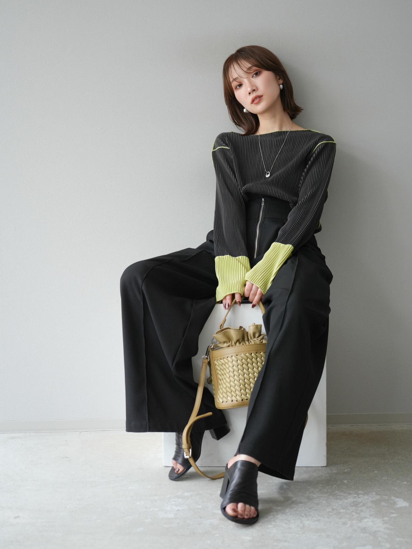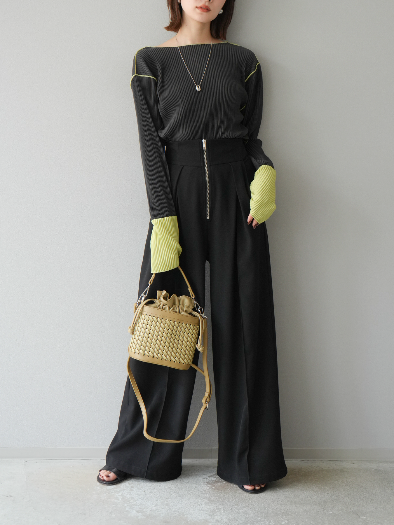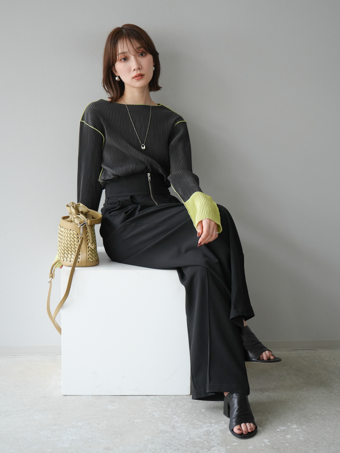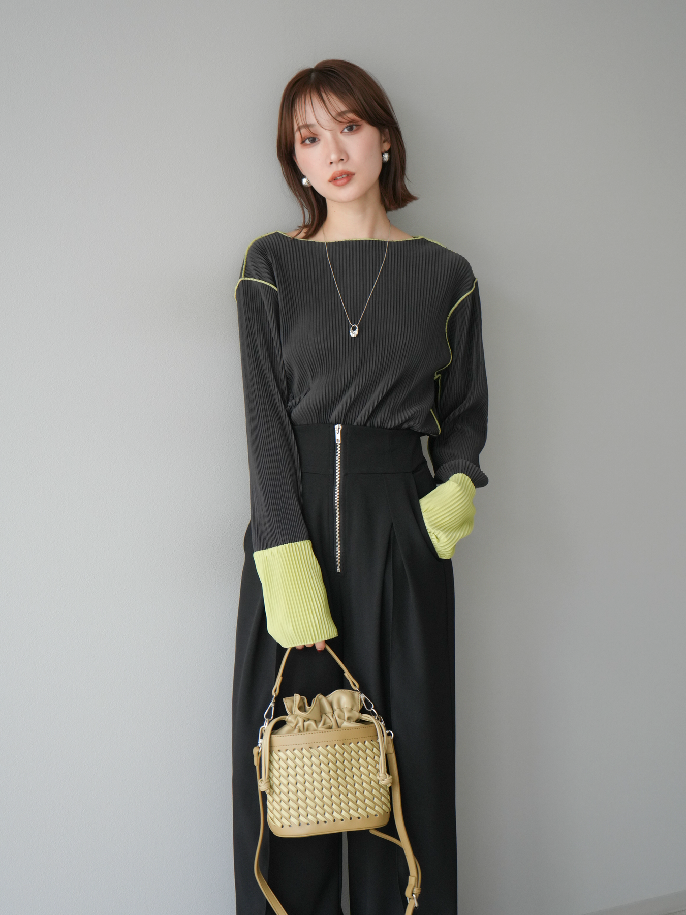 [予約]バイカラープリーツトップスに関連する商品を探す↓