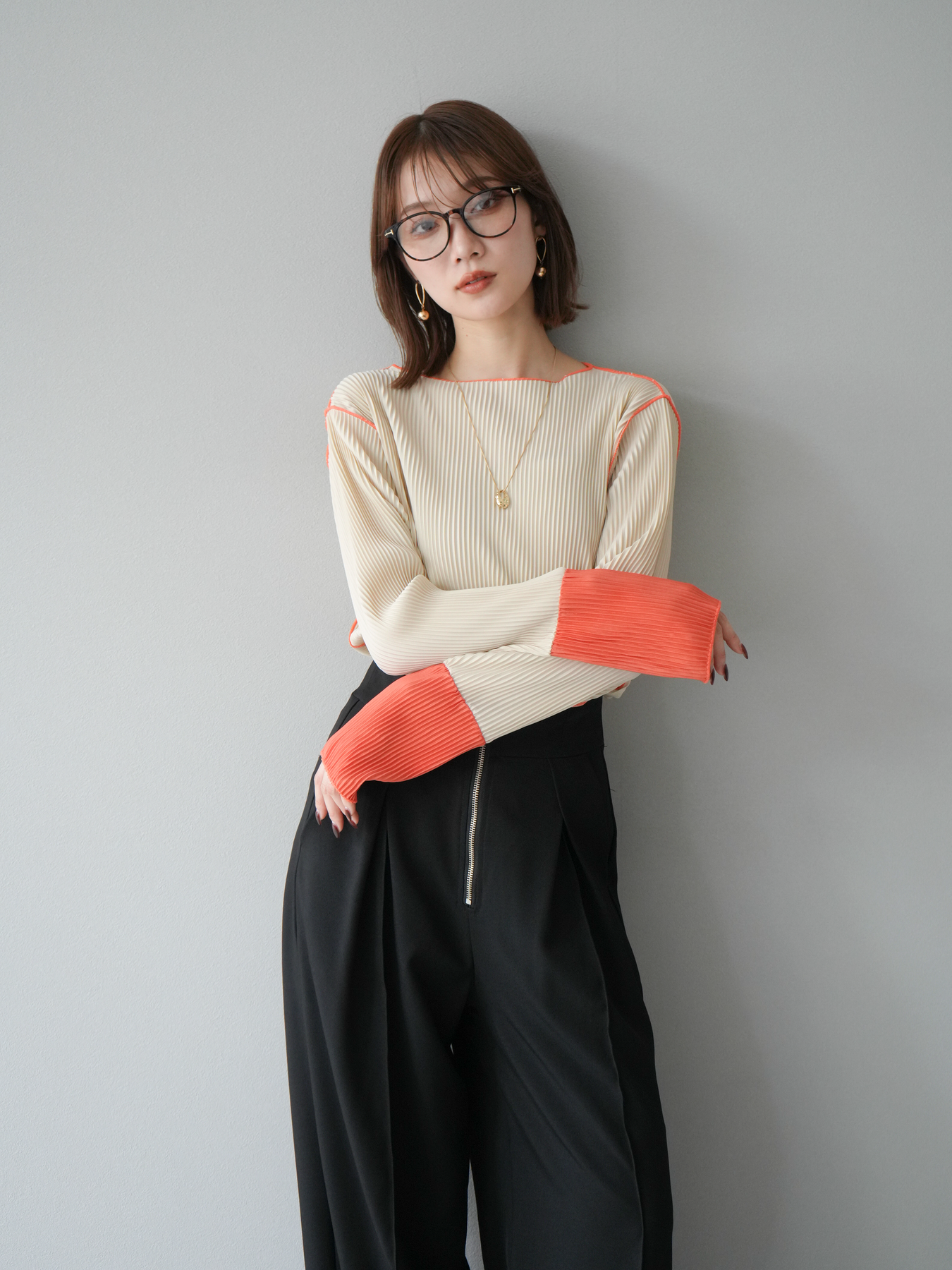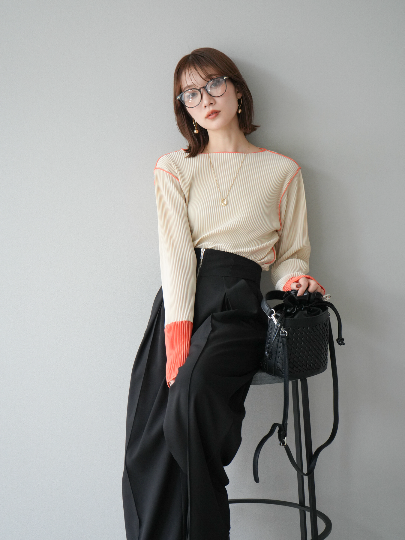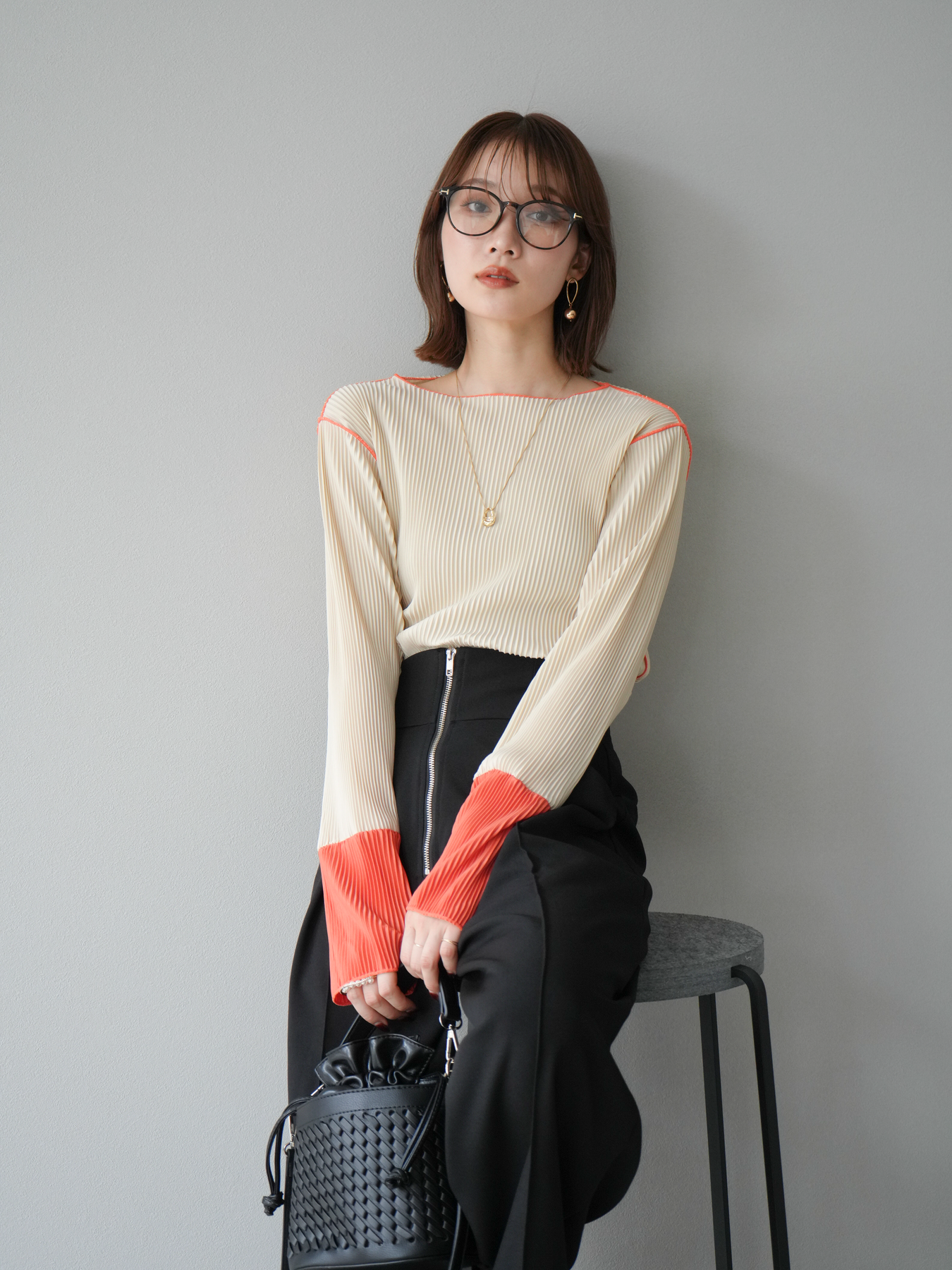 [予約]バイカラープリーツトップスに関連する商品を探す↓