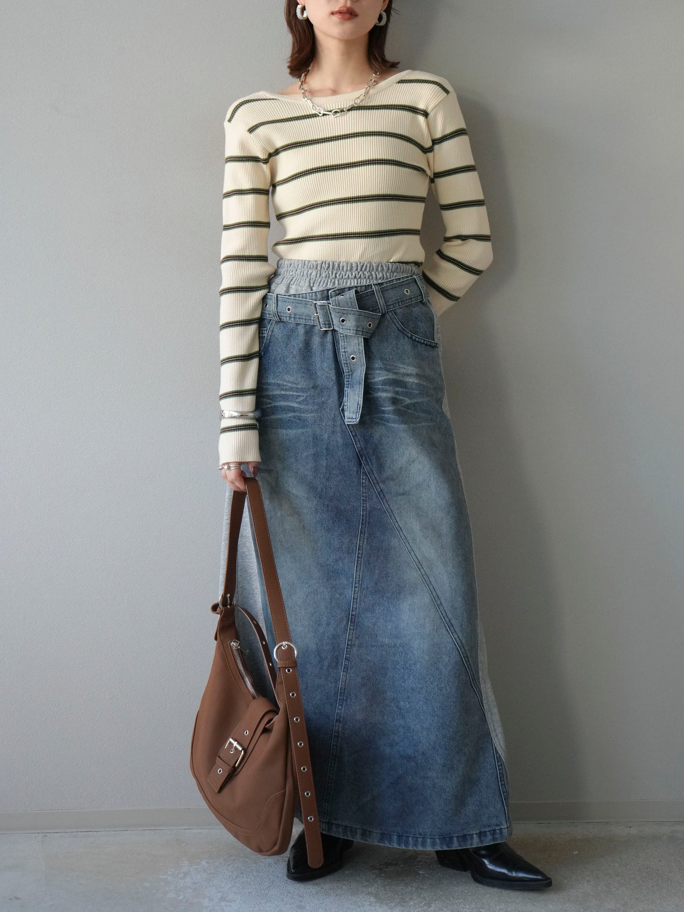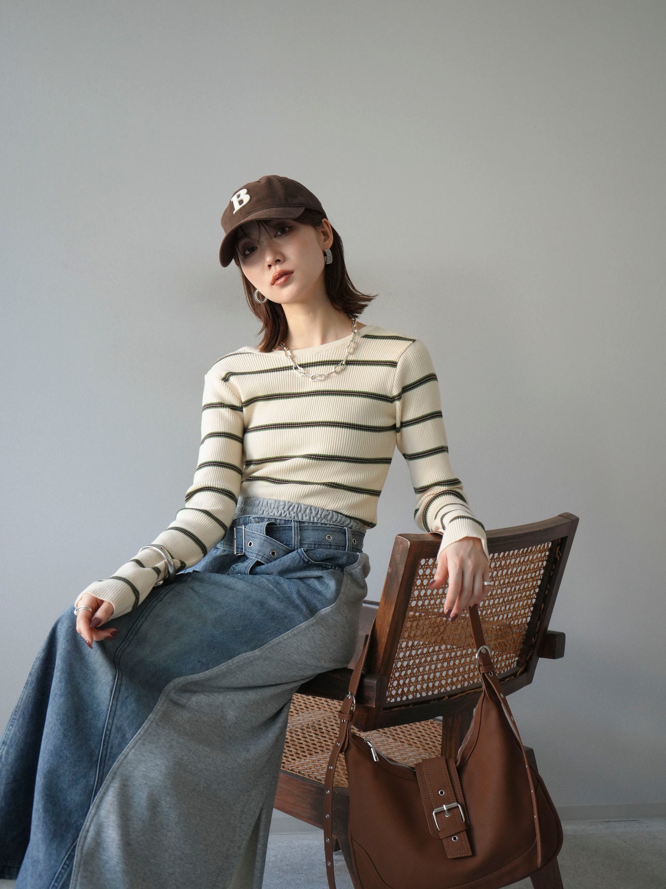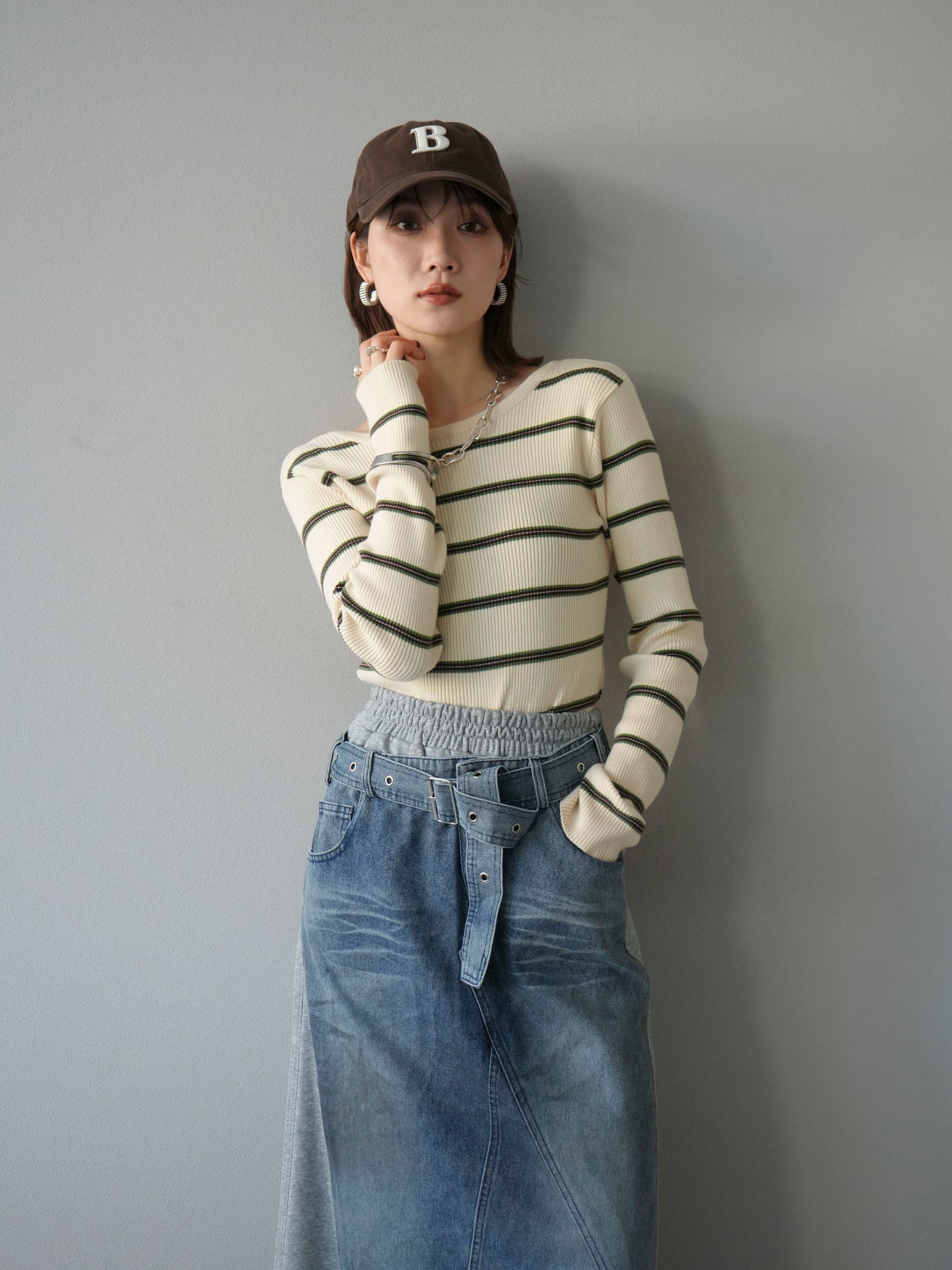 [予約]バックオープンボーダーテレコリブトップス/アイボリー