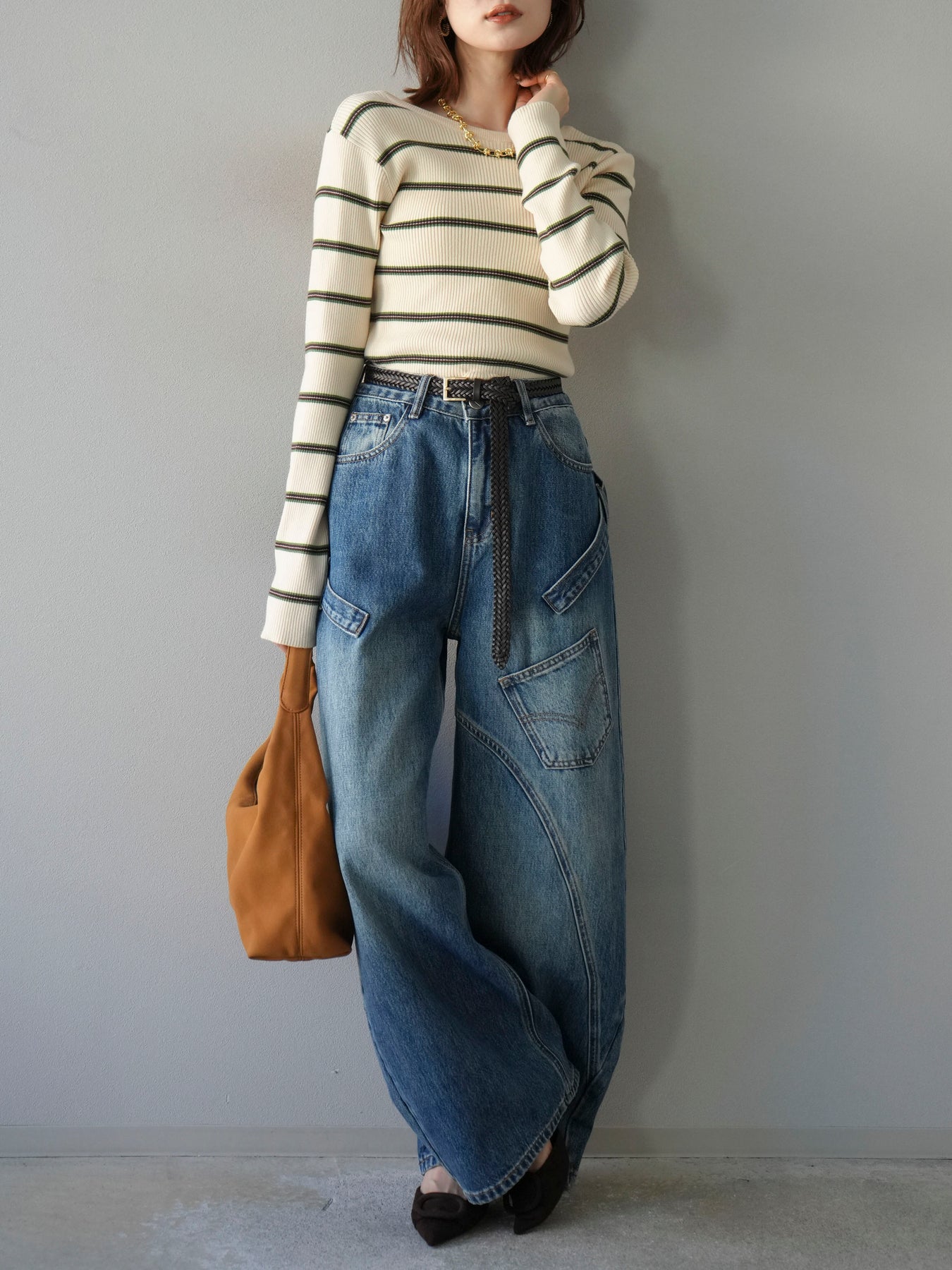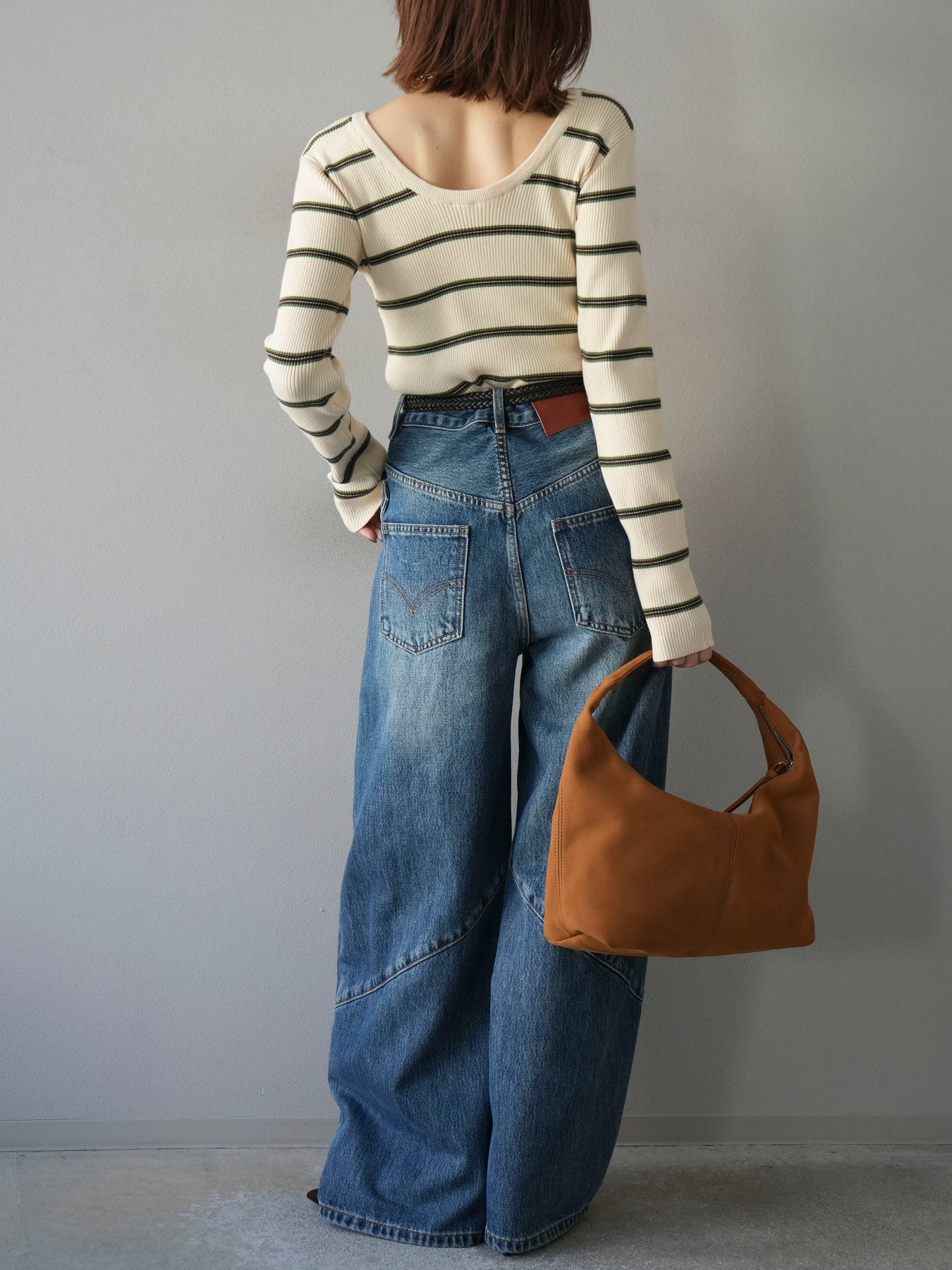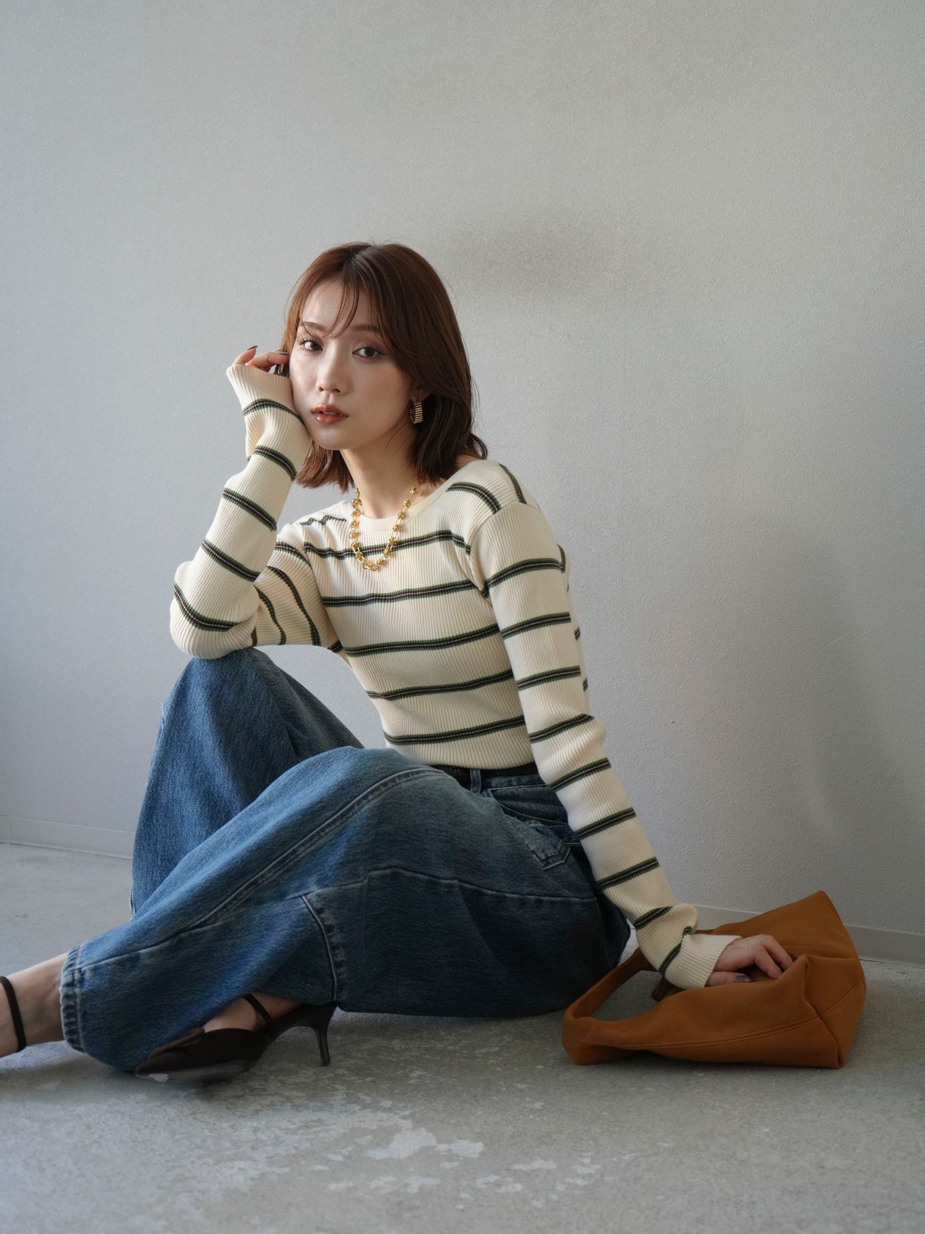 程よいフィット感と伸縮性のあるテレコリブ素材を使用したボーダートップス。フロントはベーシックな印象ながら、背中が大きく開いたバックオープンデザインで女性らしい抜け感を演出します。コンパクトなシルエットがスタイルをすっきりと見せ、カジュアルにもモードにも取り入れやすい一着。デニムやスラックスでラフに、スカートと合わせてフェミニンにと幅広い着こなしが可能。1枚でコーディネートにアクセントを加えてくれるアイテムです。 ※ボトムス、キャミソール(インナー)以外の商品は一律でインナーは付属していません。