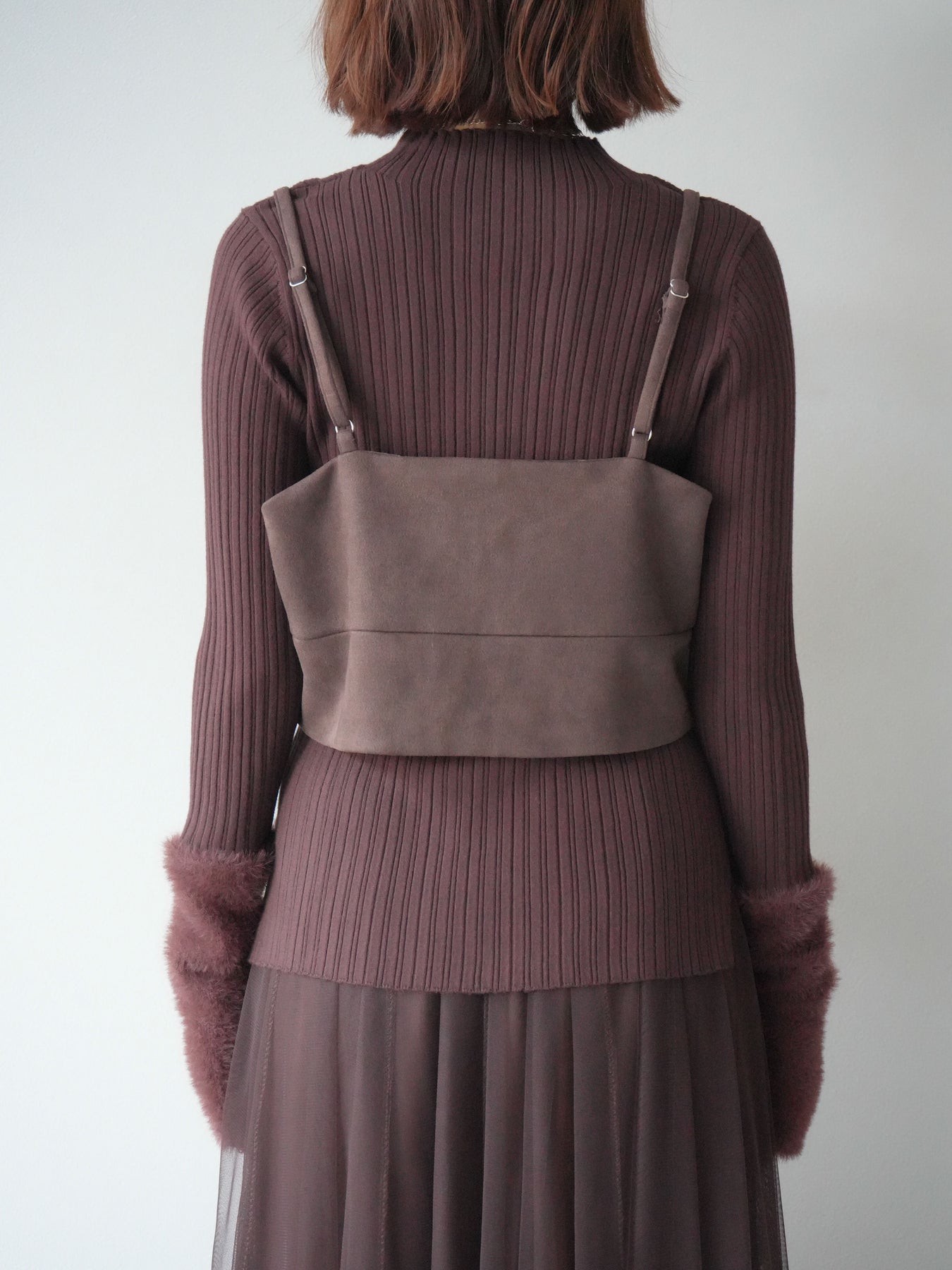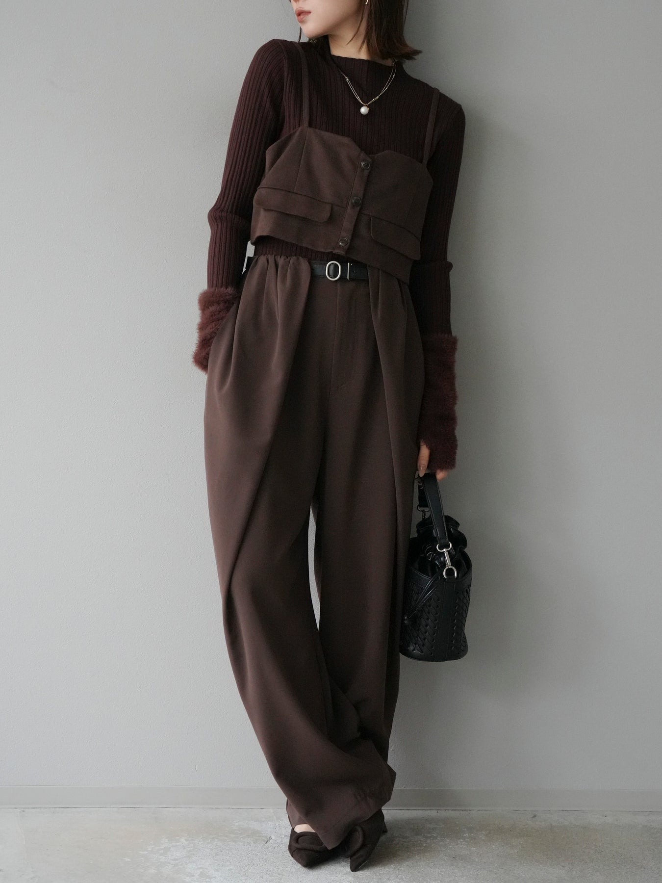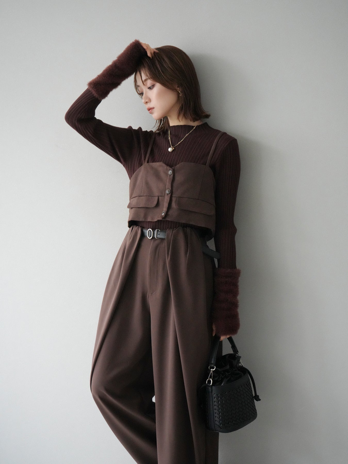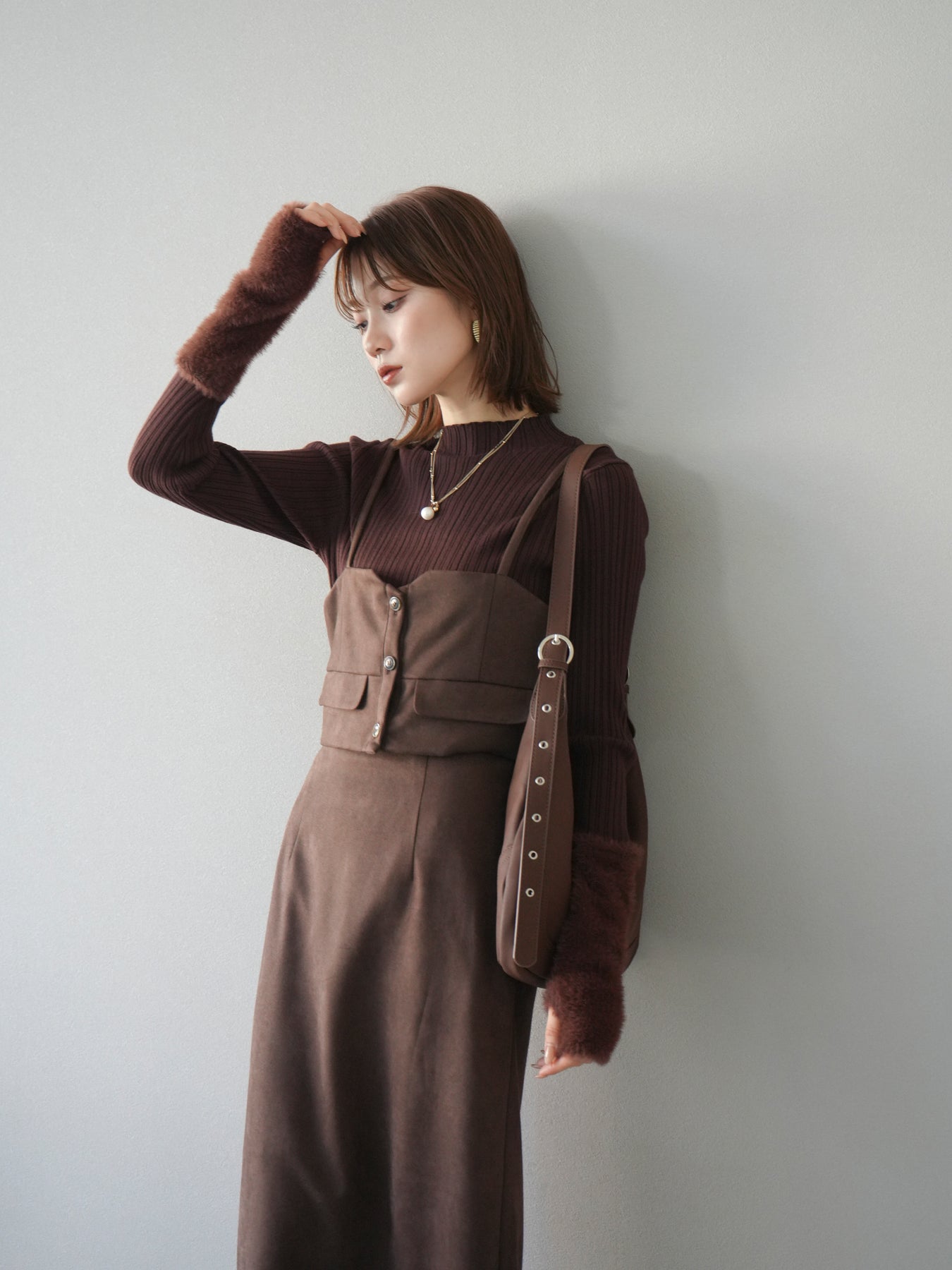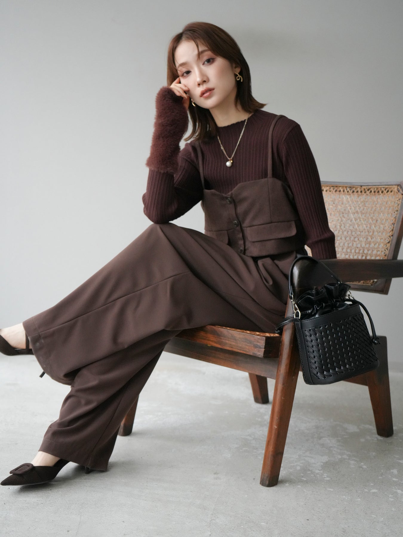 スウェード調素材を使用したビスチェは、シーズンムード漂う落ち着いた表情が魅力。コンパクトなシルエットながらも、フロントのボタンやポケットデザインがアクセントとなり、スタイリングに立体感をプラスしてくれます。シャツやカットソーに重ねればトレンド感のあるレイヤードスタイルに、ジャケットのインナーとして合わせればモードな印象に。ベーシックながらも存在感を放ち、コーディネートの幅を広げてくれるアイテムです。