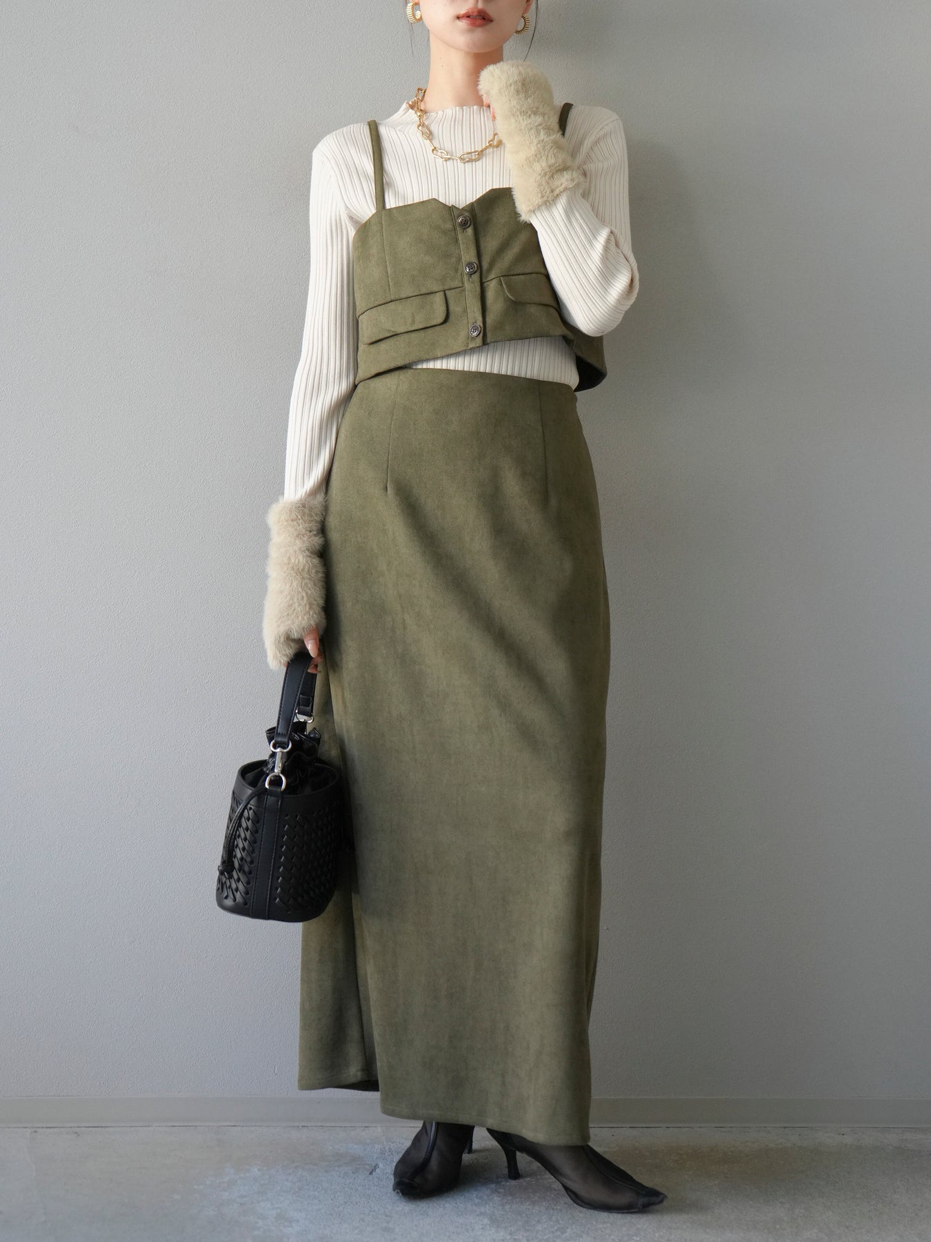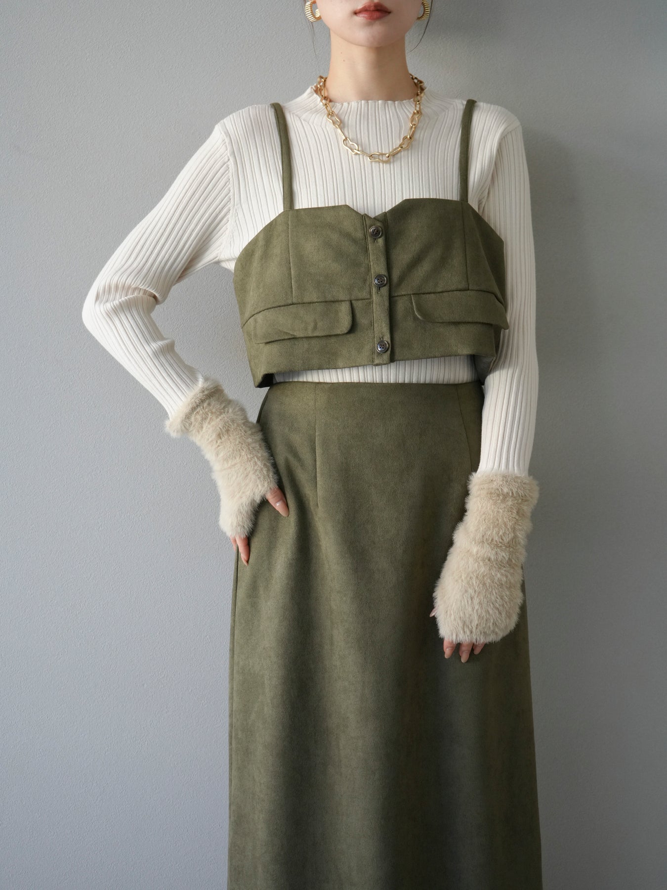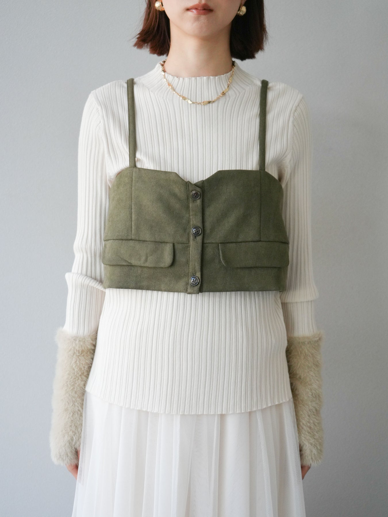 [予約]スウェードビスチェ/カーキ