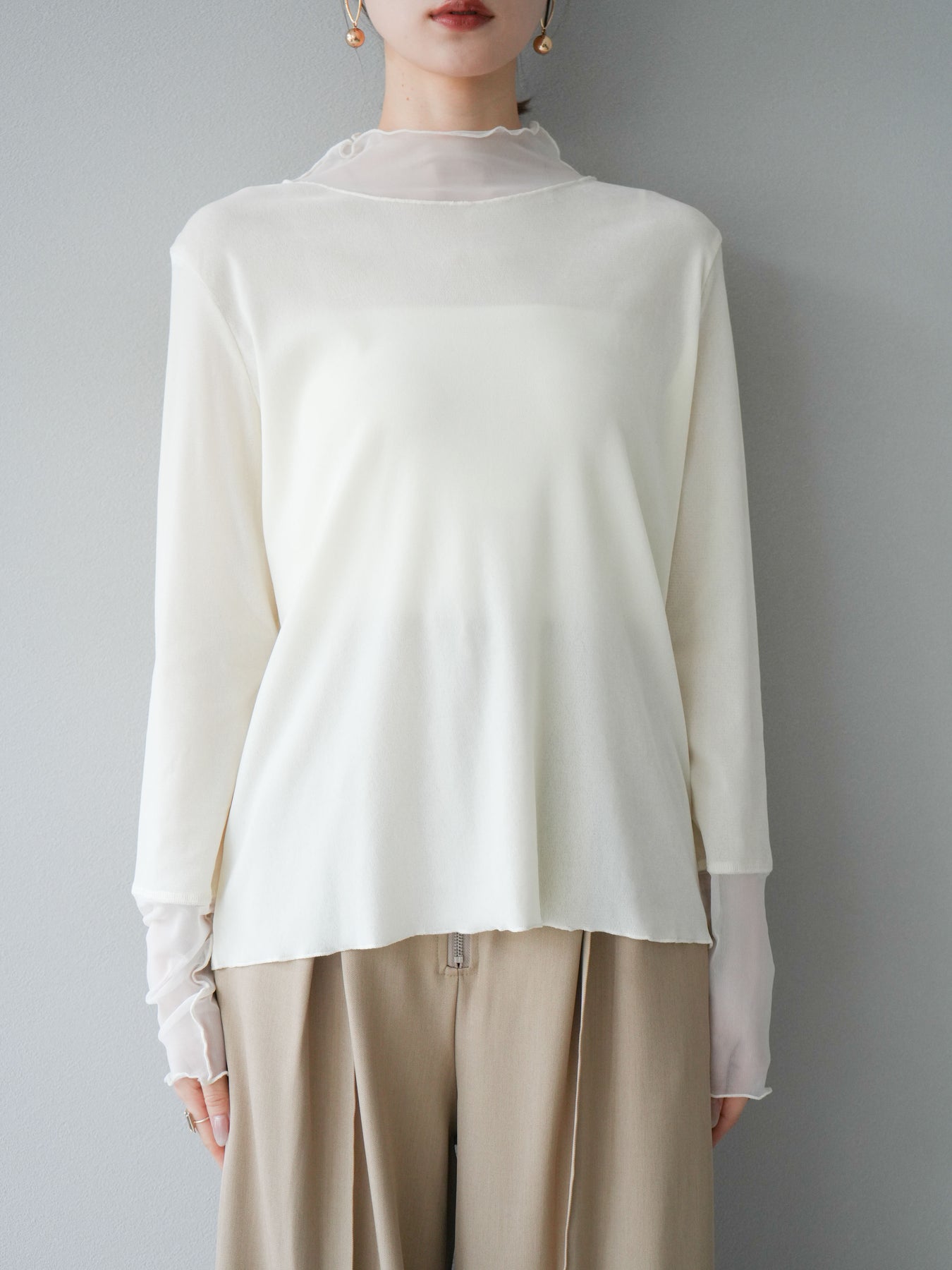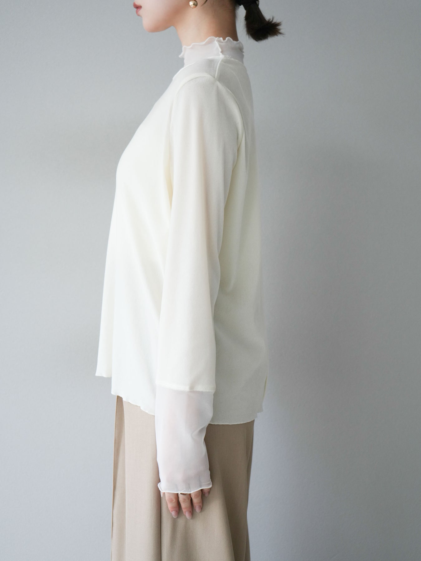 肩幅39cm バスト102cm アームホール40cm 袖丈62cm 袖口20cm 着丈60cm 透け感あり 伸縮性あり