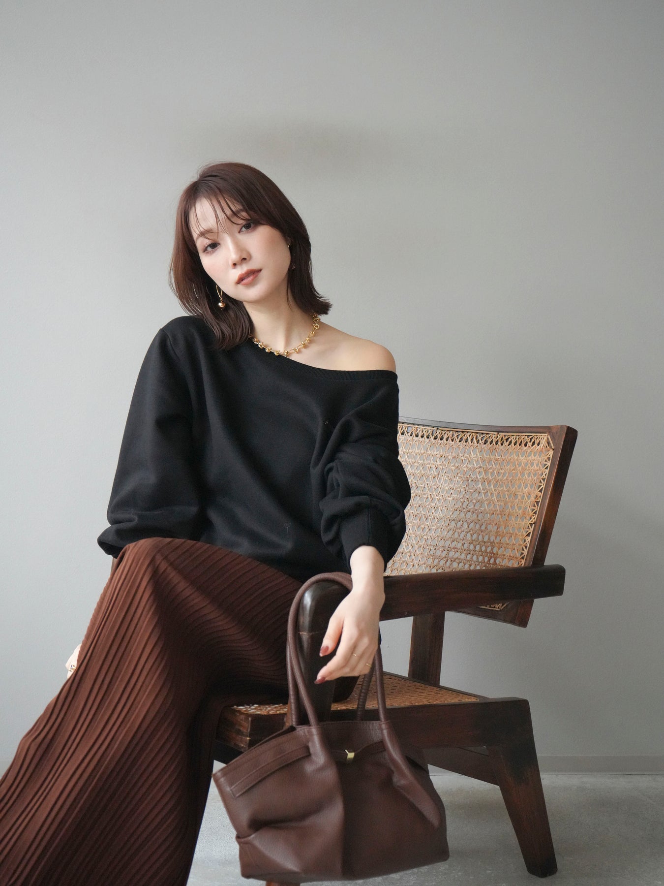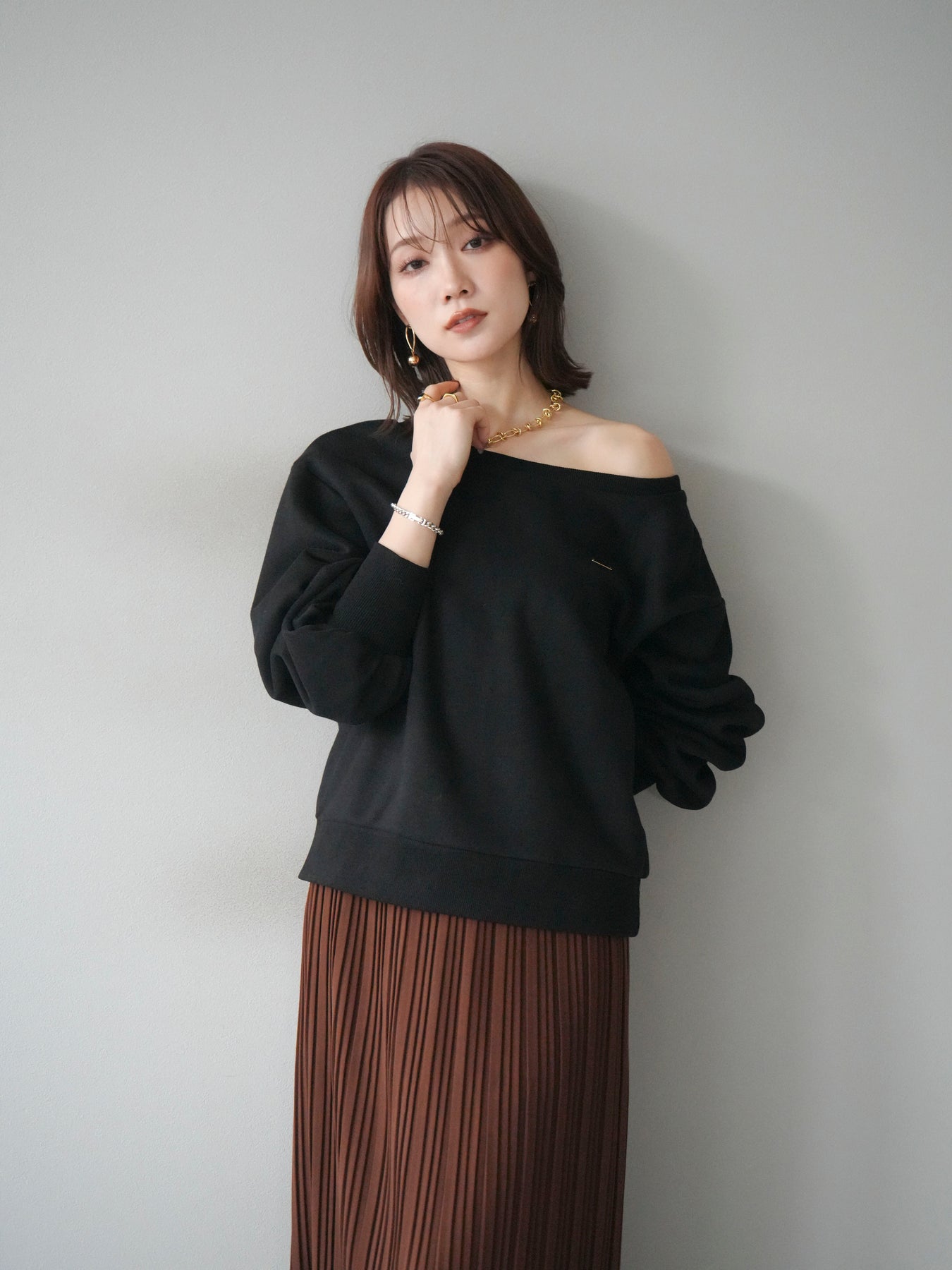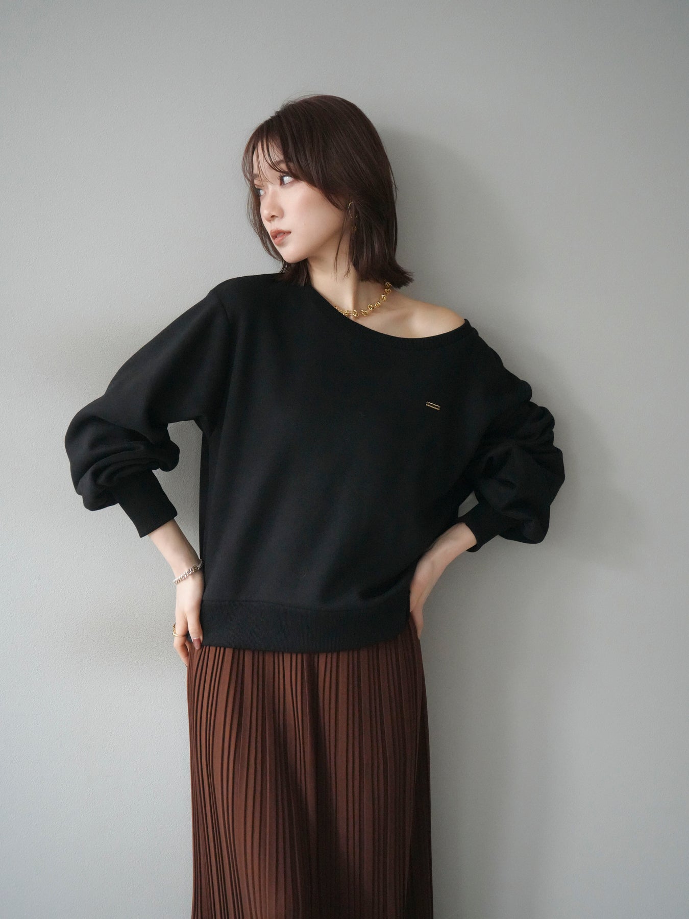 [予約]プレート付裏起毛ワンショルプルオーバー/black