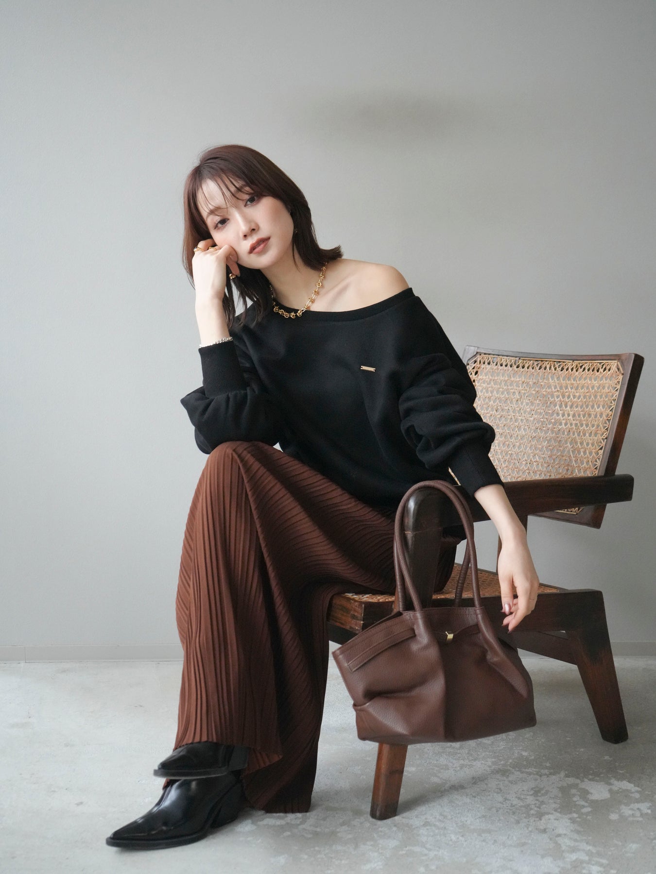 シンプルながらもさりげないデザイン性が光る、プレート付き裏起毛プルオーバー。 片方の肩を落として着られるワンショルダー仕様で、抜け感のある大人カジュアルな印象に仕上がります。 裏起毛素材でふんわりとした肌触りと暖かさを兼ね備え、リラックスした着心地。 フロントに施されたミニプレートが上品なアクセントとなり、シンプルコーデにも映えます。 デニムやスカートなど、合わせるアイテムを選ばずデイリーに活躍する万能トップスです。 ※ボトムス、キャミソール(インナー)以外の商品は一律でインナーは付属していません。