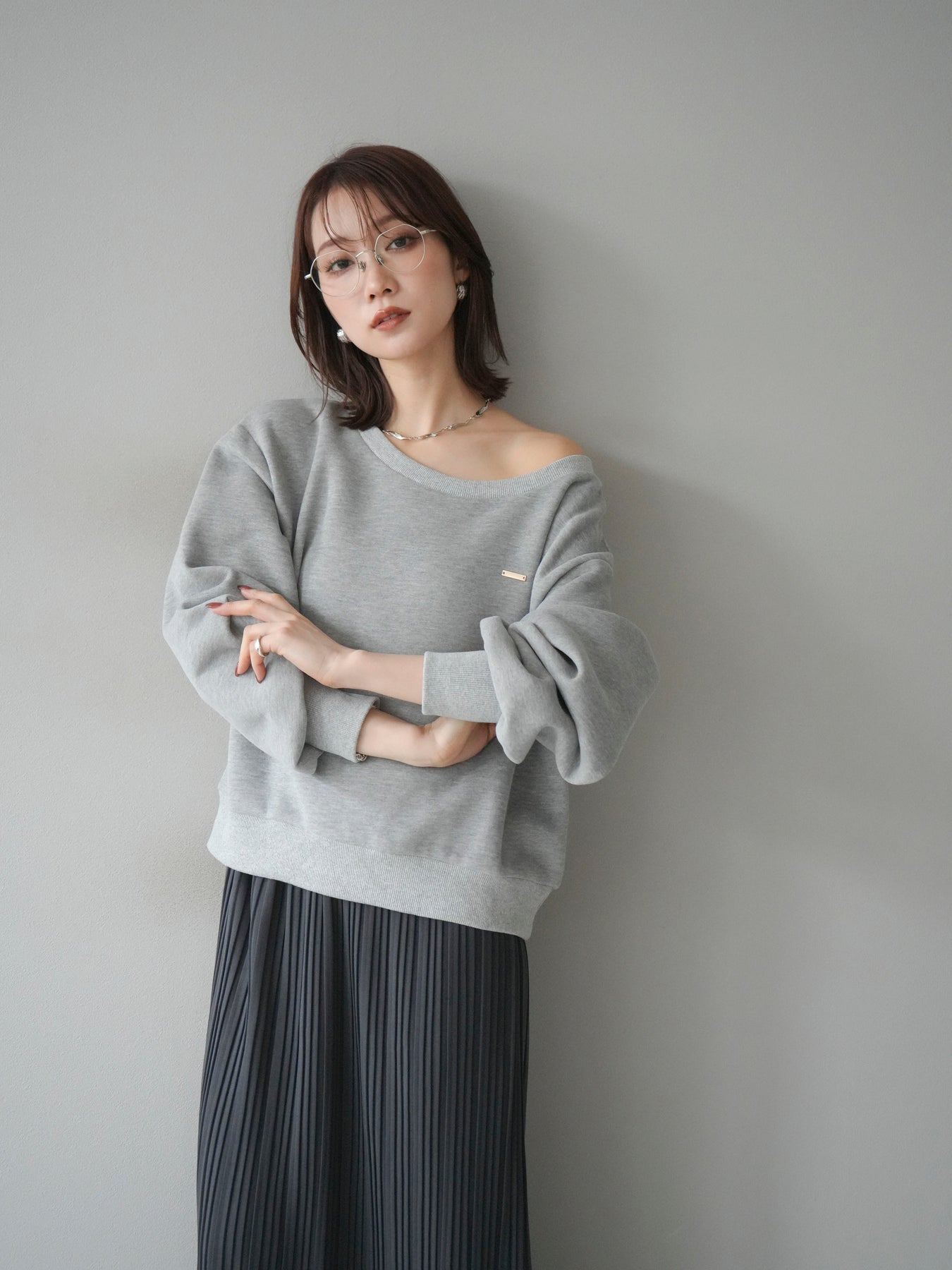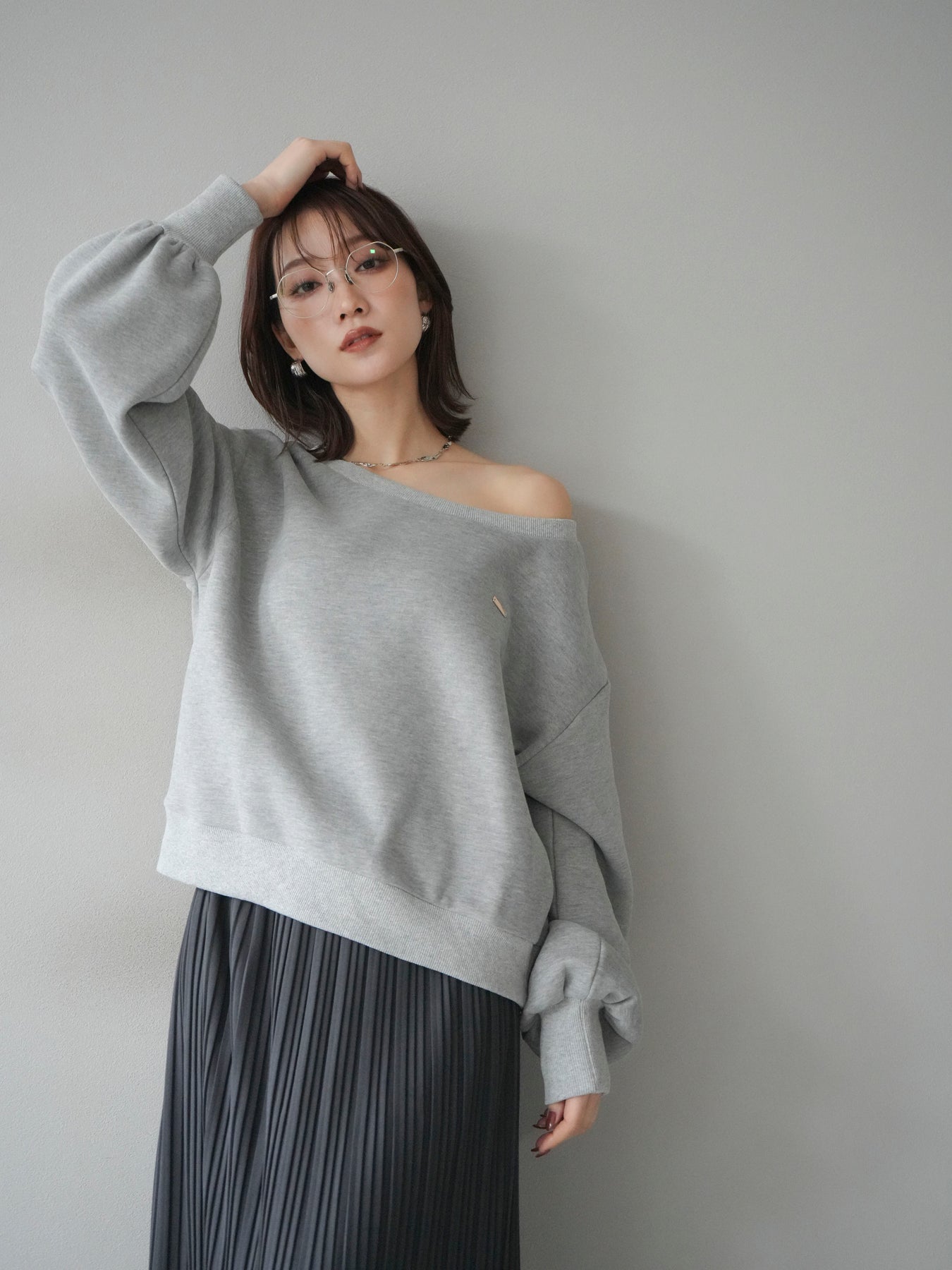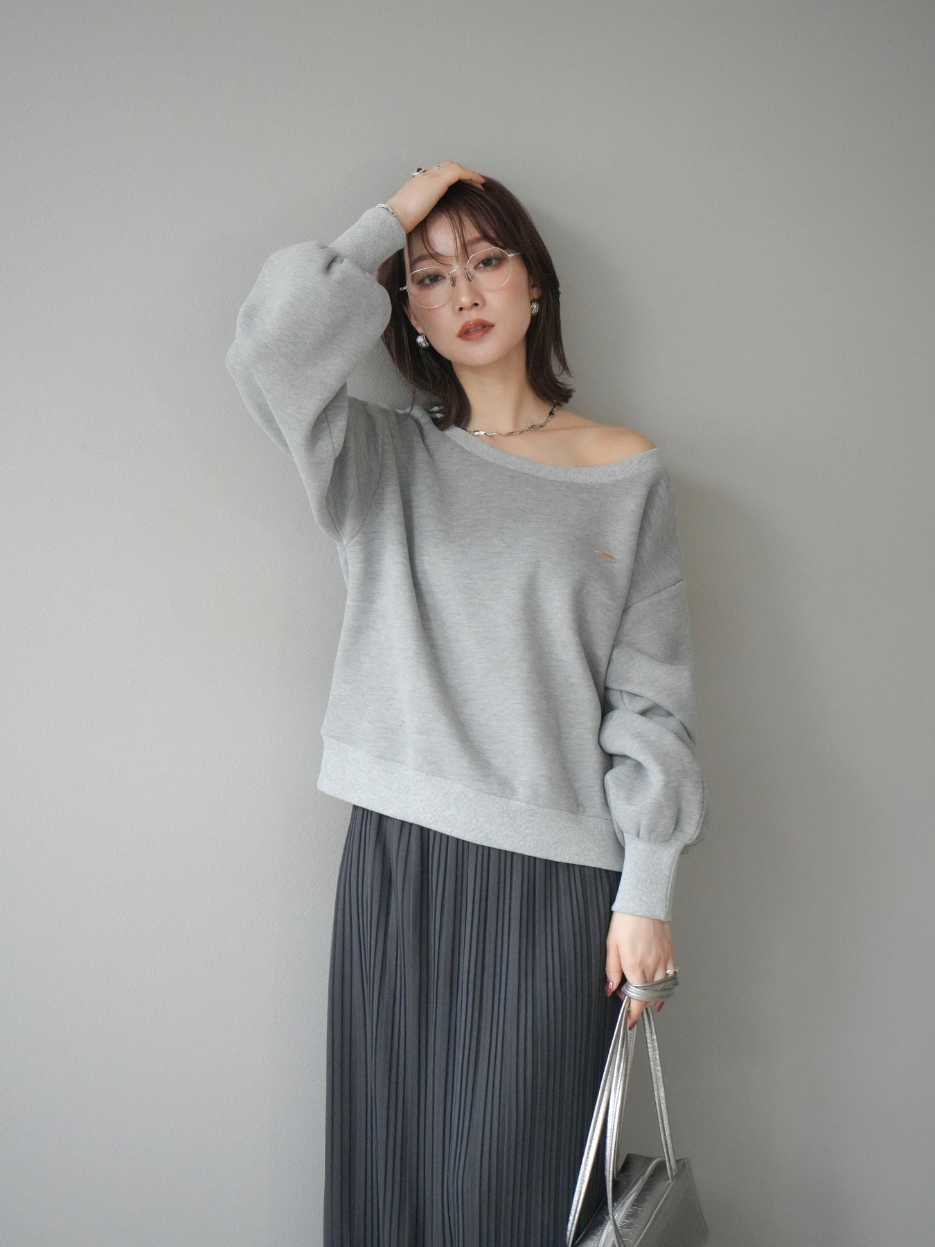 [予約]プレート付裏起毛ワンショルプルオーバー/mixgray