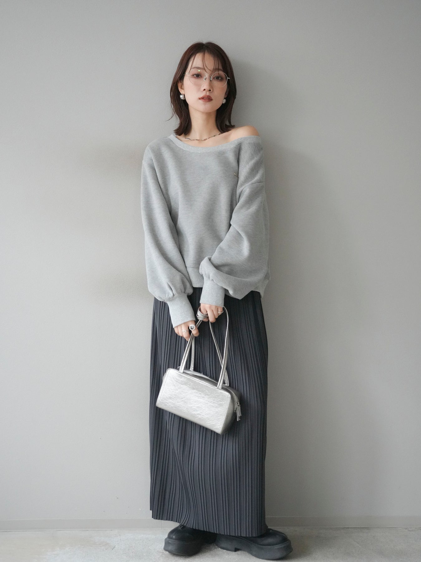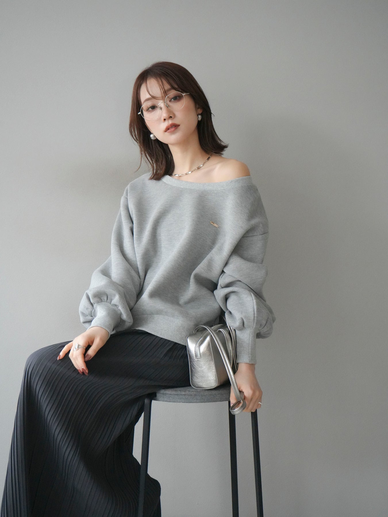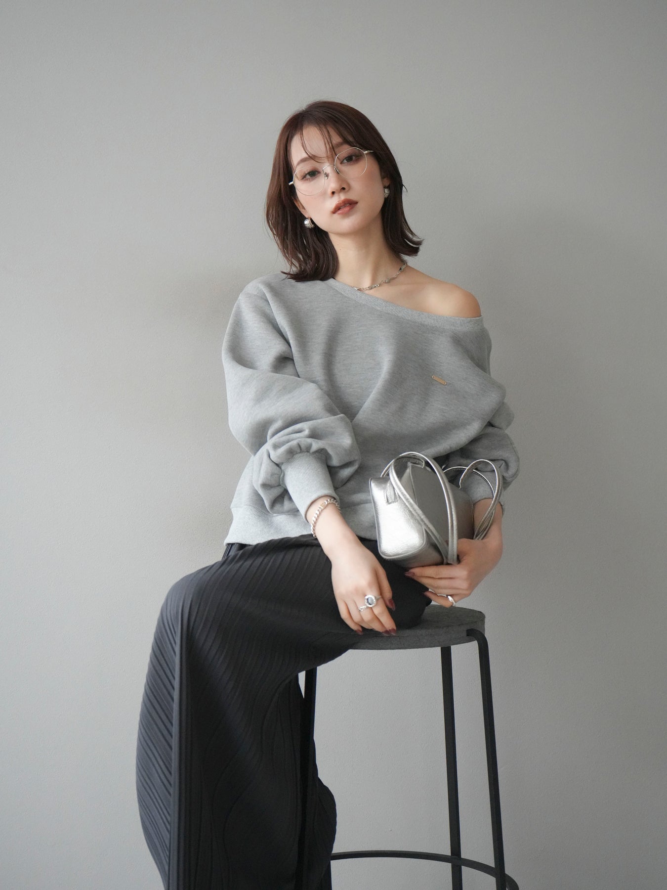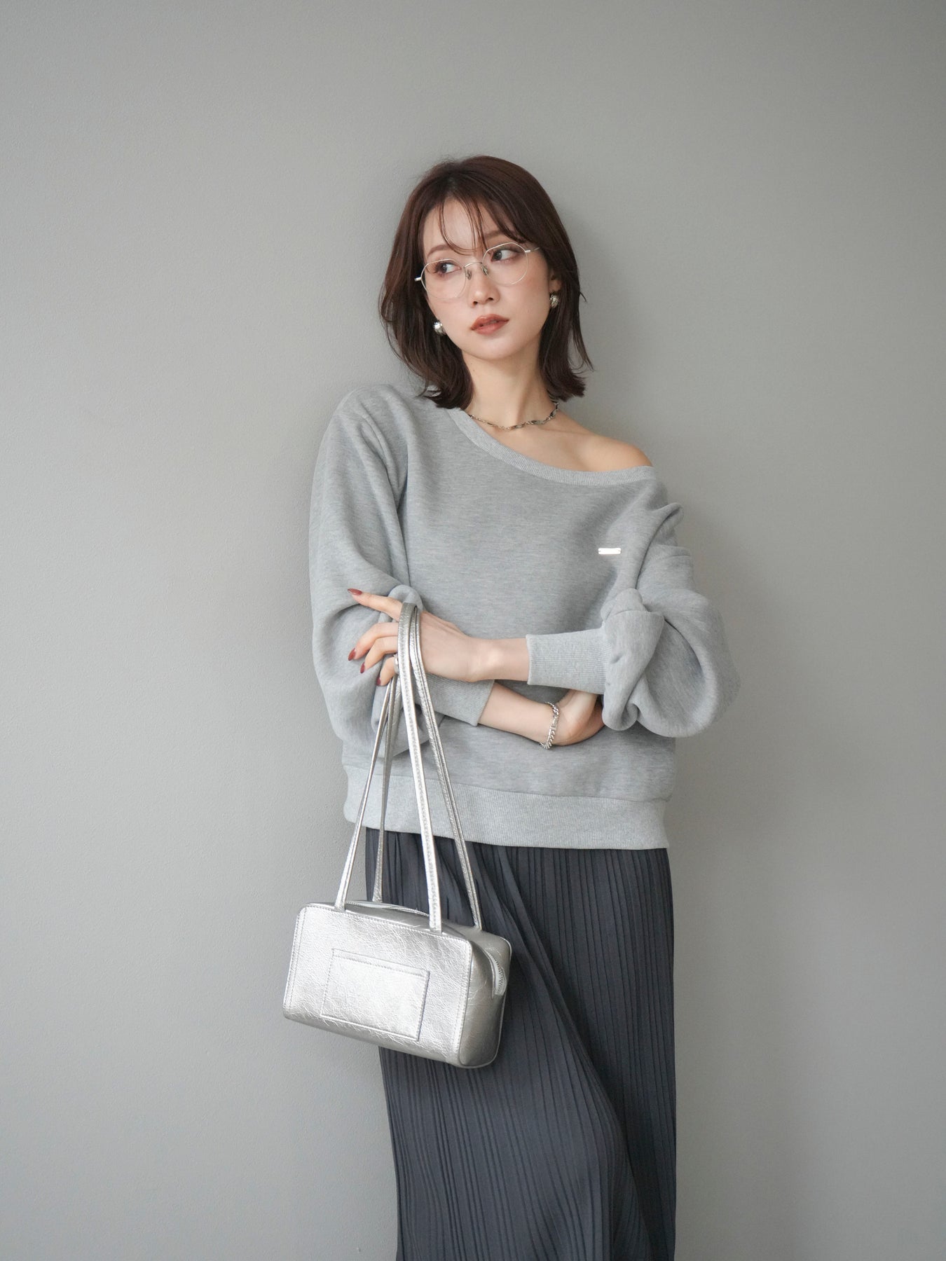 [予約]プレート付裏起毛ワンショルプルオーバー/mixgray