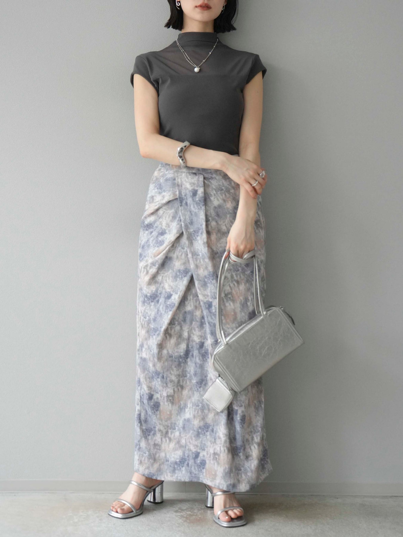 このトップスは、シアー素材とストレッチ素材の絶妙な組み合わせが特徴です。シアー部分が上品な透け感を演出し、女性らしさを引き立てます。一方、ストレッチ素材が快適な着心地を提供し、動きやすさを実現します。デザインはシンプルながらも洗練されており、カジュアルなデニムやスカートと合わせても、おしゃれに決まります。幅広いコーディネートに活躍する一枚です。