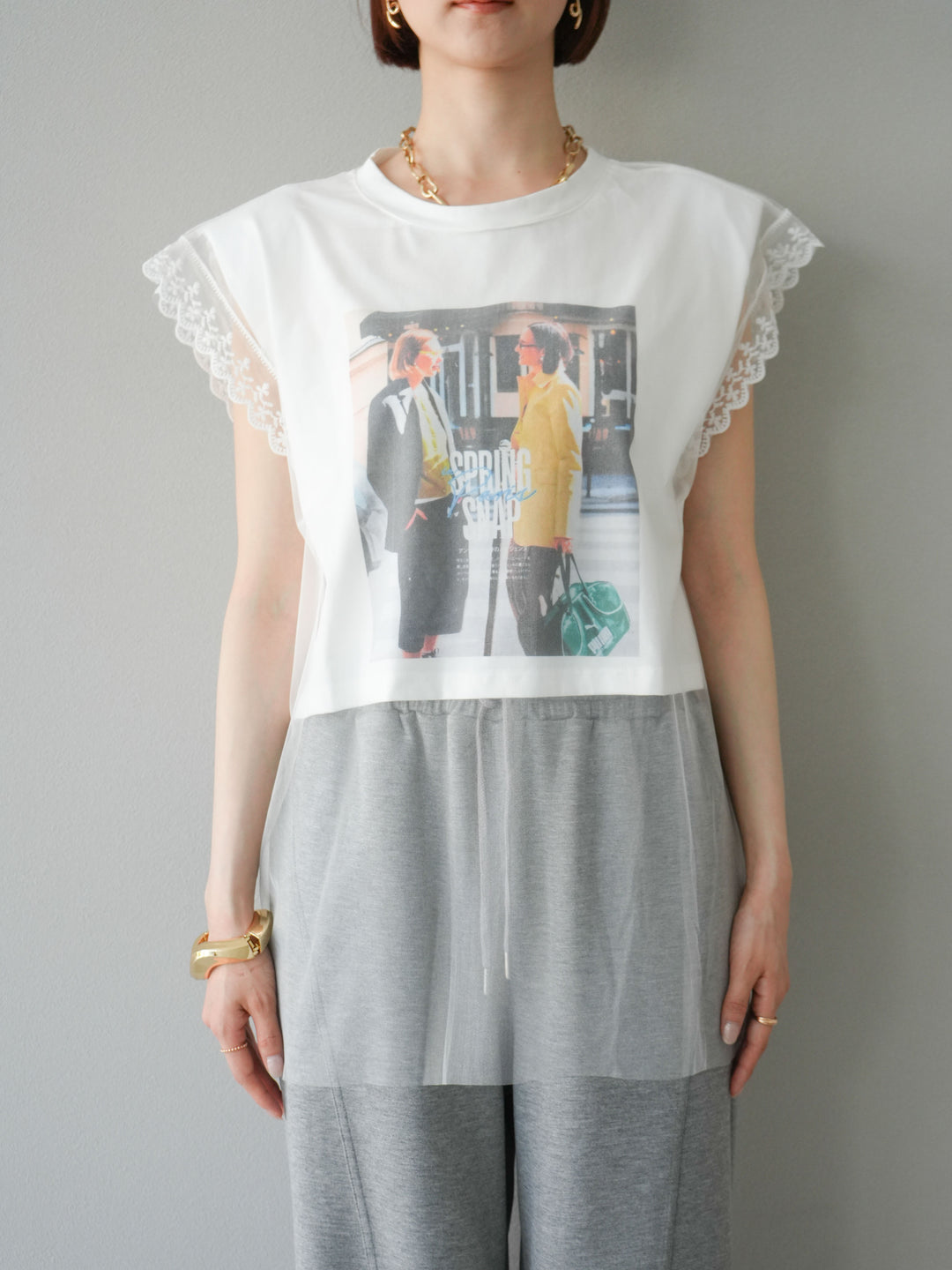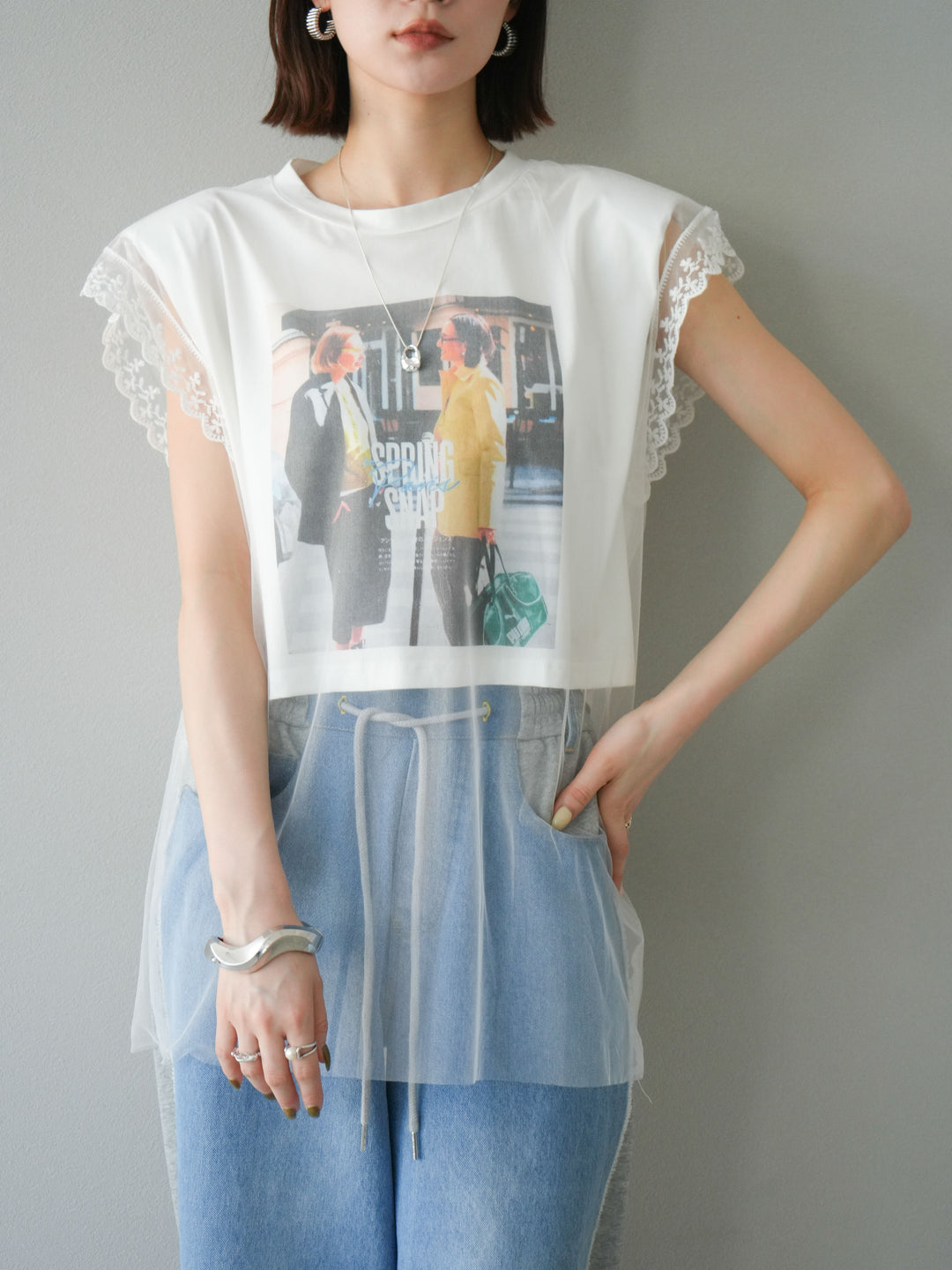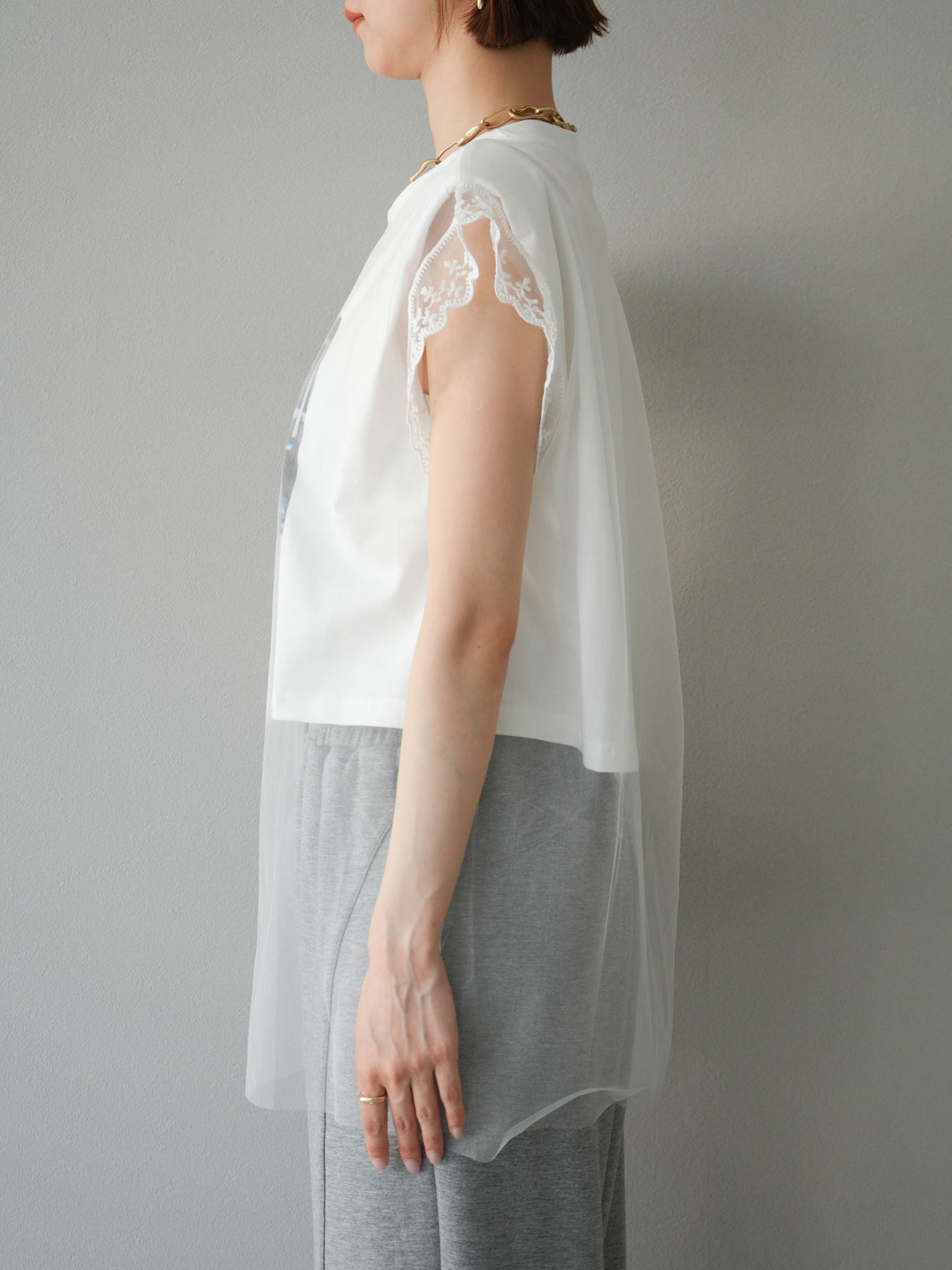 [予約]チュールレイヤードロゴプリントトップス/オフホワイト