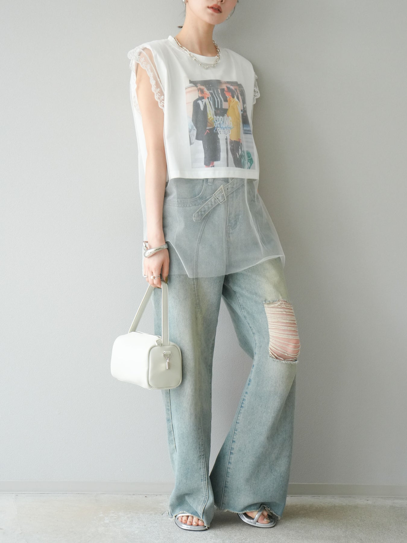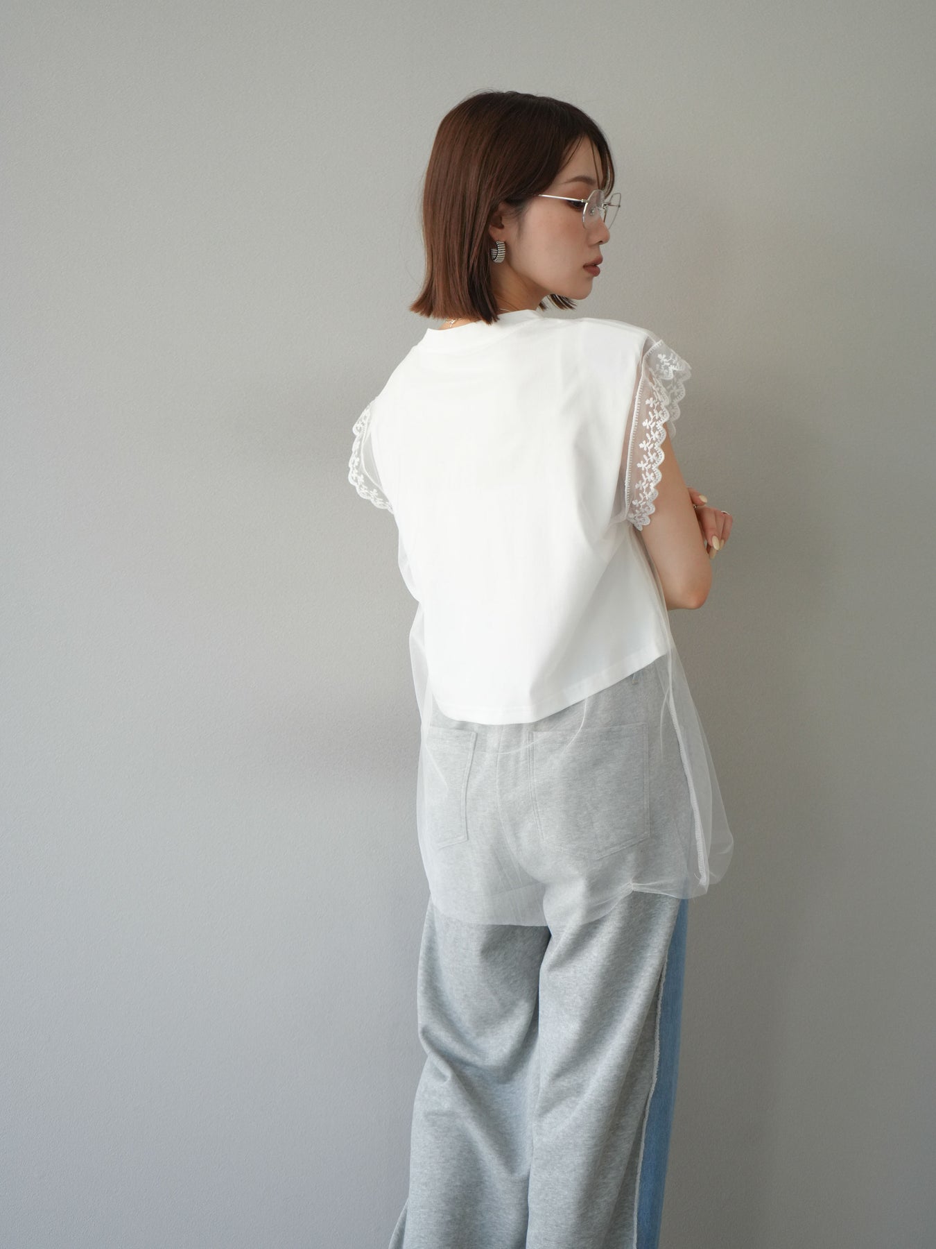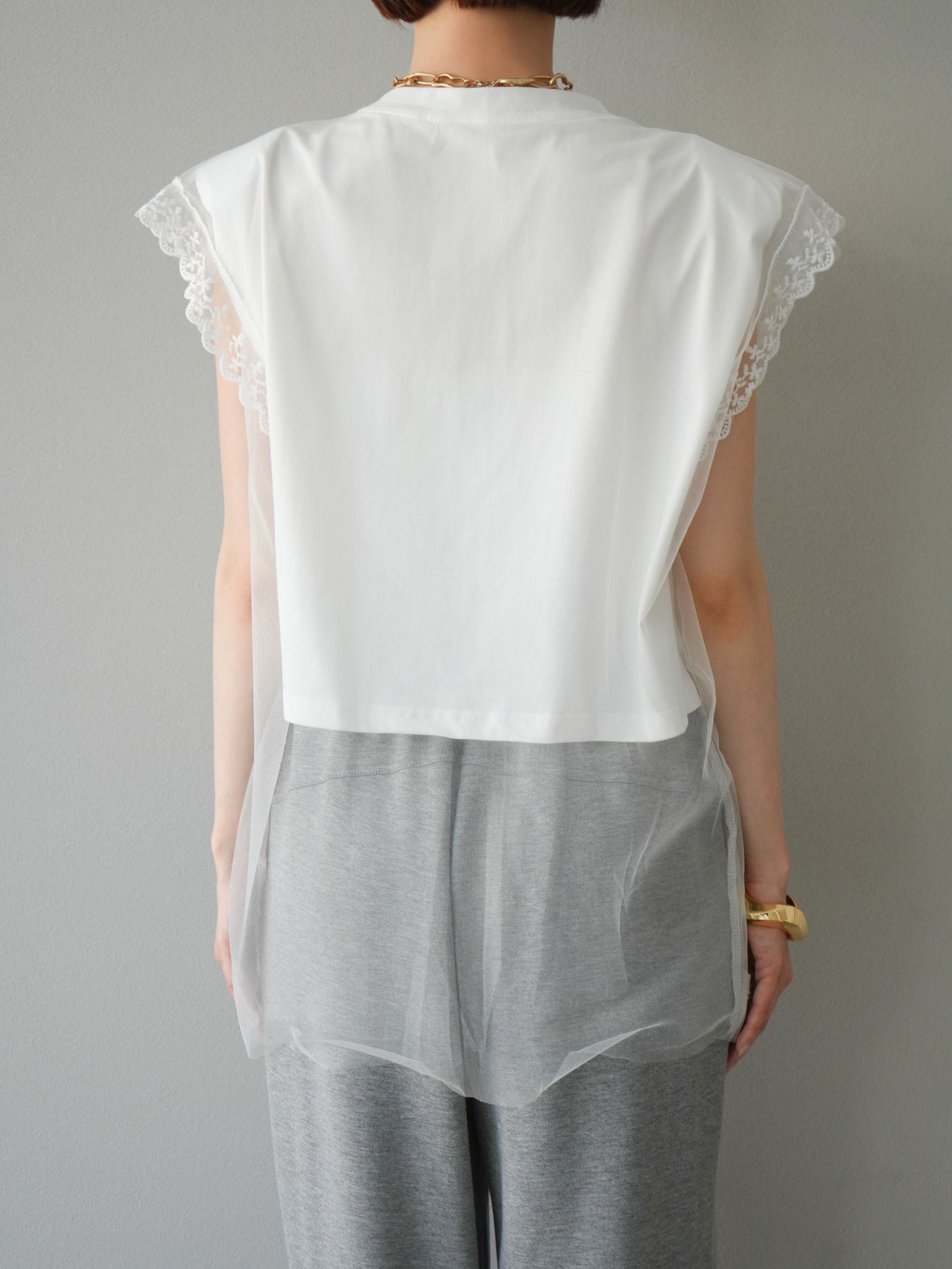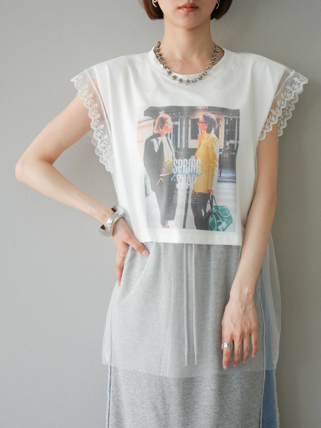 [予約]チュールレイヤードロゴプリントトップス/オフホワイト