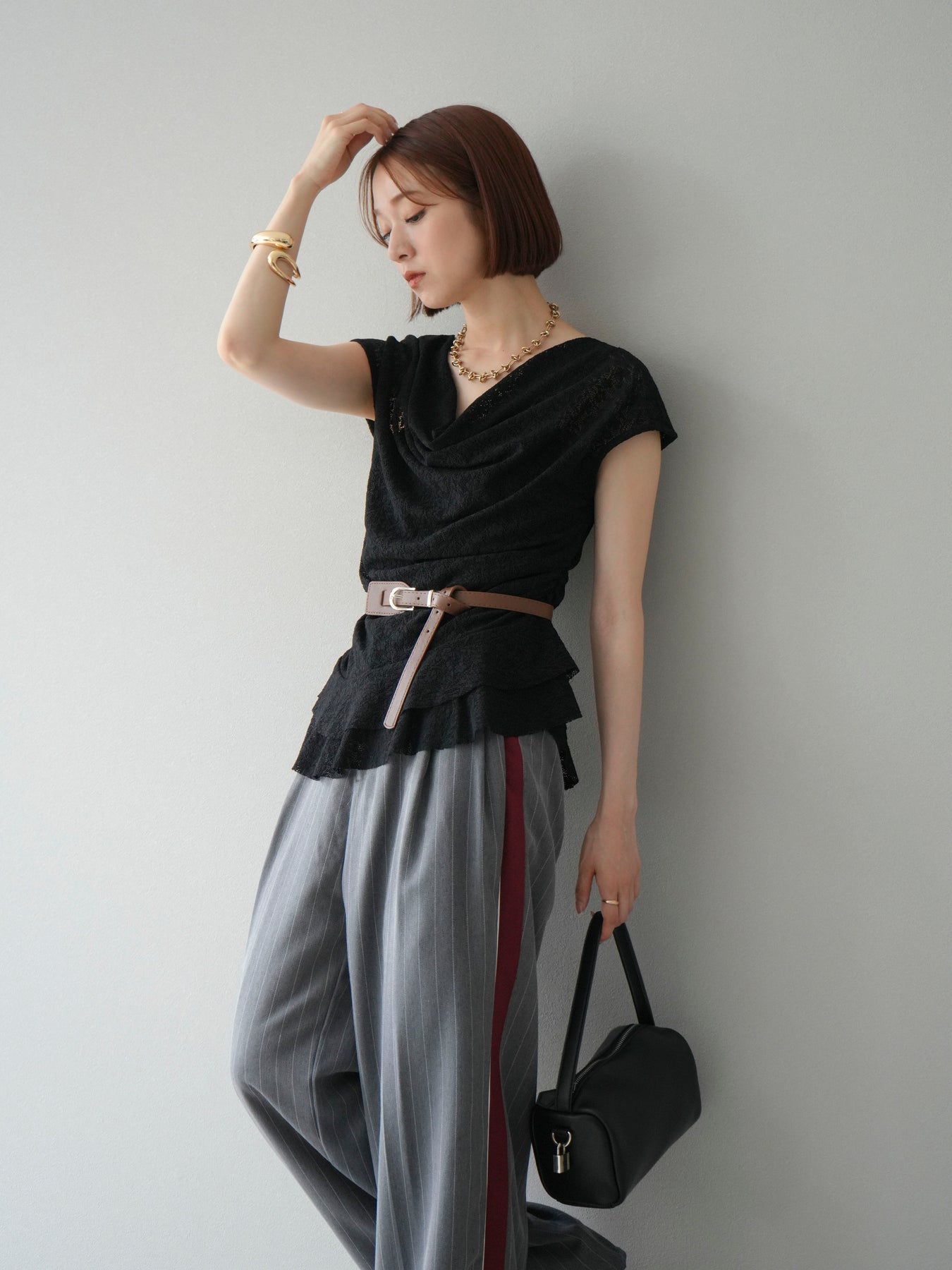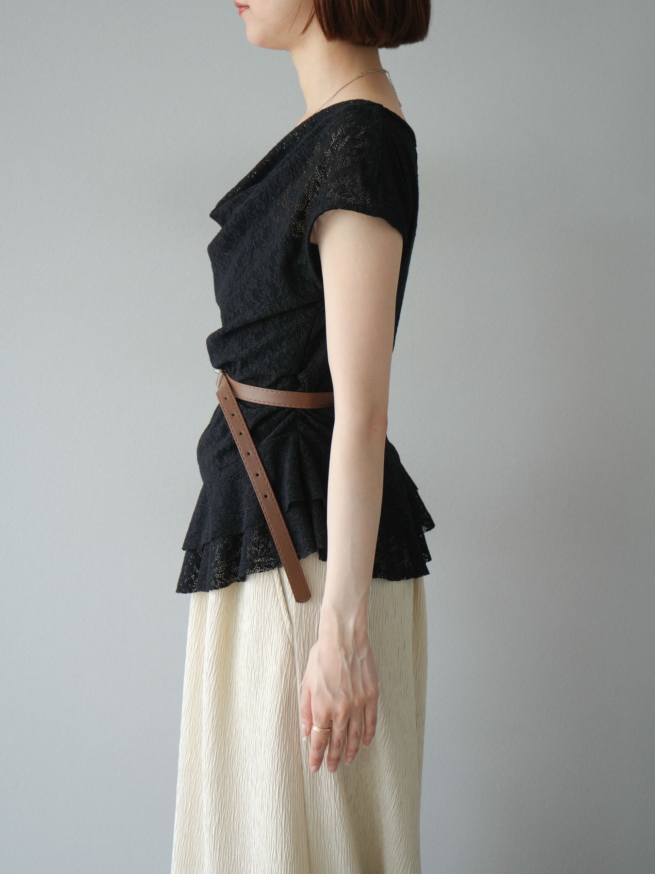 [予約]ベルト付ドレープデザインレーストップス/ブラック