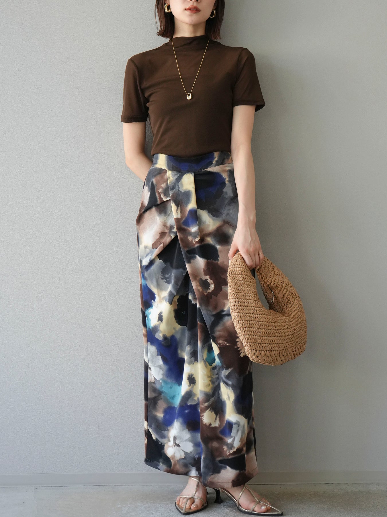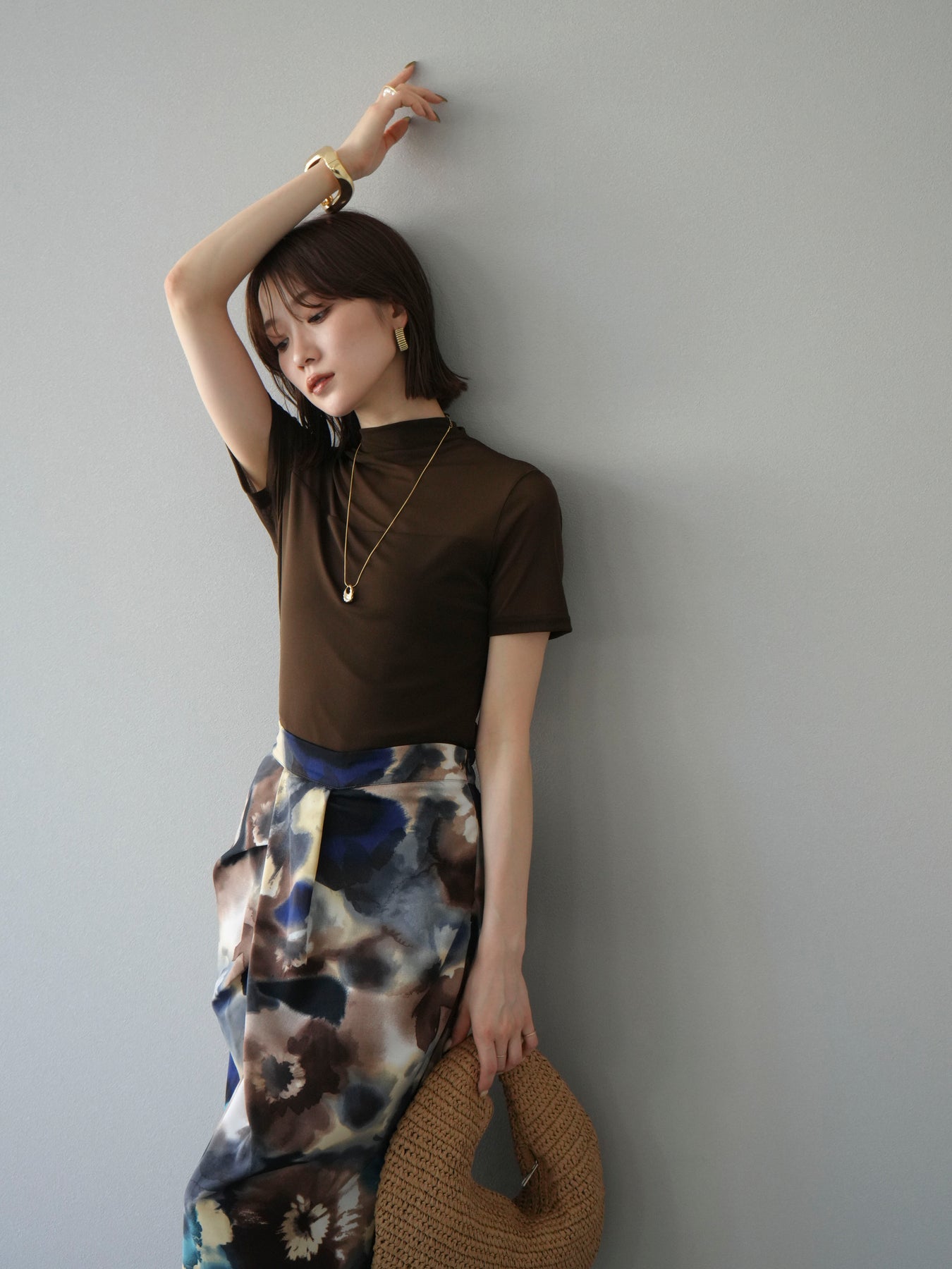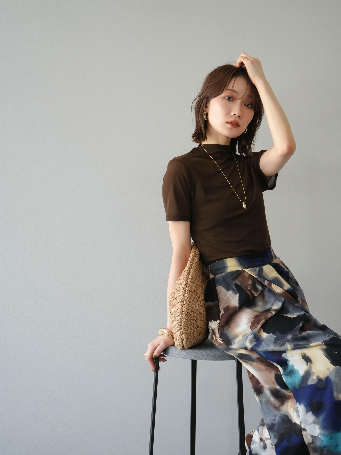 透け感のあるシアー素材と程よくフィットするカットソー生地をドッキングした、洗練感あふれるハーフスリーブトップス。デコルテと袖に施された透け素材が、抜け感を演出しつつ大人の女性らしさを引き立てます。 高めのネックラインが上品さをプラスし、ジャケットやキャミワンピとのレイヤードにも好相性。1枚で着映えるデザインながら、インナーとしても重宝する着回し力の高いアイテムです。 ※ボトムス、キャミソール(インナー)以外の商品は一律でインナーは付属していません。