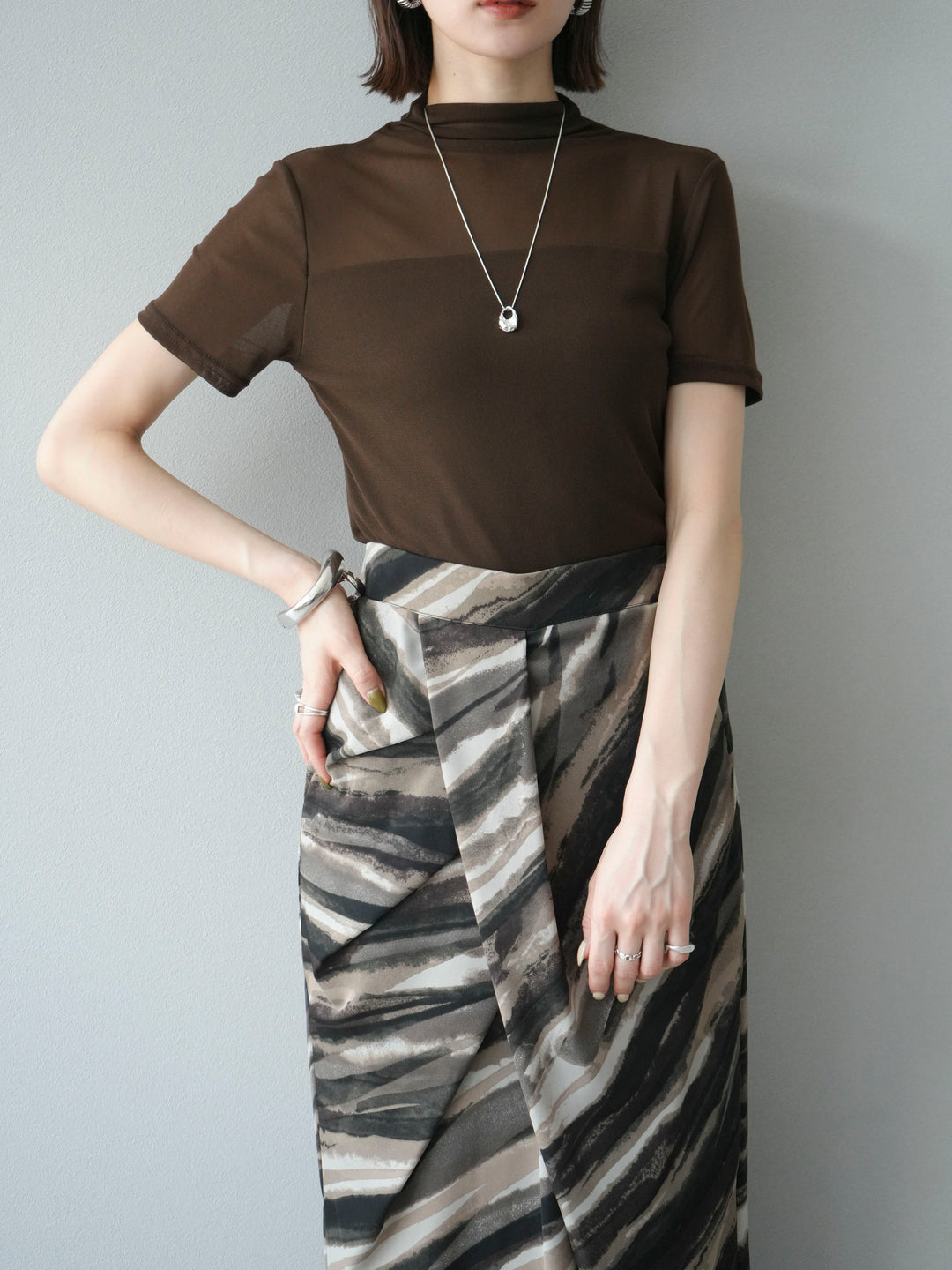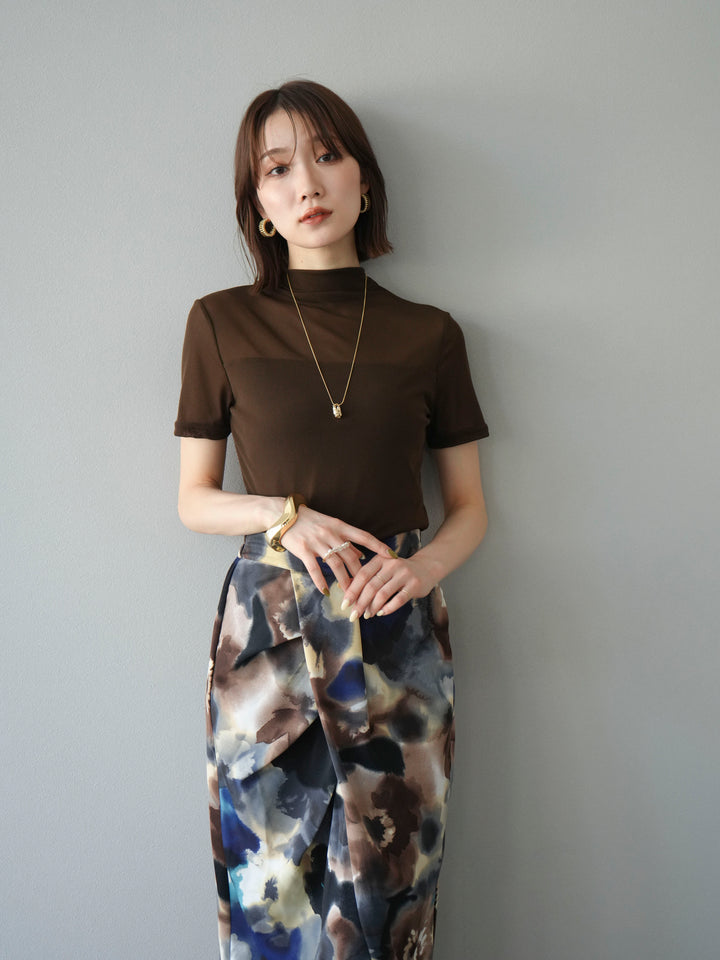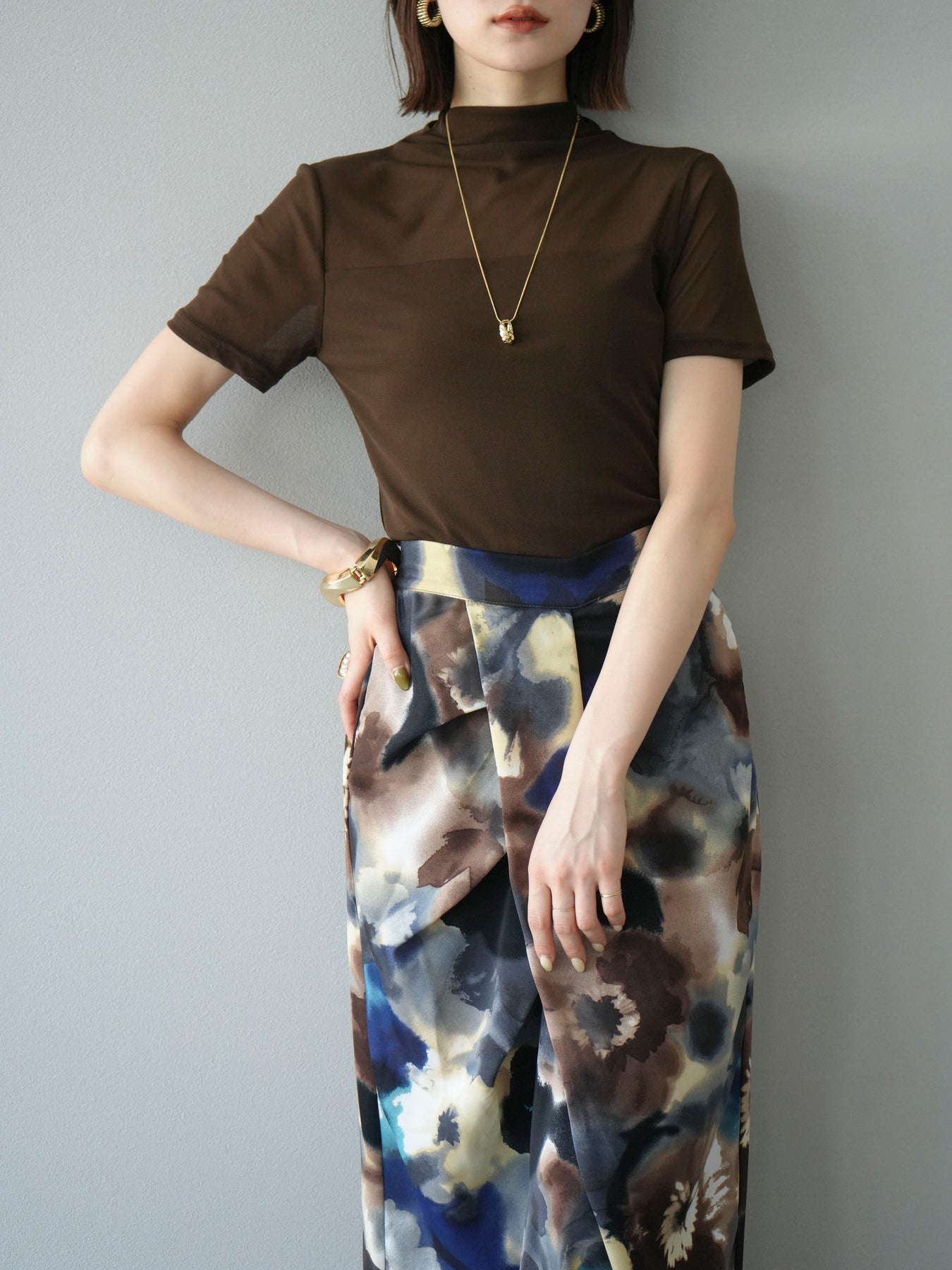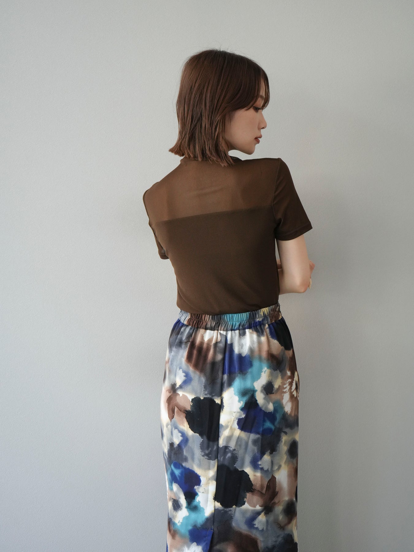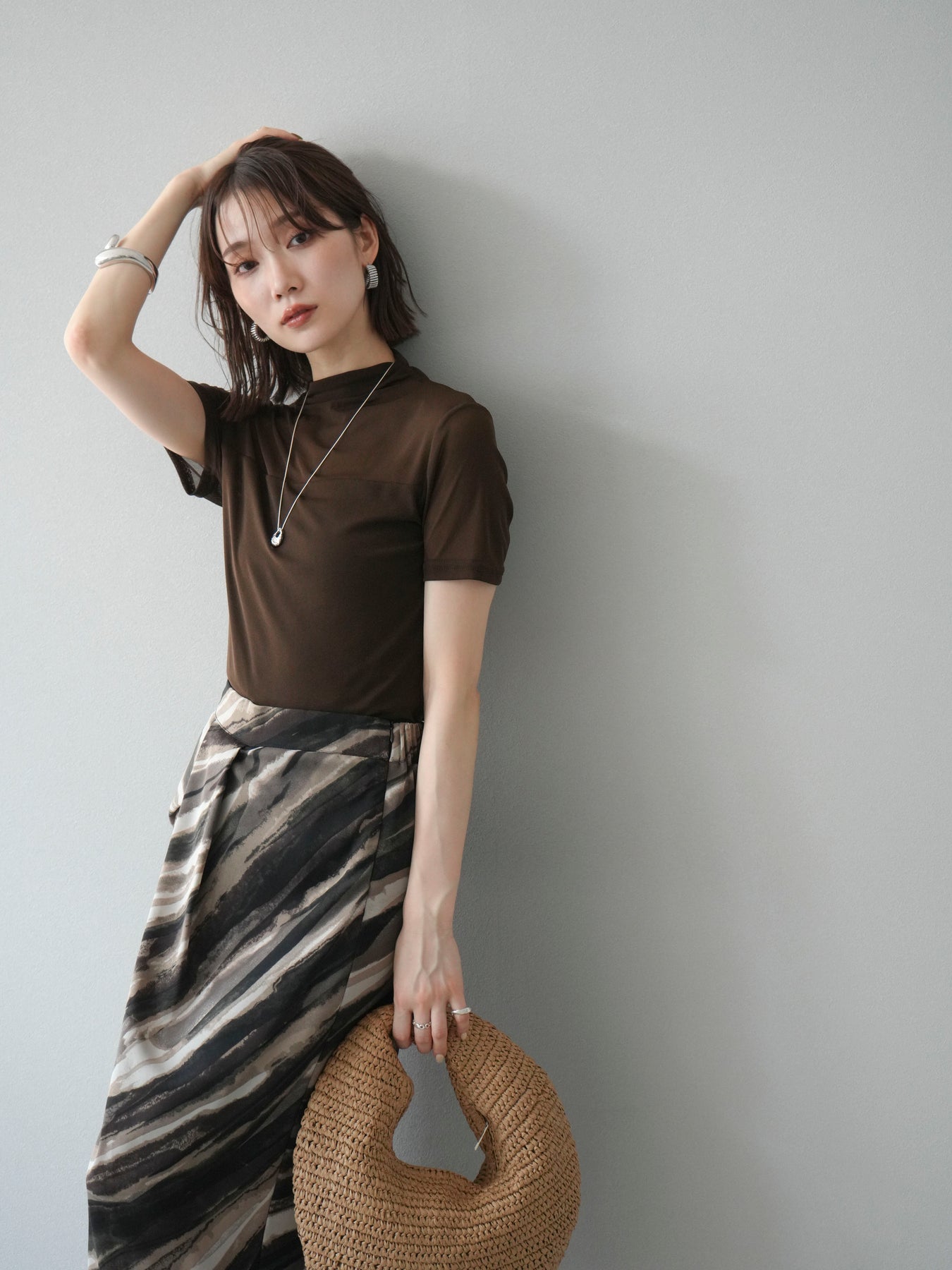 [予約]シアー切替ハーフスリーブトップス/ブラウン