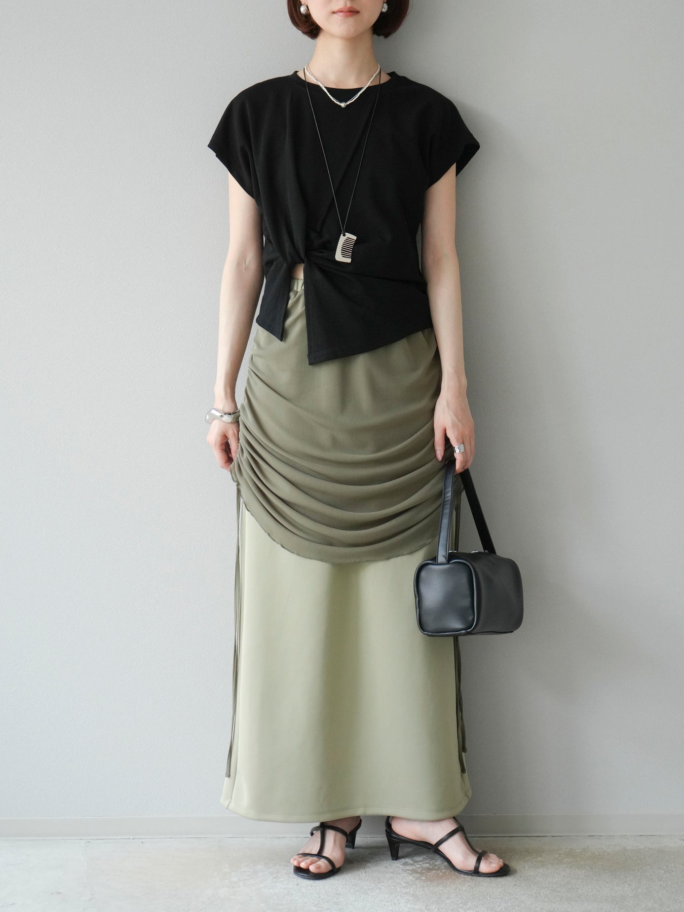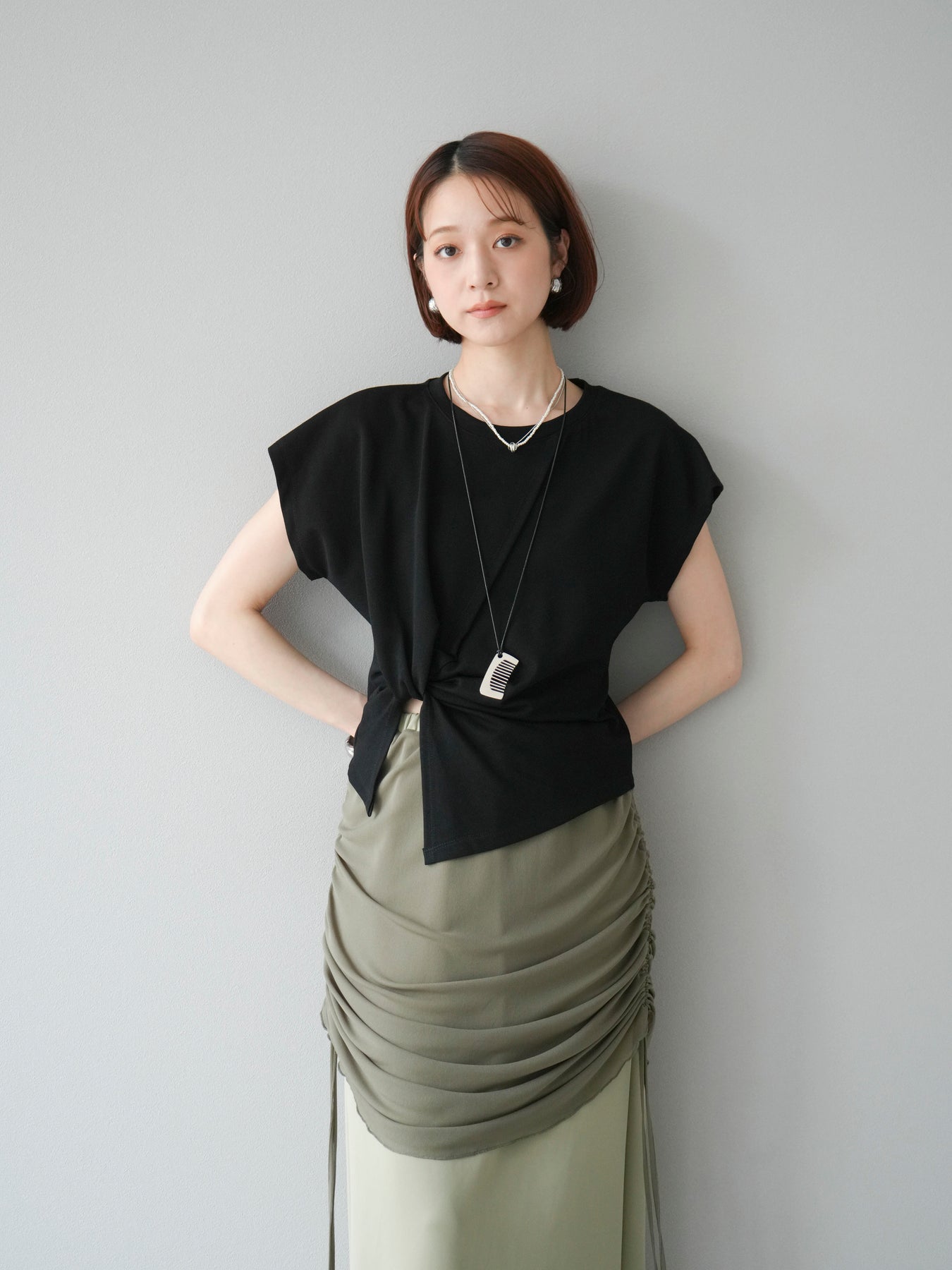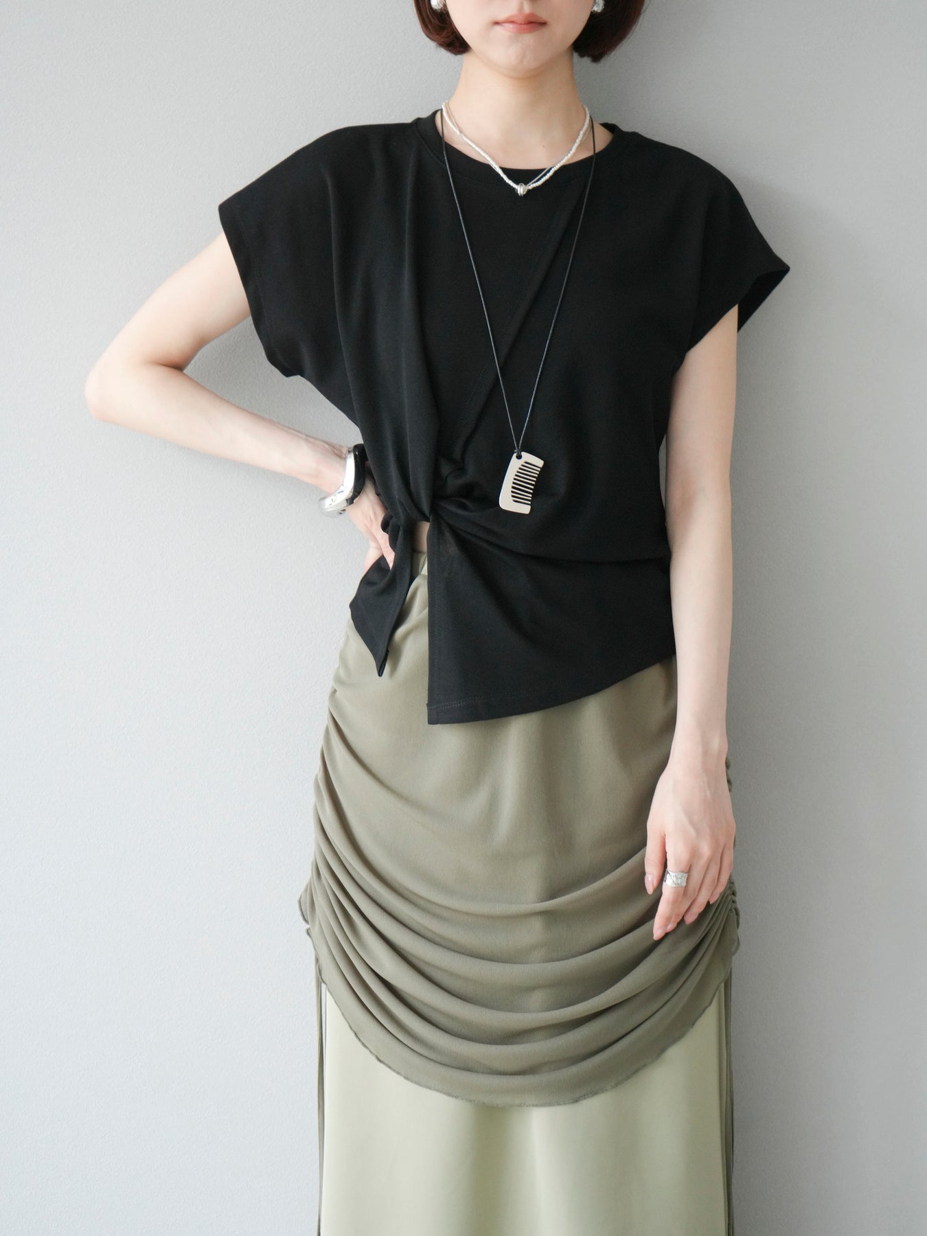 [予約]カシュクールTシャツ&コームネックレスSET /ブラック