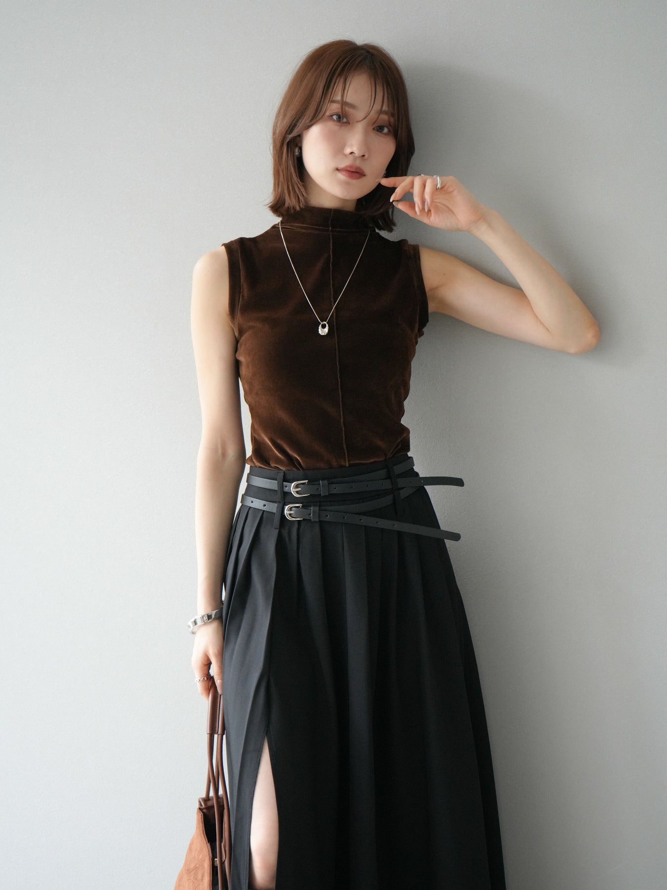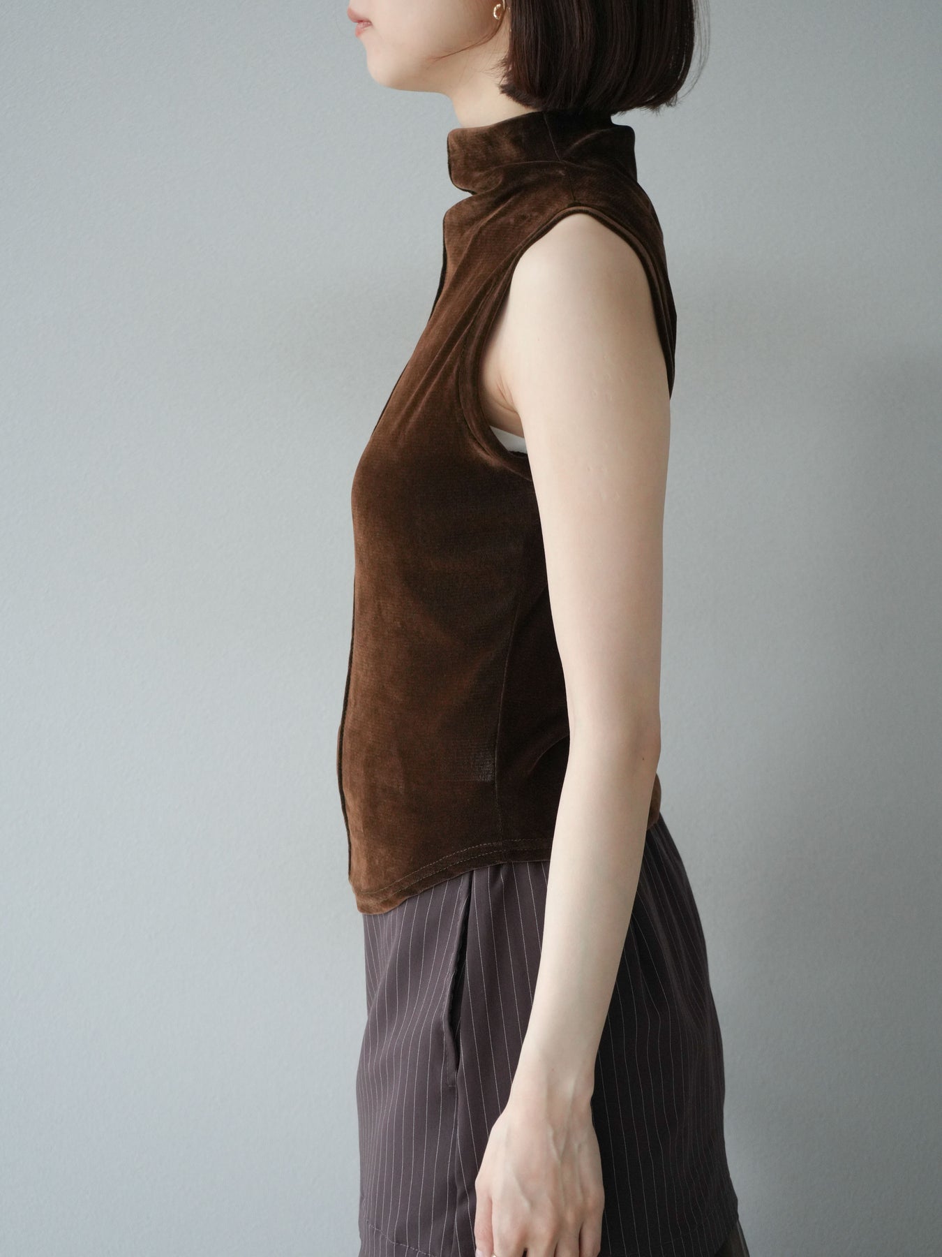 [予約]シアーベロアプチネックノースリーブトップス/ブラウン