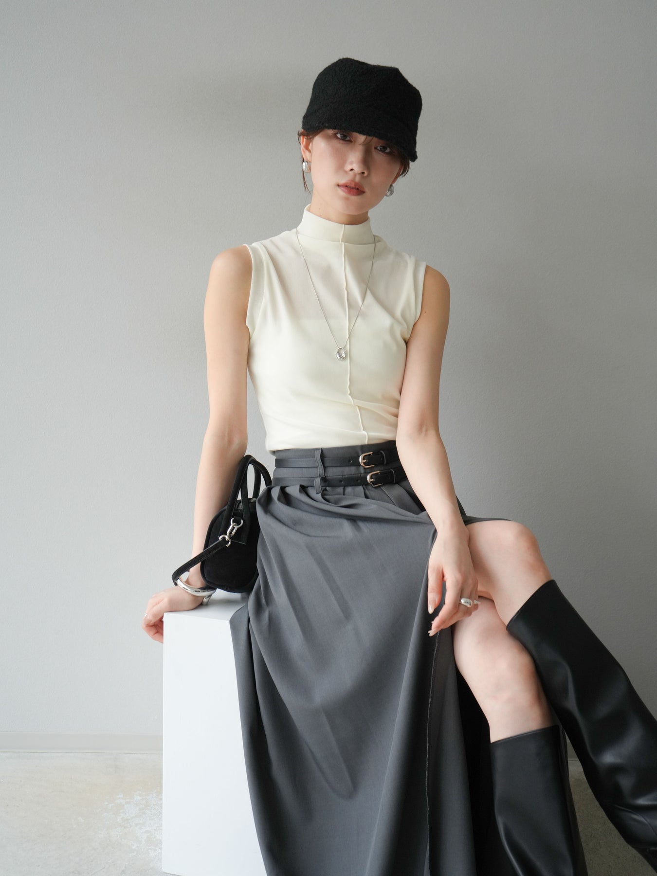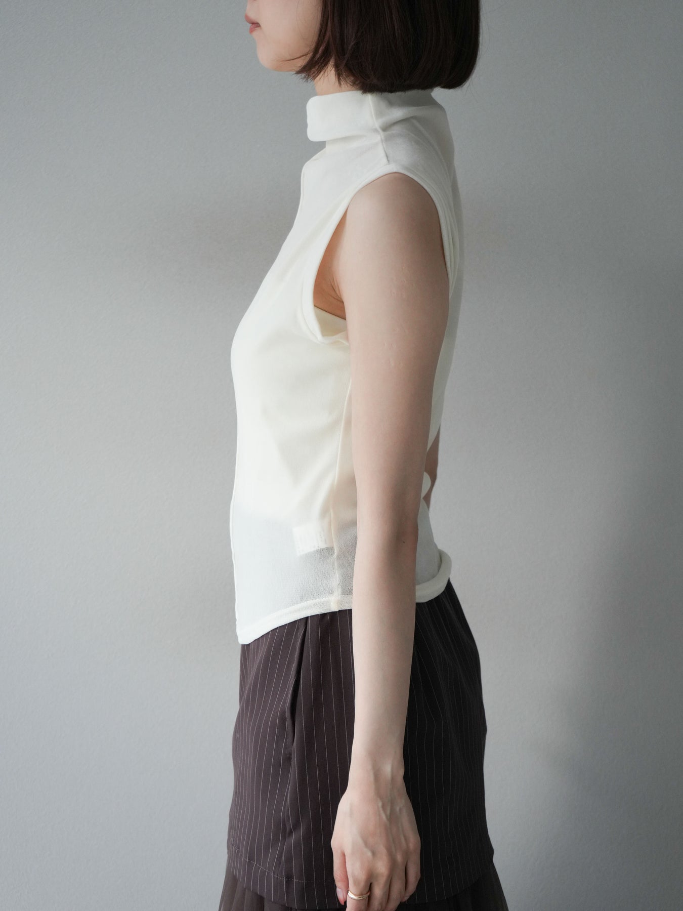 [予約]シアーベロアプチネックノースリーブトップス/アイボリー