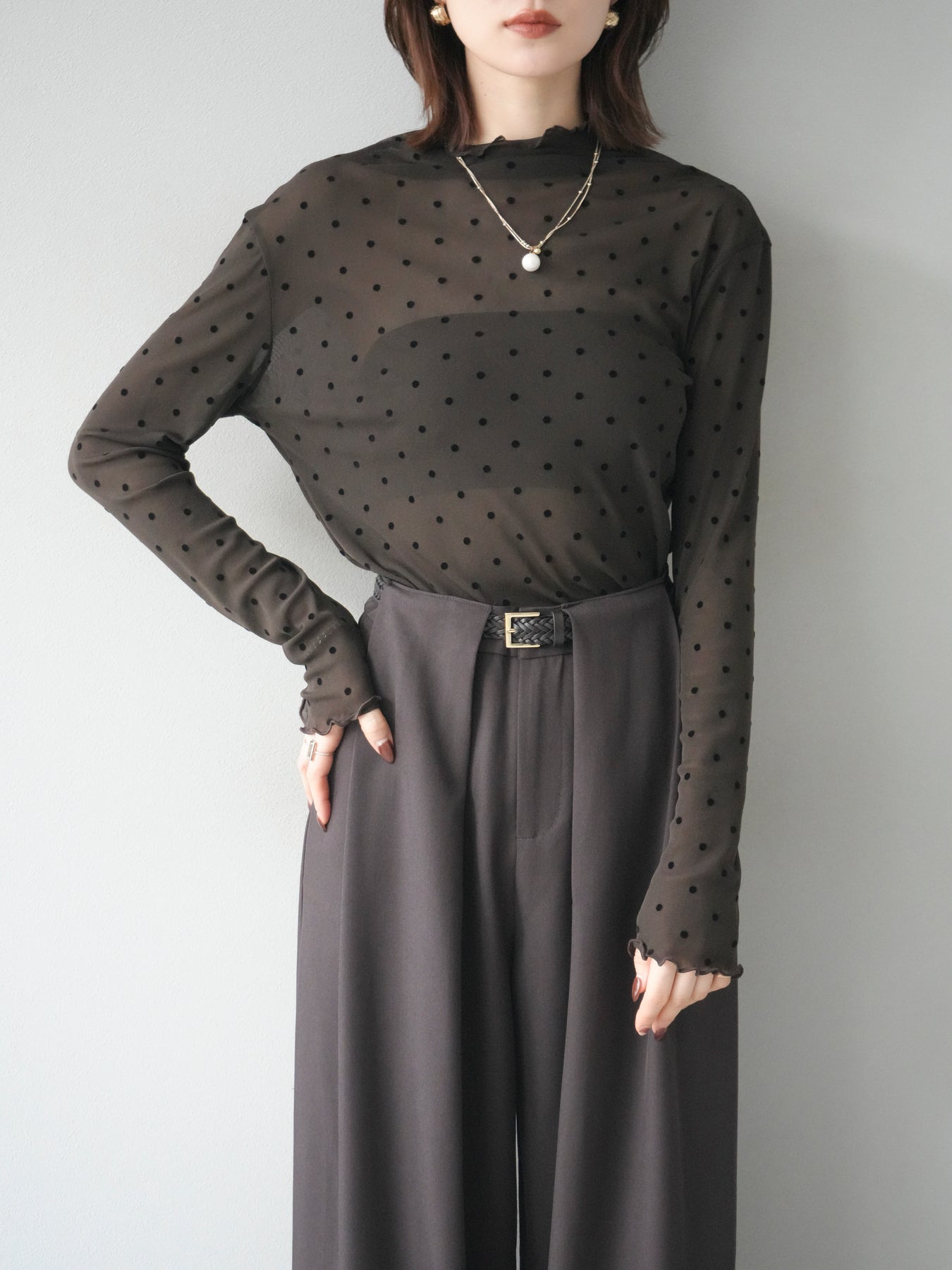 肩幅43cm バスト86cm アームホール38cm 袖丈62cm 袖口18cm 着丈59cm 透け感あり 伸縮性あり