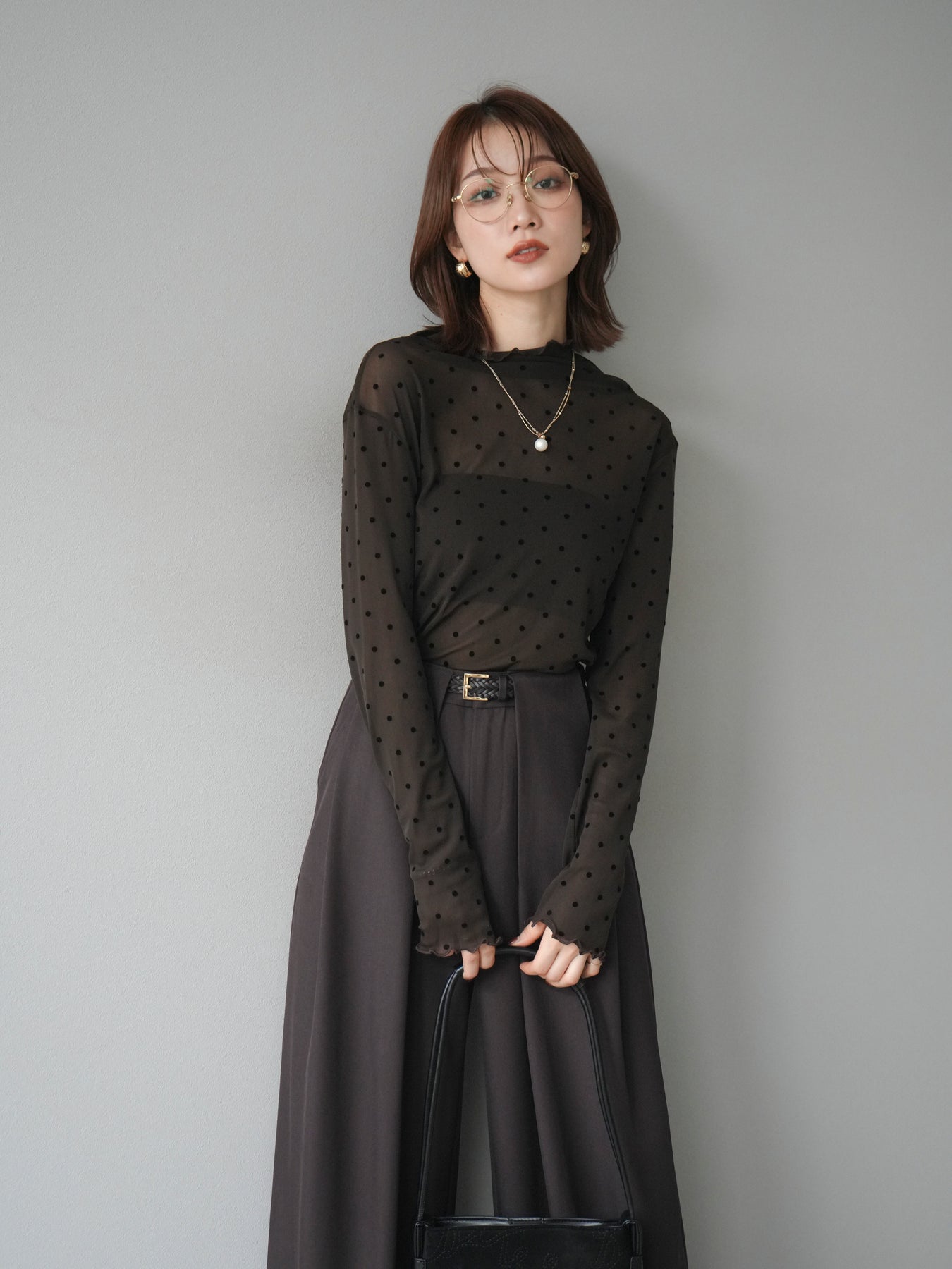 光沢感のあるベルベット素材が上品な印象を与えるマーメイドスカート。ウエスト周りはすっきりと仕上げつつ、裾にかけて広がるシルエットが歩くたびに柔らかな動きを演出します。厚みのある生地感で秋冬のスタイリングに最適。ニットやジャケットともバランスよく合わせられ、デイリーからオケージョンまで幅広く活躍する一着です。