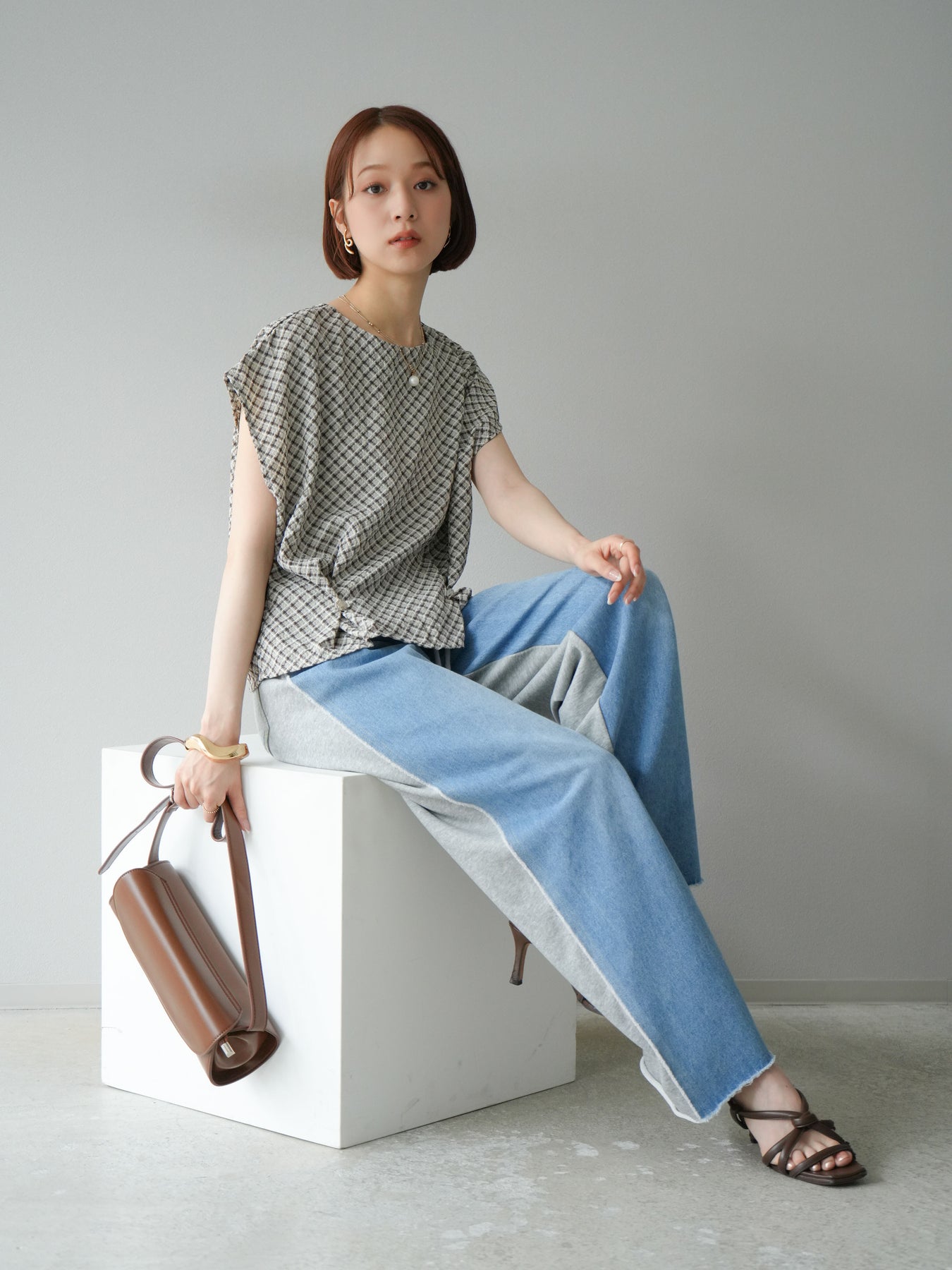 [予約]チェック柄タックデザインフレンチスリーブトップスに関連する商品を探す↓