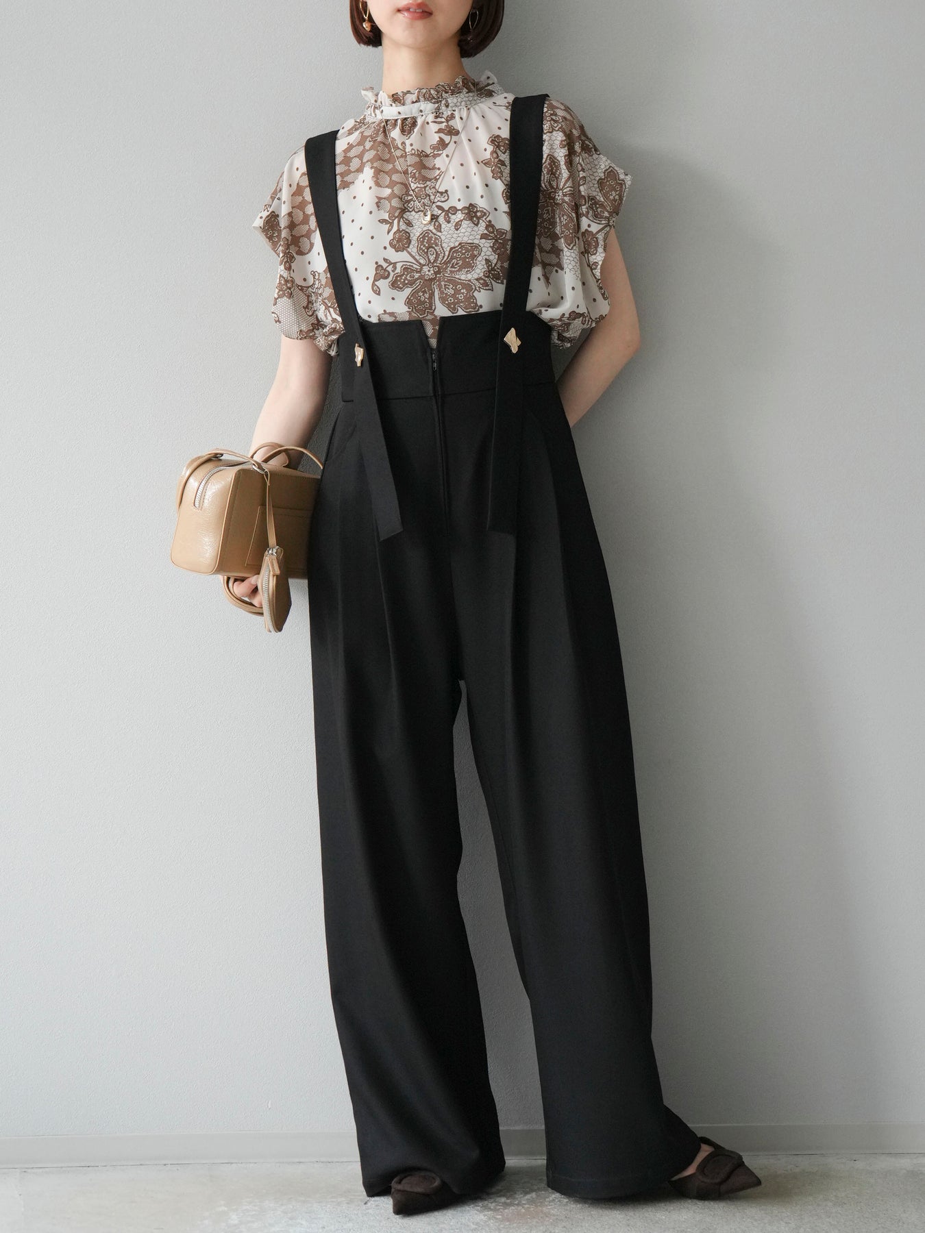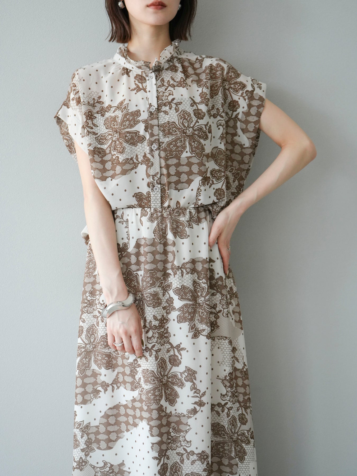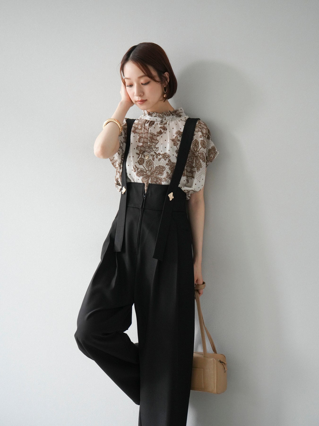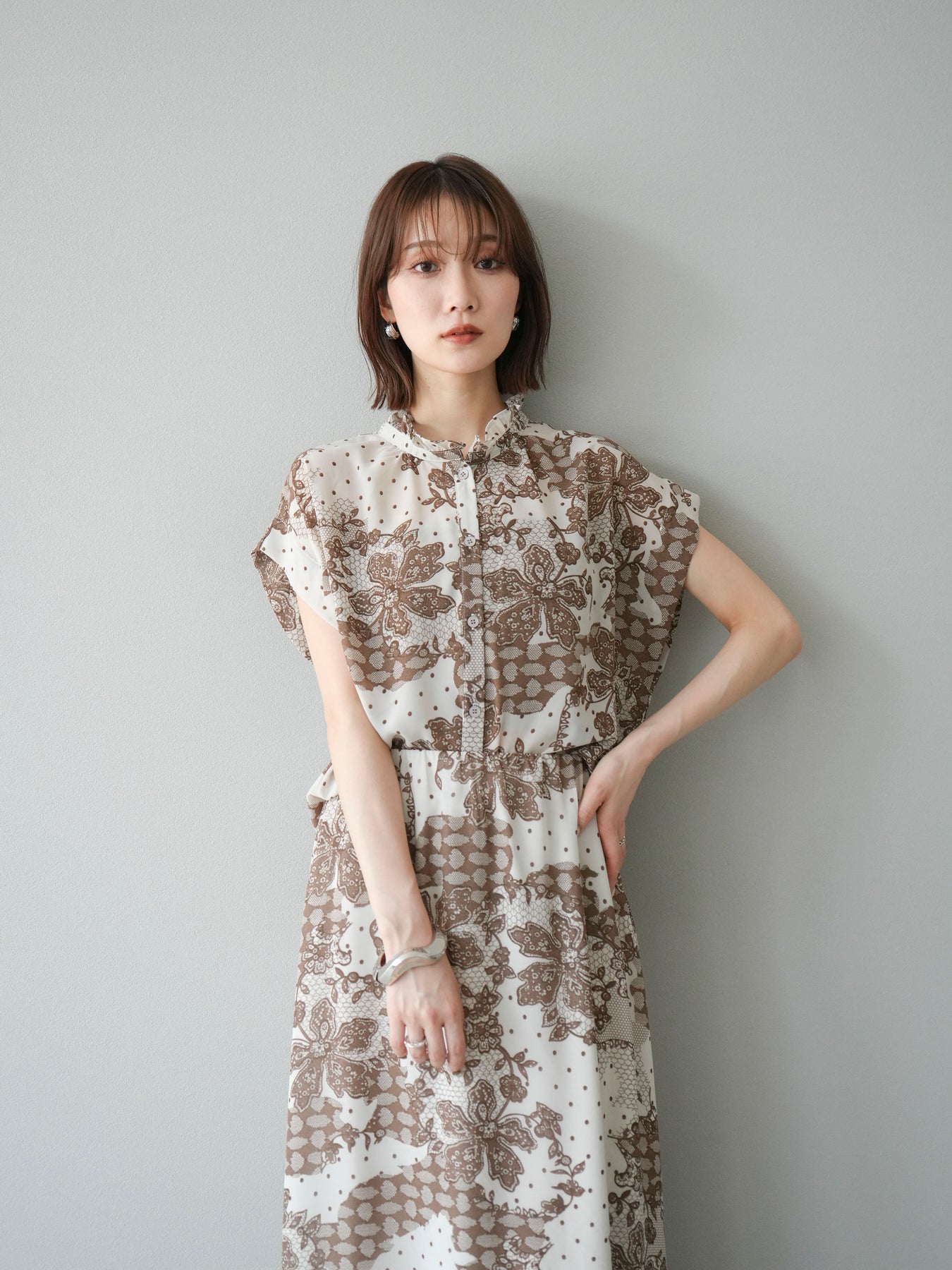 [予約]フラワーパターンフレンチスリーブブラウス/ベージュ