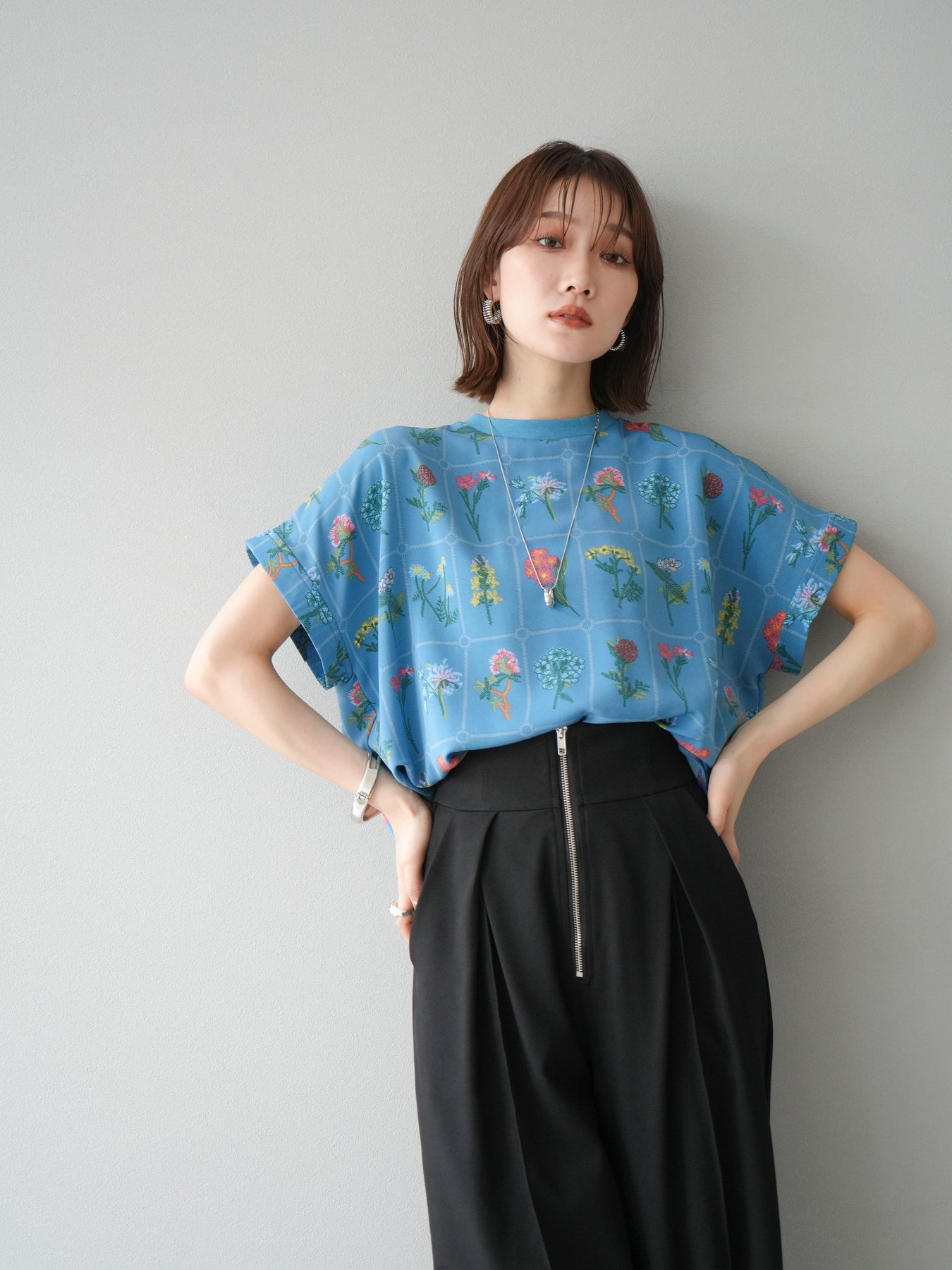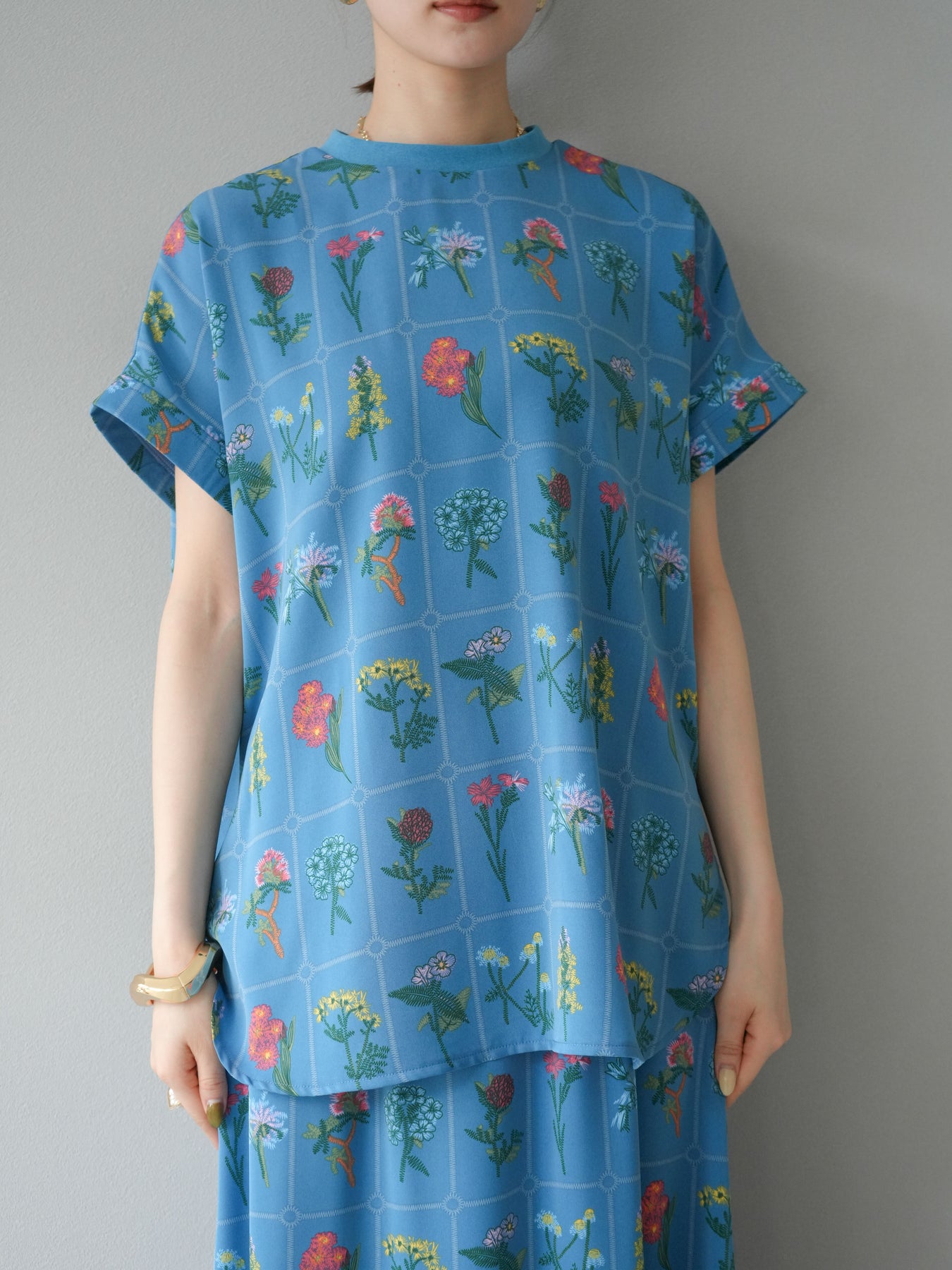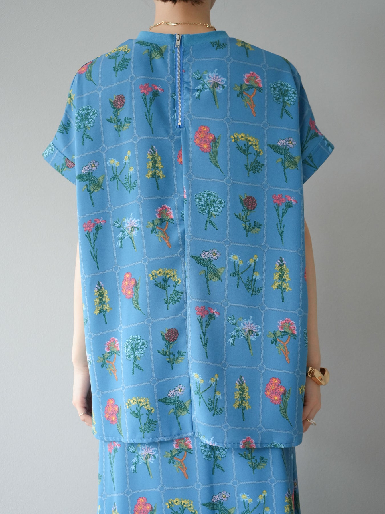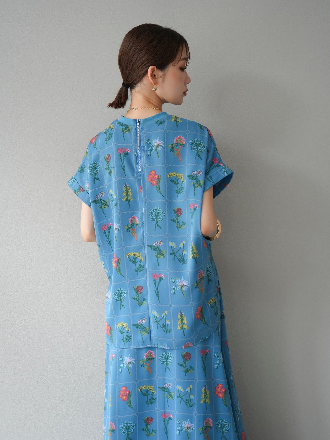[予約]パッチワークフラワープリントプルオーバー/ブルー