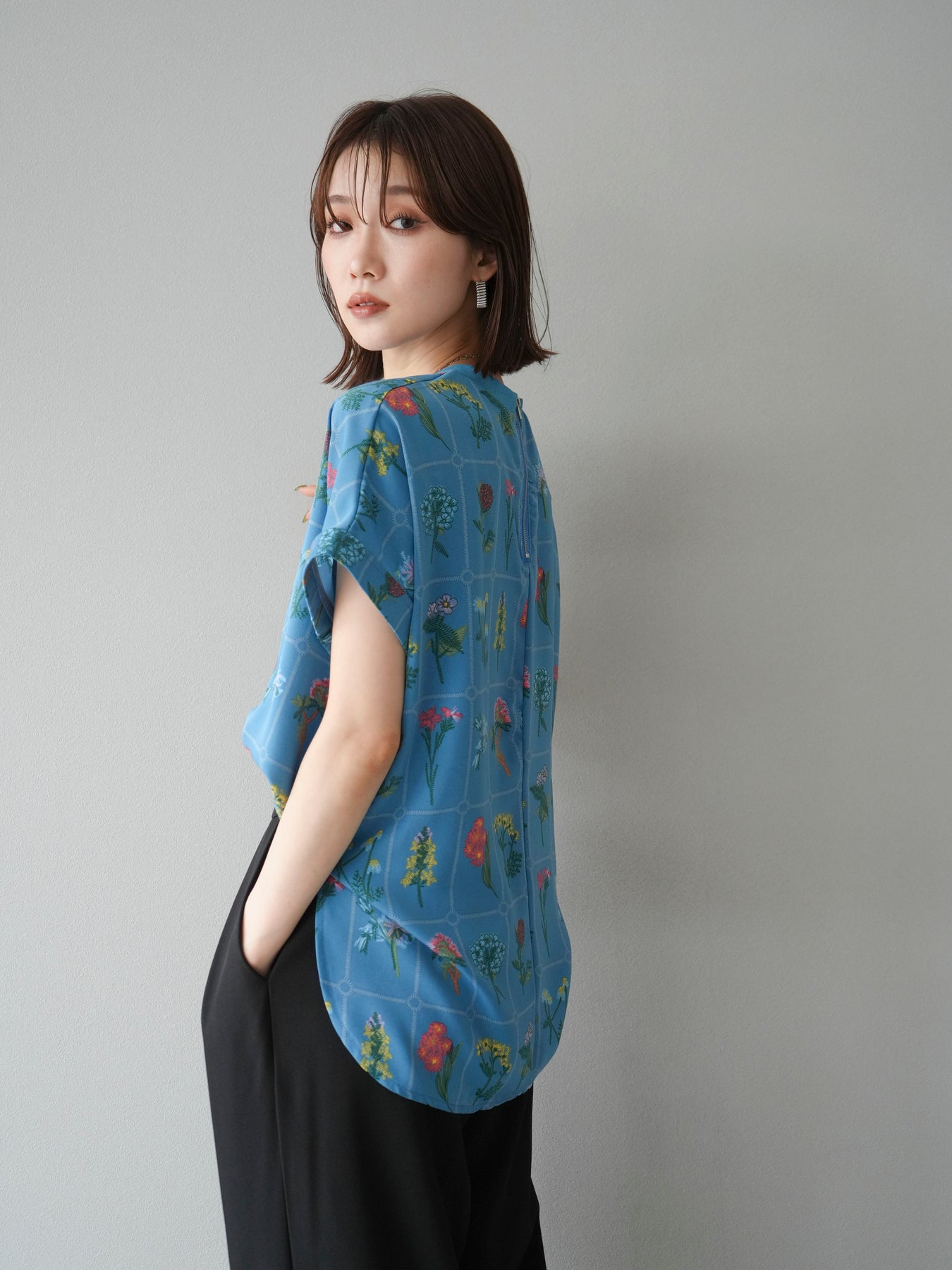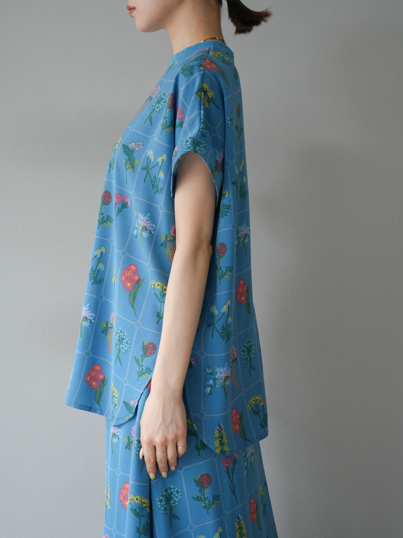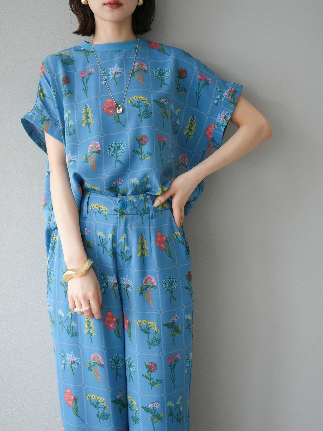 [予約]パッチワークフラワープリントプルオーバー/ブルー