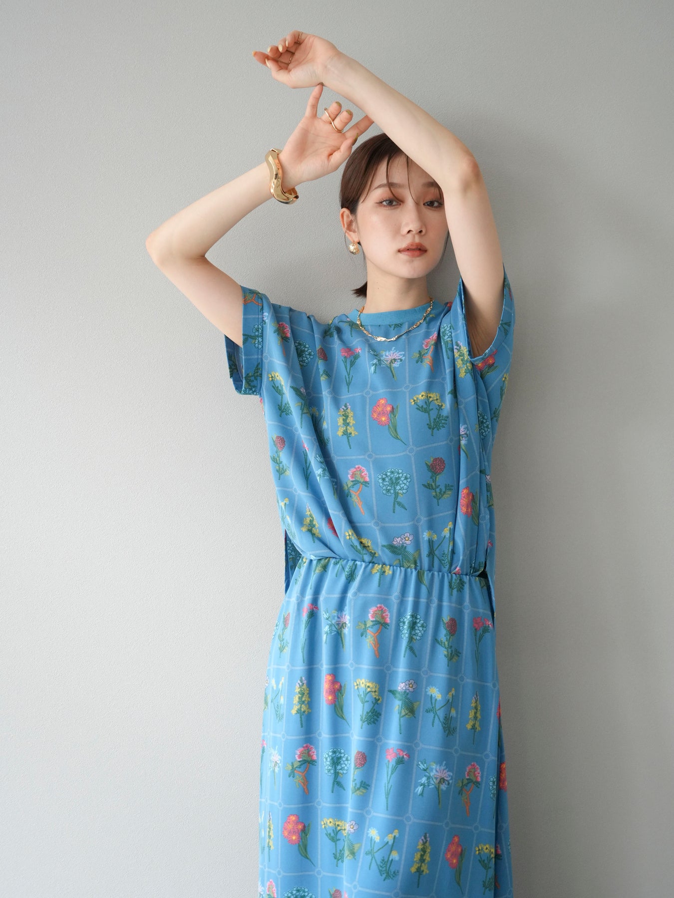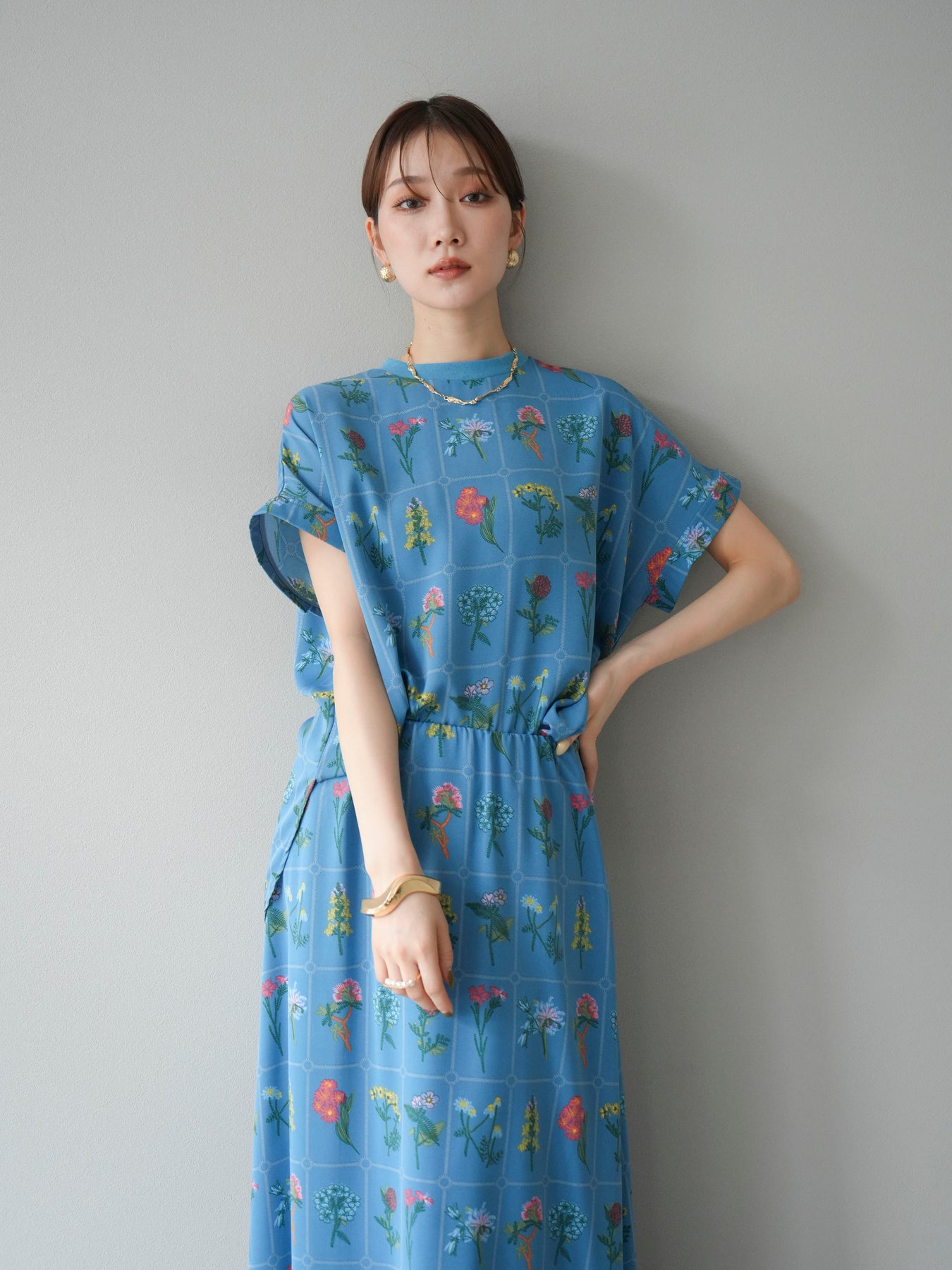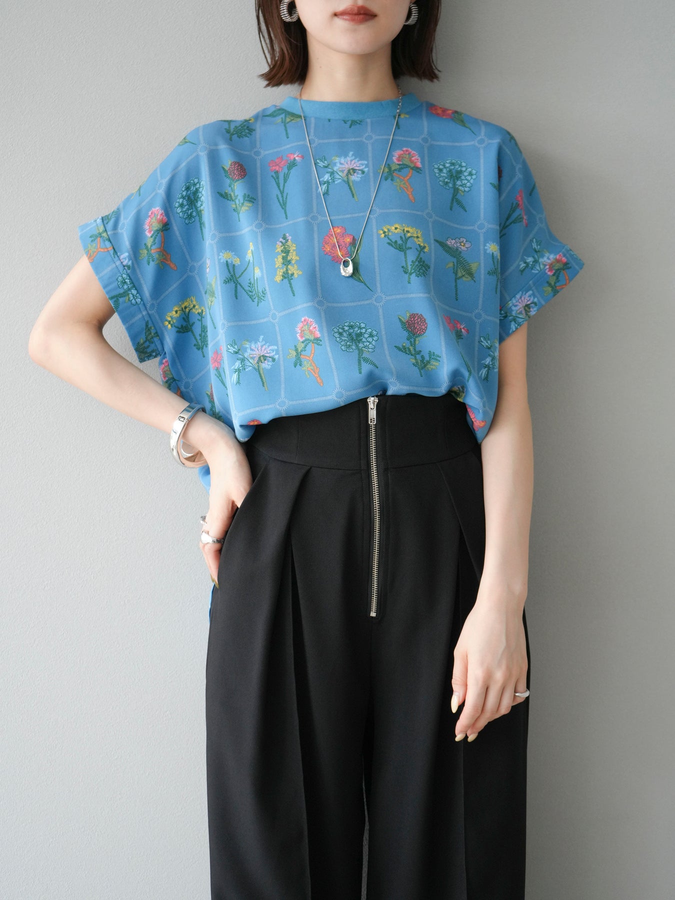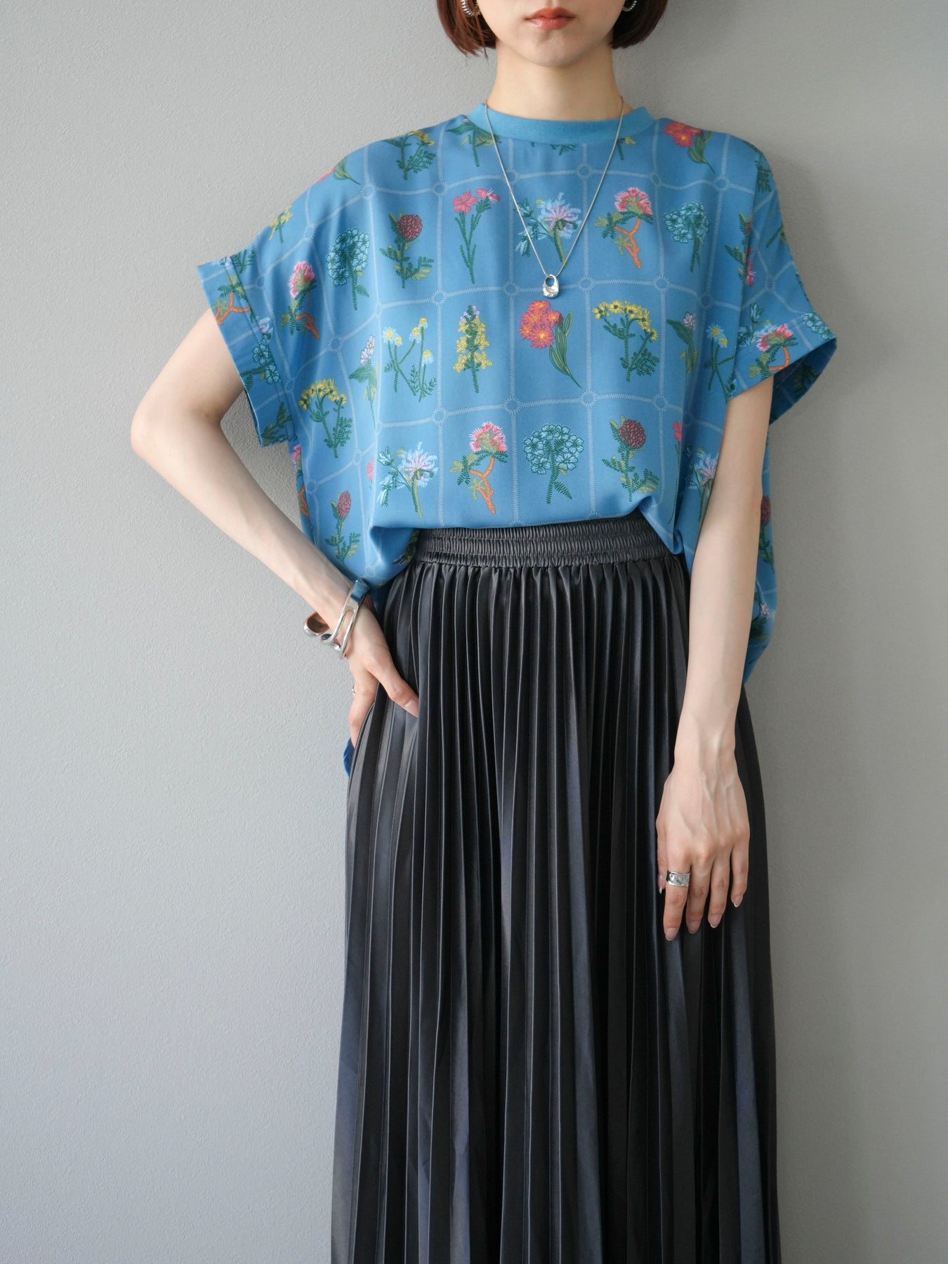 [予約]パッチワークフラワープリントプルオーバー/ブルー