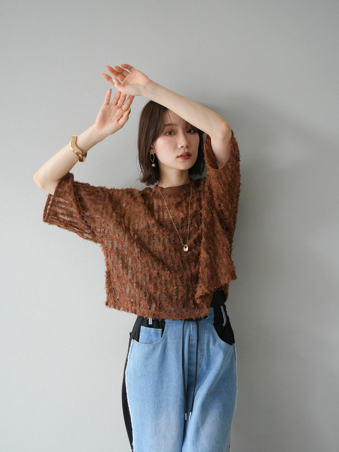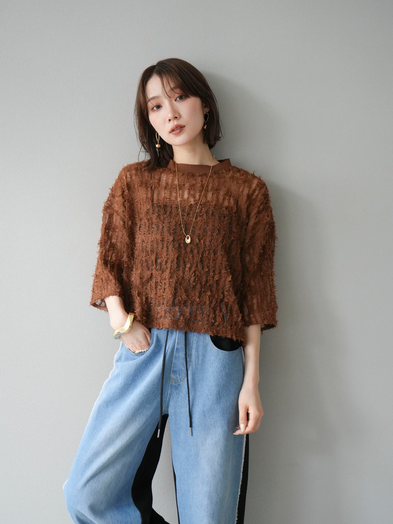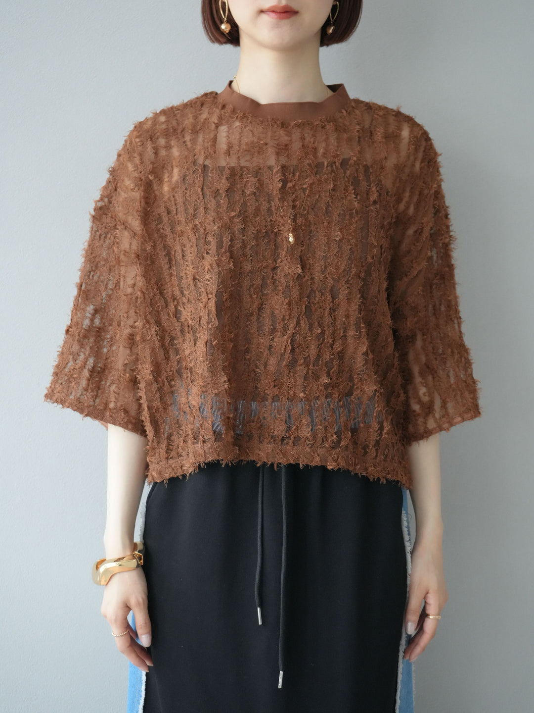 [予約]シアーフリンジショートプルオーバー/ブラウン