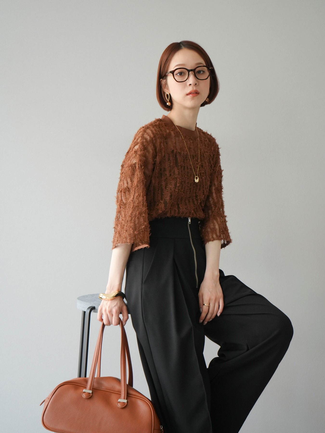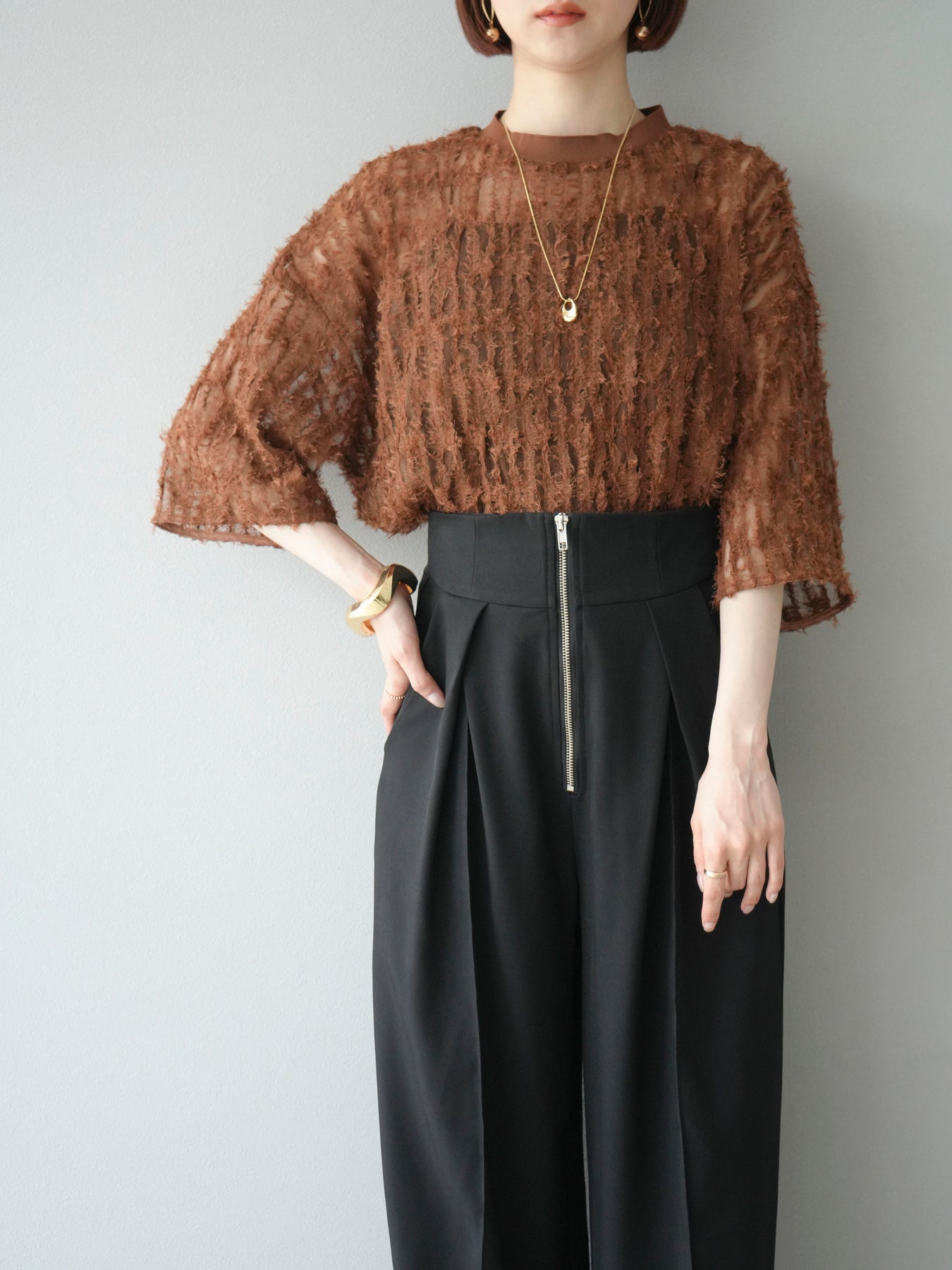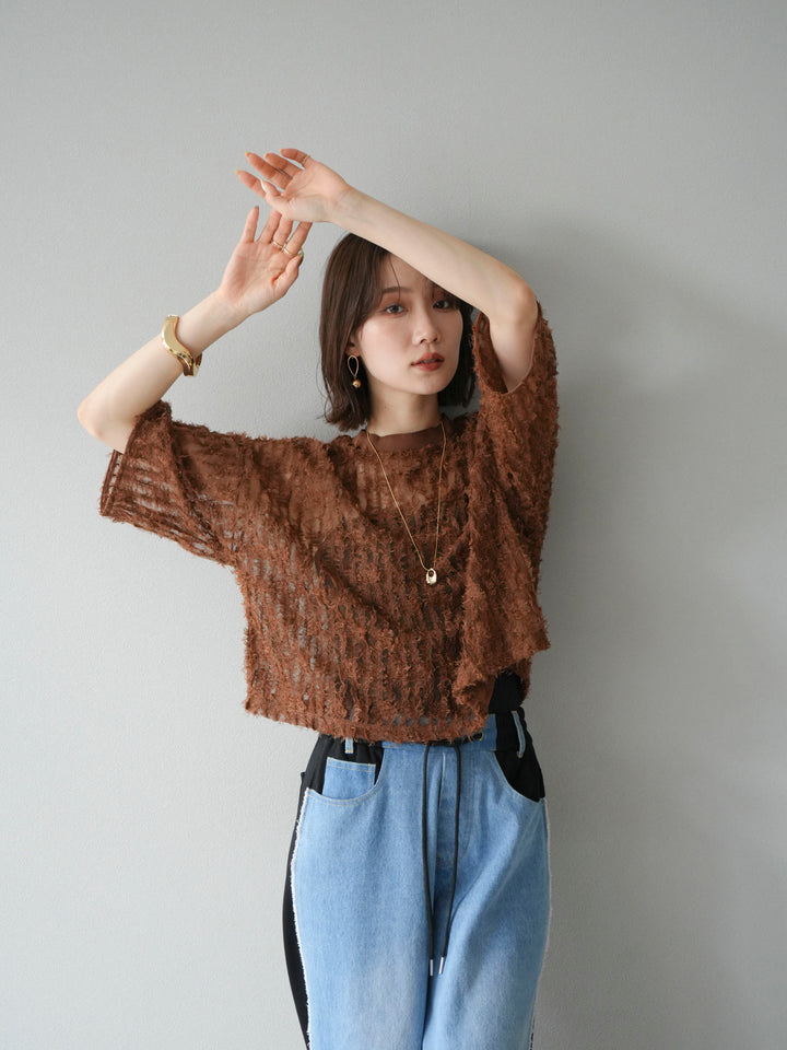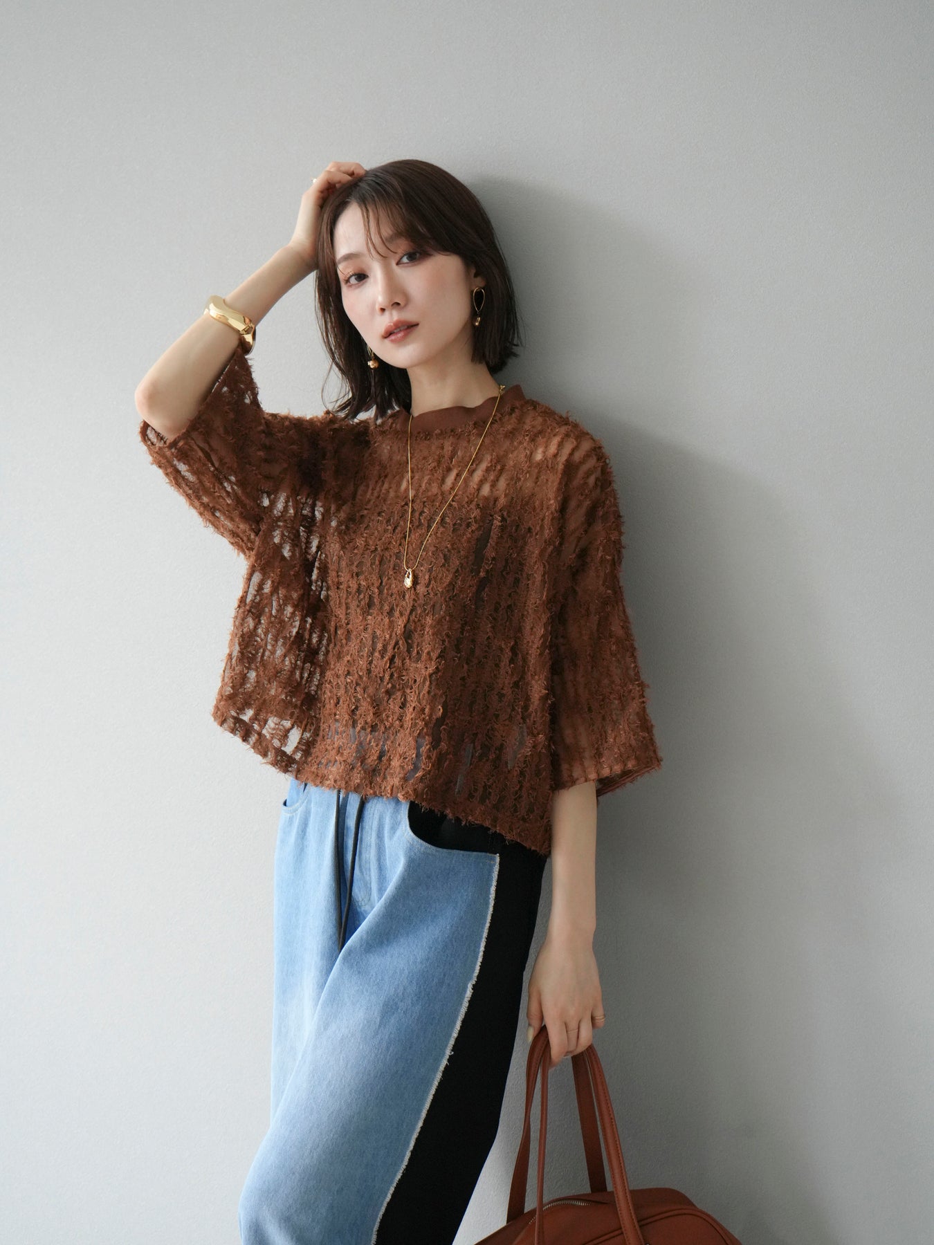 [予約]シアーフリンジショートプルオーバー/ブラウン