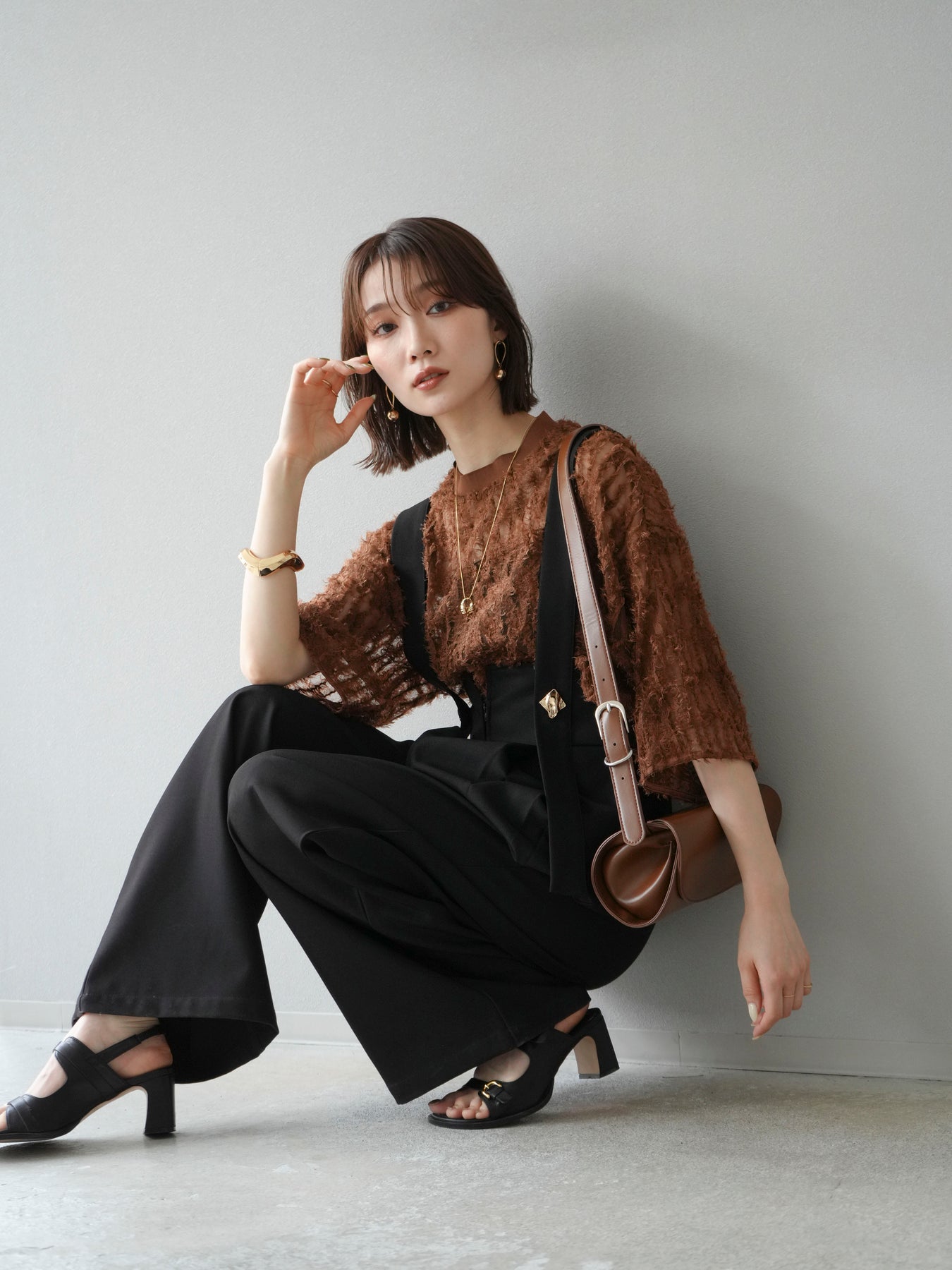 表情豊かなフリンジデザインが目を惹く、シアー素材のショートプルオーバー。 繊細な透け感とランダムなフリンジが、着こなしに個性と軽やかさをプラスしてくれます。 ショート丈ながら程よいゆとりのあるシルエットで、ボトムスを選ばず幅広くスタイリング可能。 インナー次第で印象が変わるため、ロングシーズン活躍するアイテムです。 ※ボトムス、キャミソール(インナー)以外の商品は一律でインナーは付属していません。