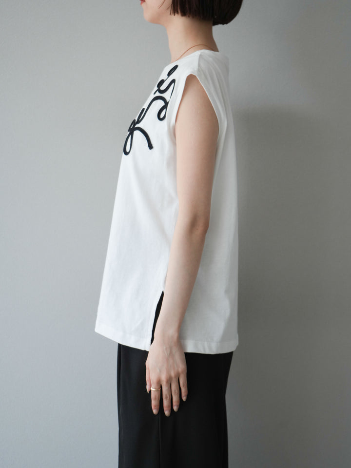 [予約]コード刺繍フレンチスリーブTシャツ/ホワイト