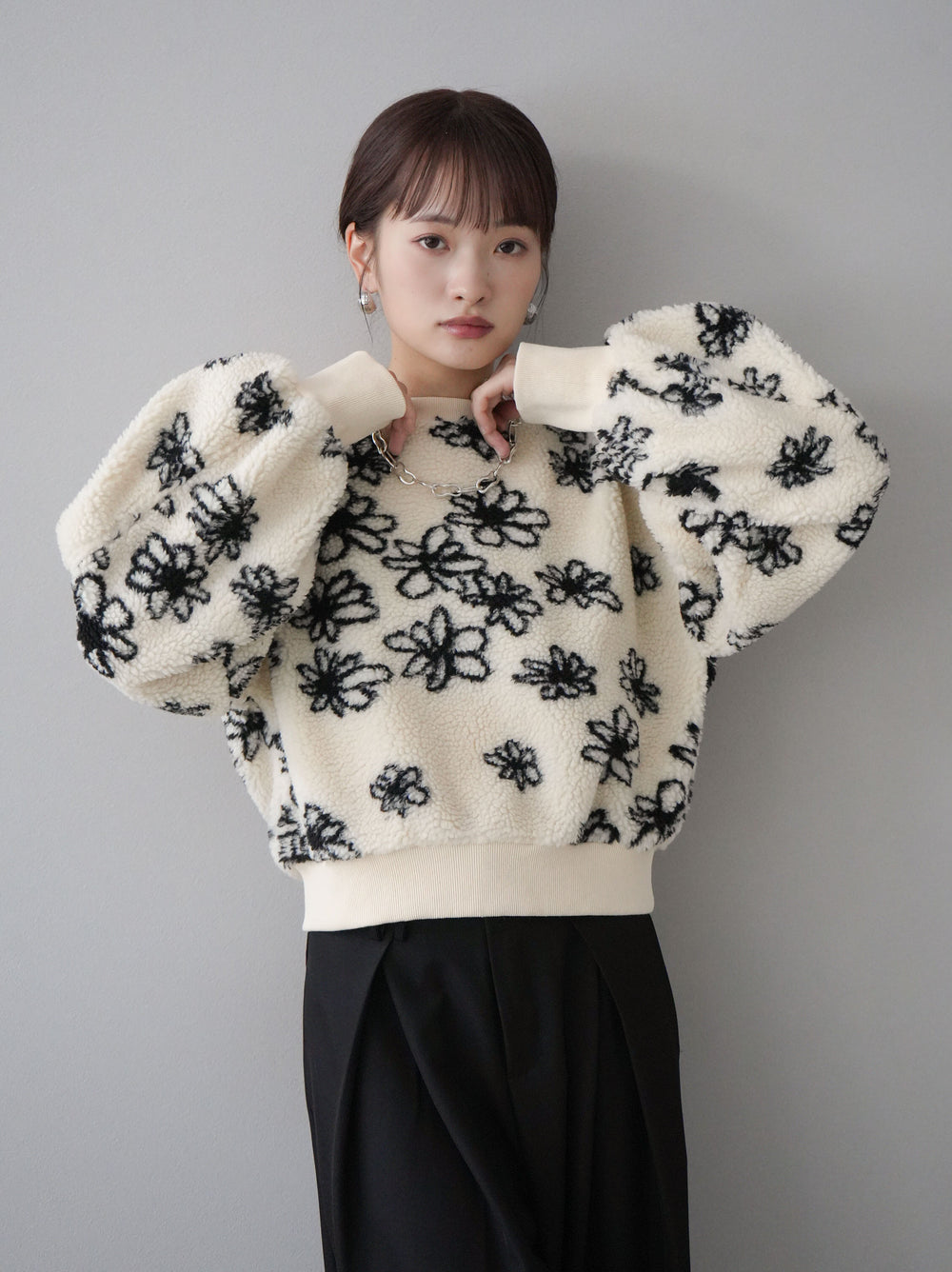 [予約]フラワーボアショートプルオーバー/アイボリー