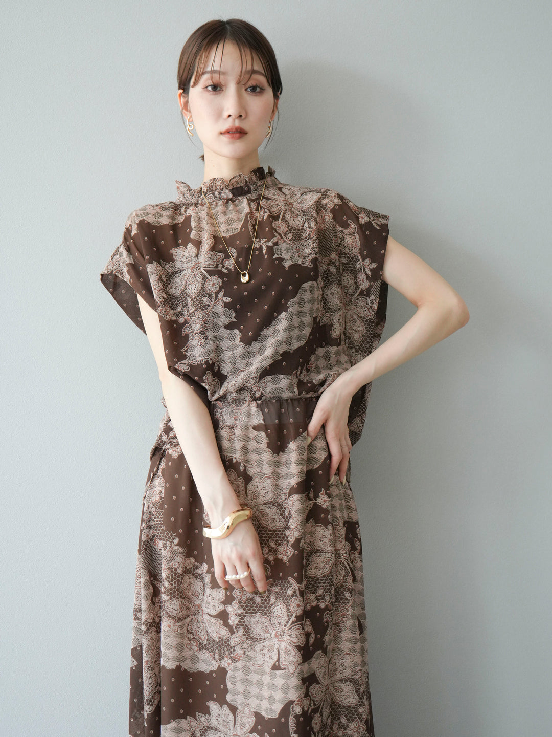 [予約]フラワージャガードカットカーディガン/テラコッタ