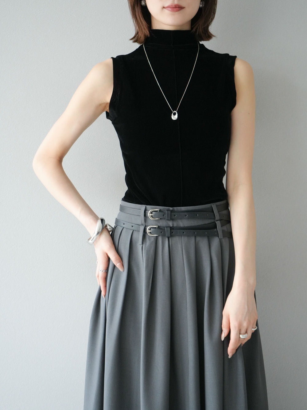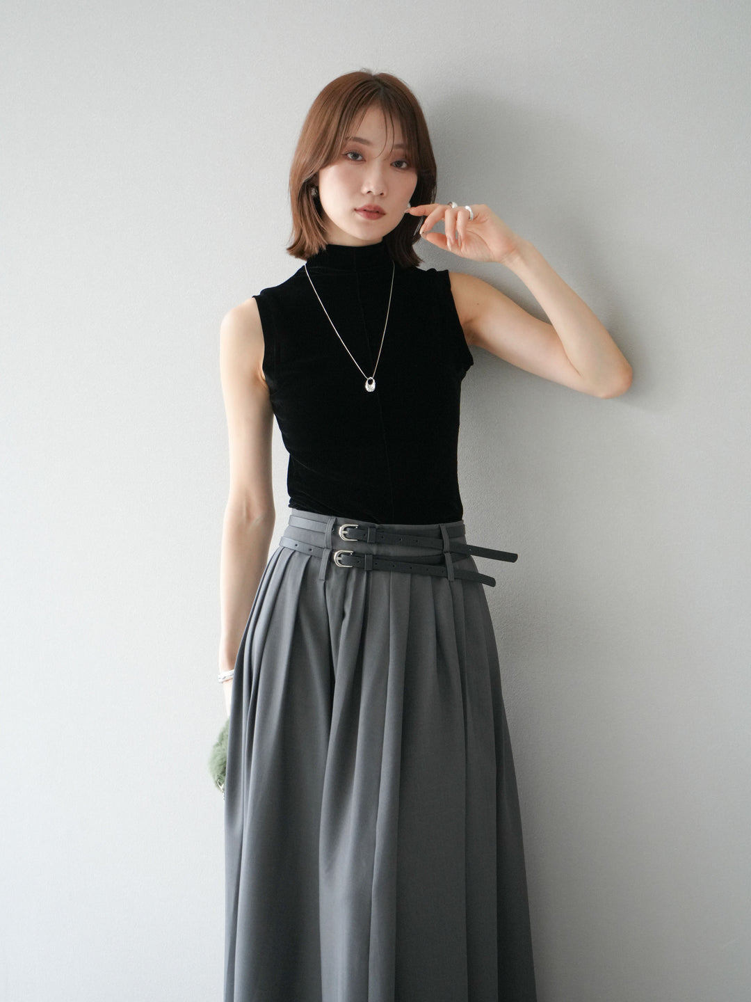 [予約]シアーベロアプチネックノースリーブトップス/ブラック