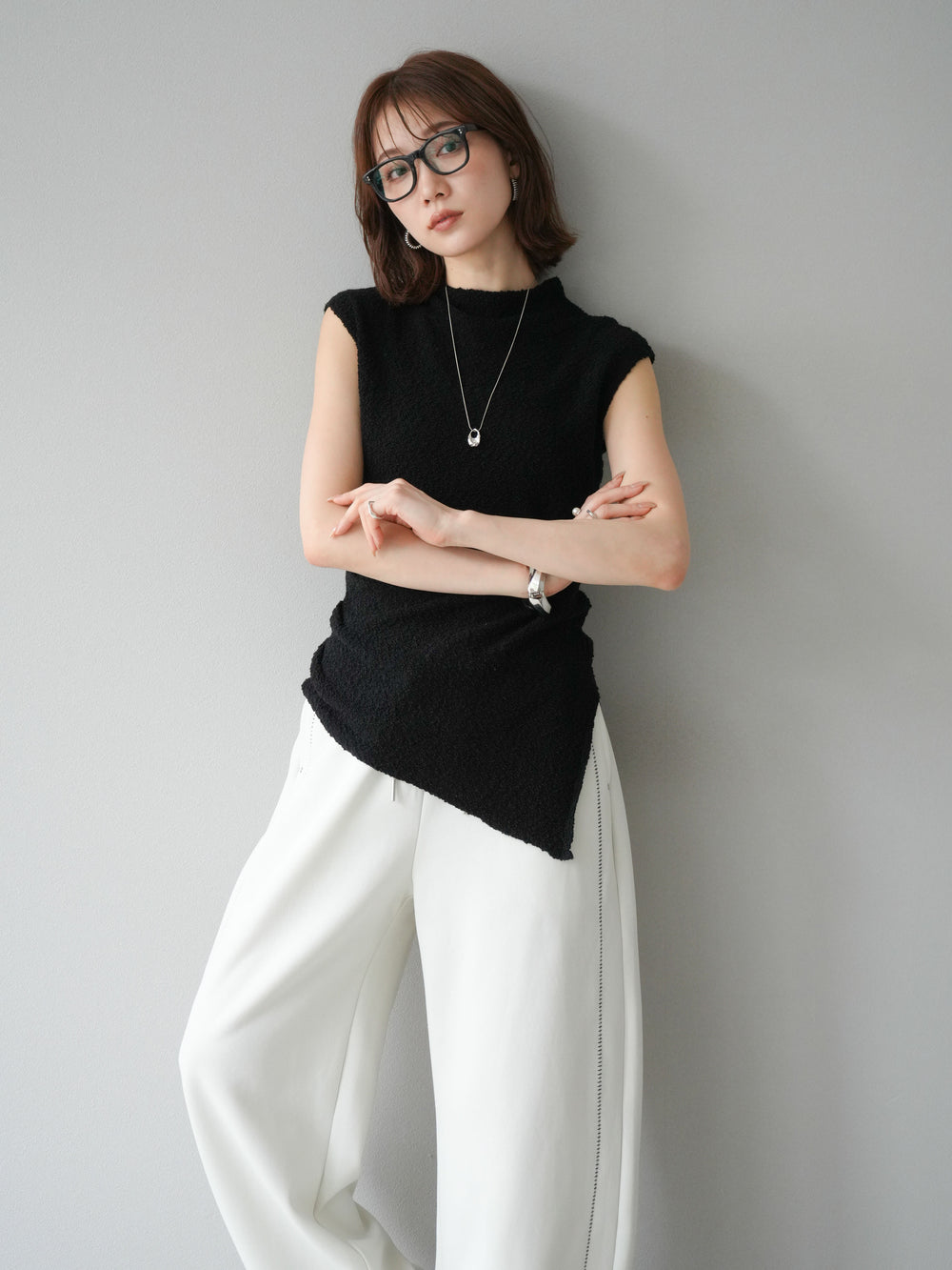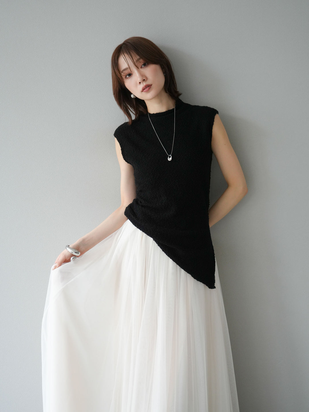 [予約]ブークレアシメニットノースリーブトップス/ブラック