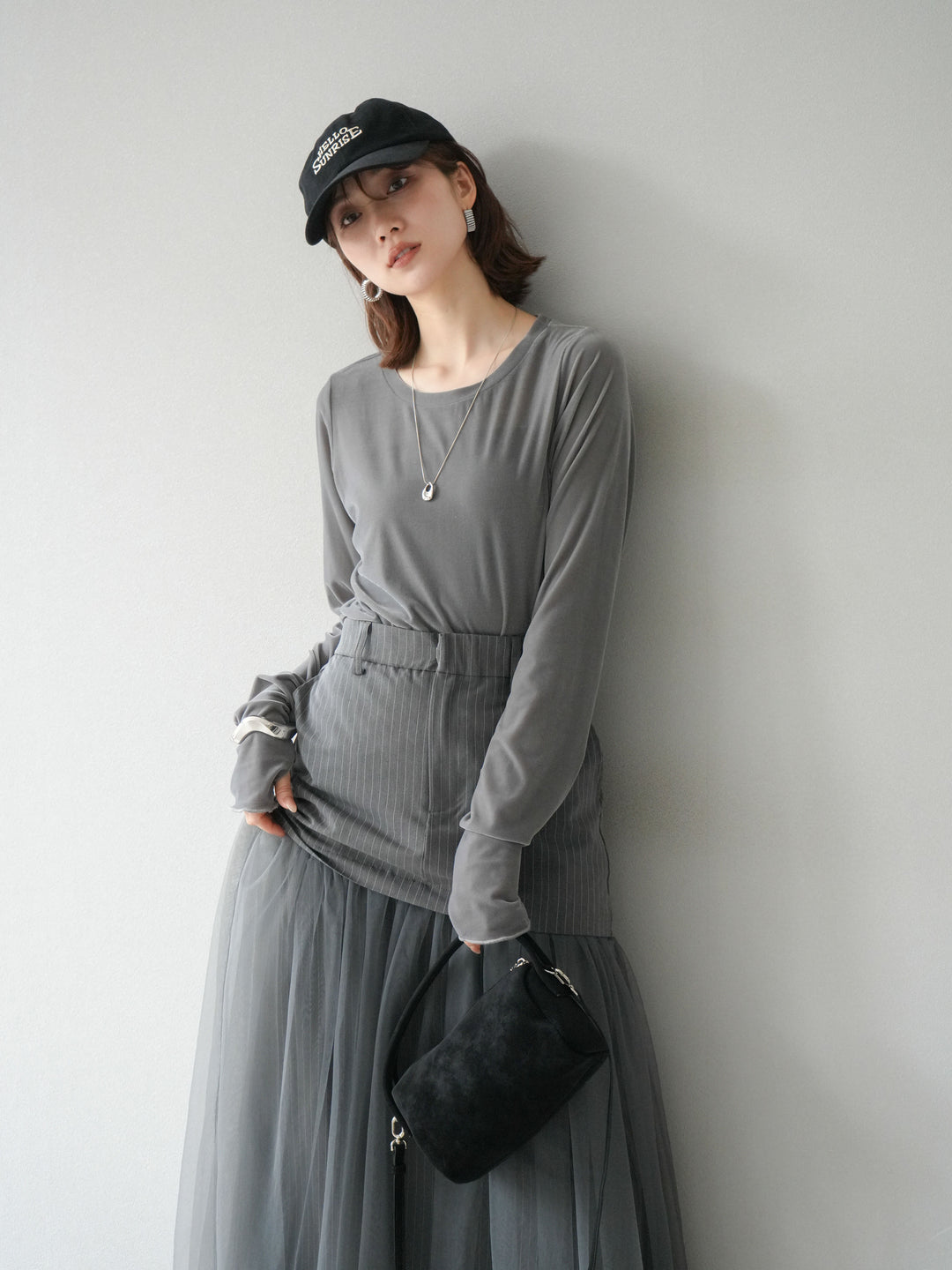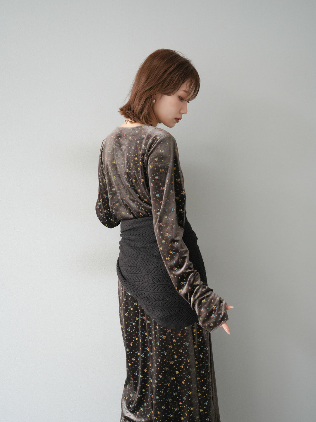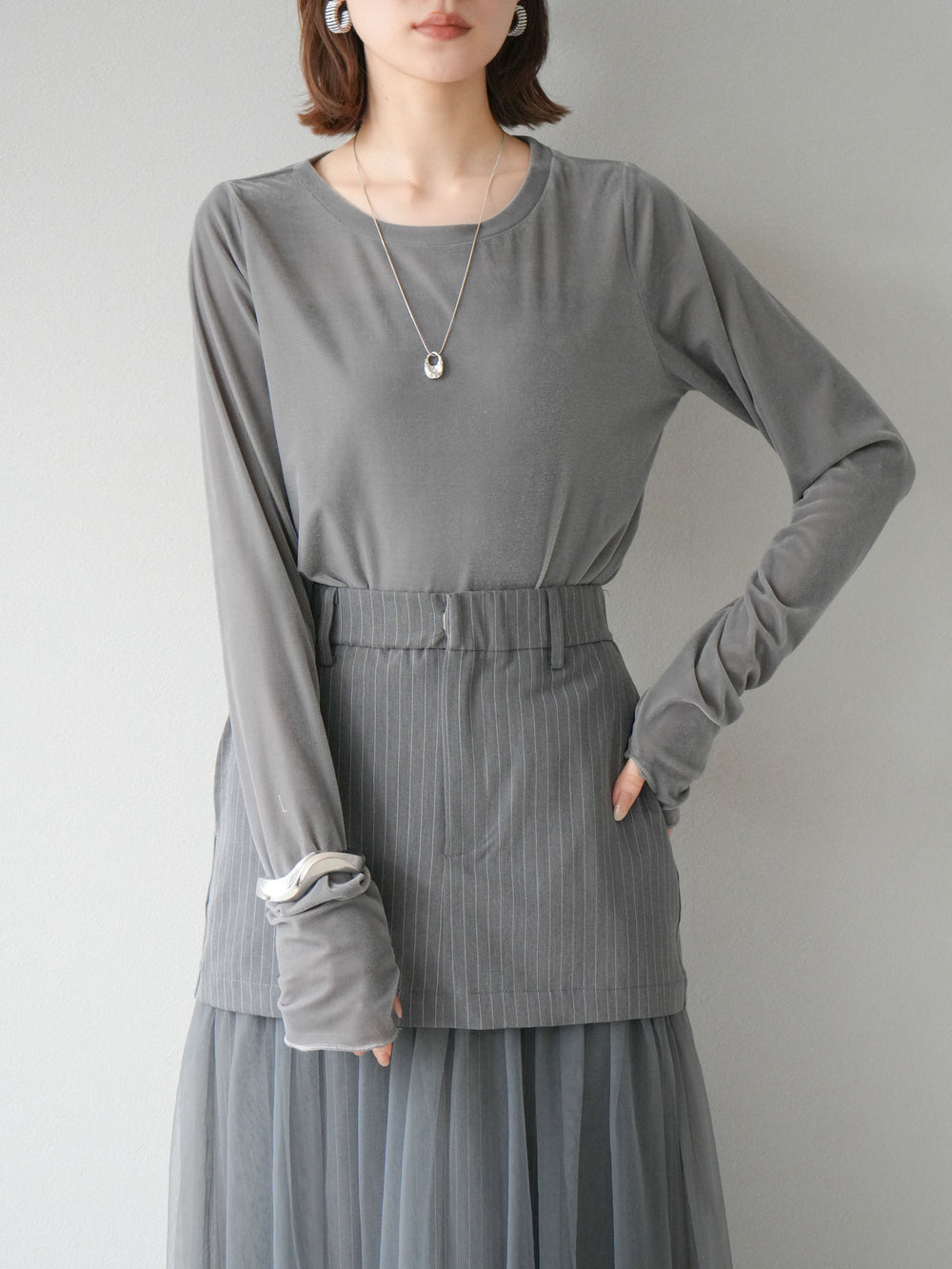 [予約]シアーベロアフィンガーホールトップス/グレー
