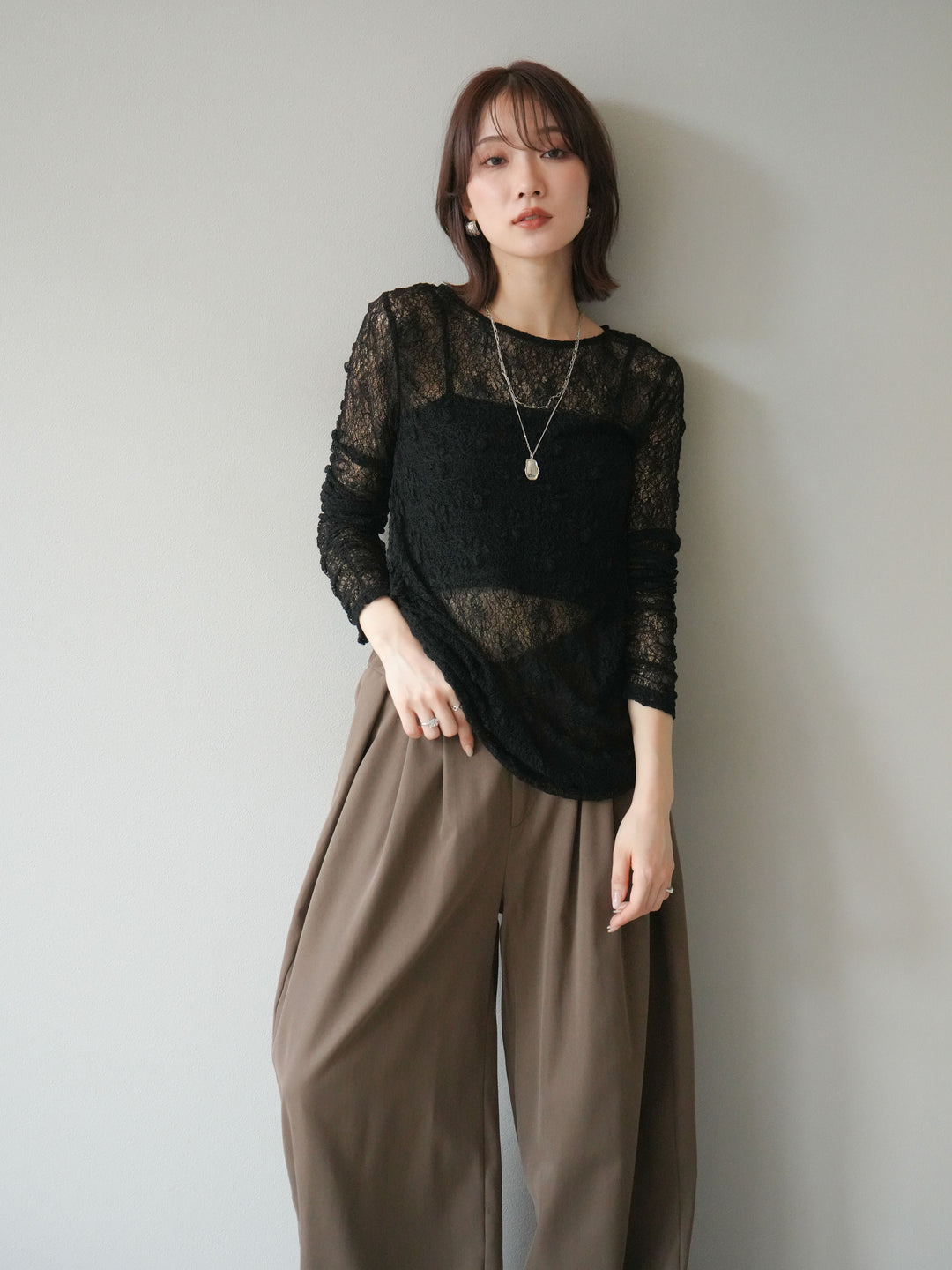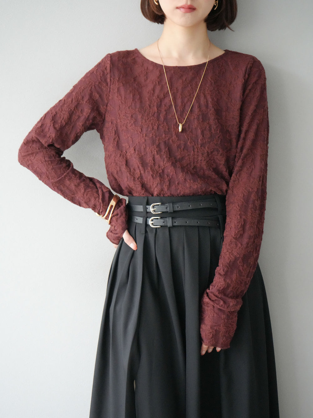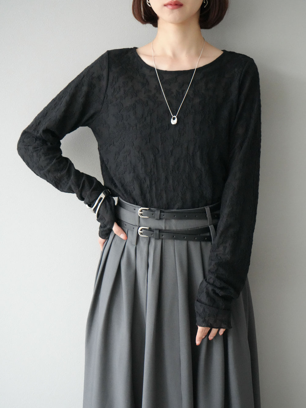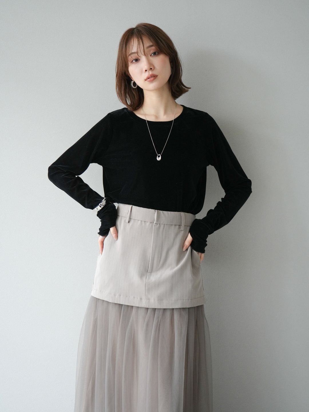 [予約]シアーベロアフィンガーホールトップス/ブラック