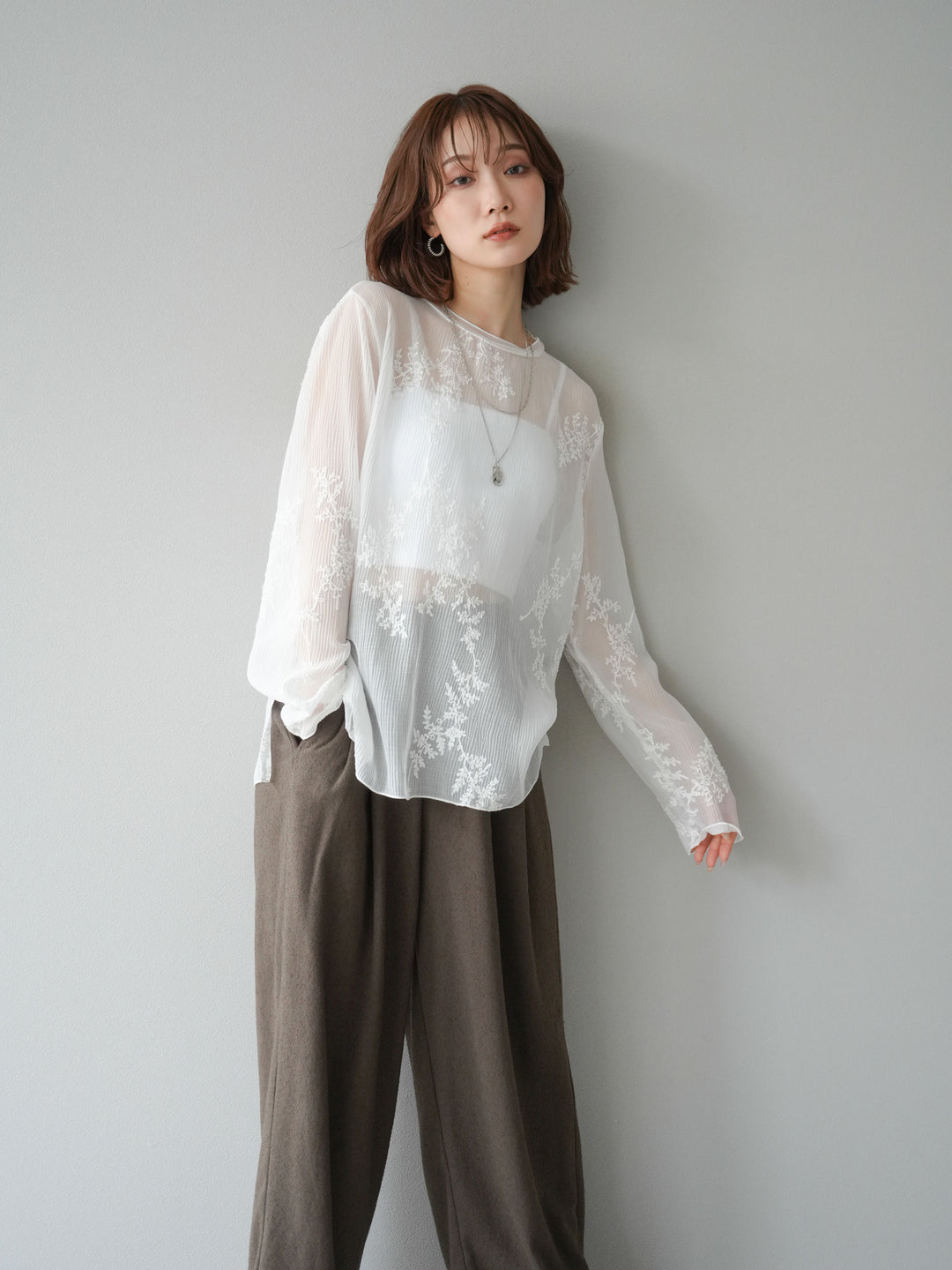 [予約]フラワーフロッキーシアートップス/ブラウン