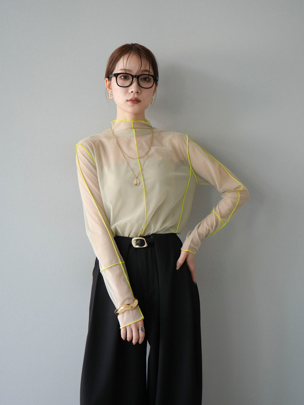 [予約]シアーパイピングカットソー/ピスタチオ×イエロー