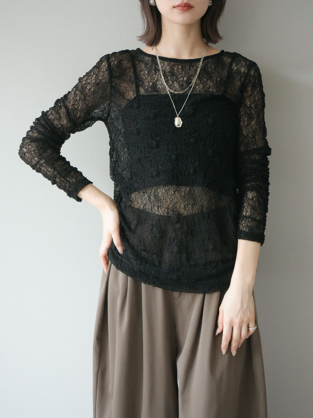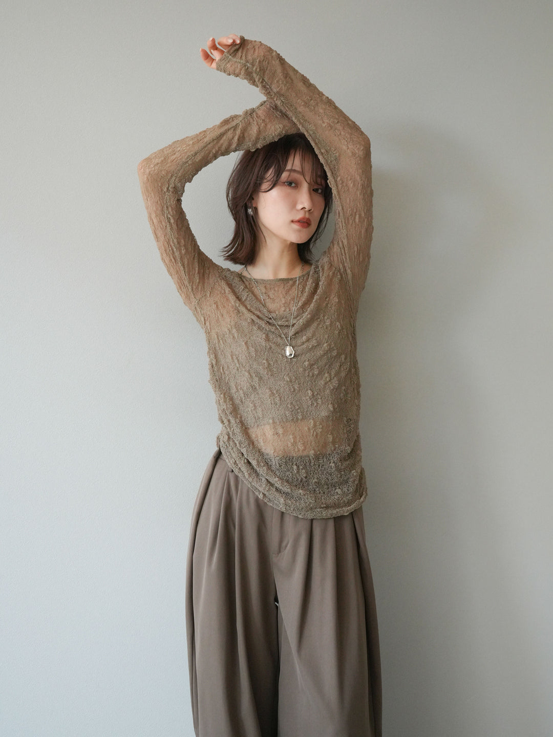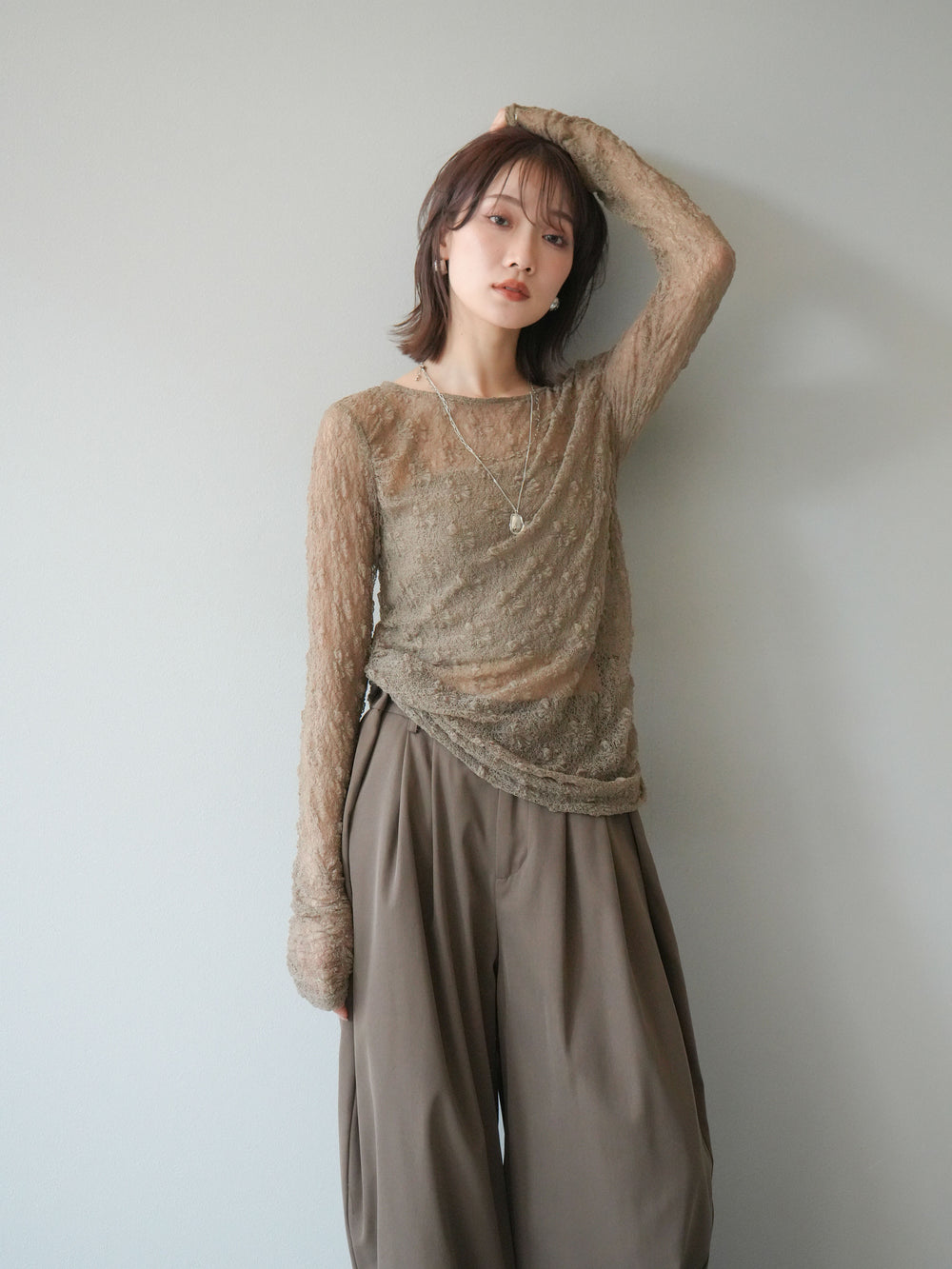 [予約]ニュアンス柄シアートップス/カーキ