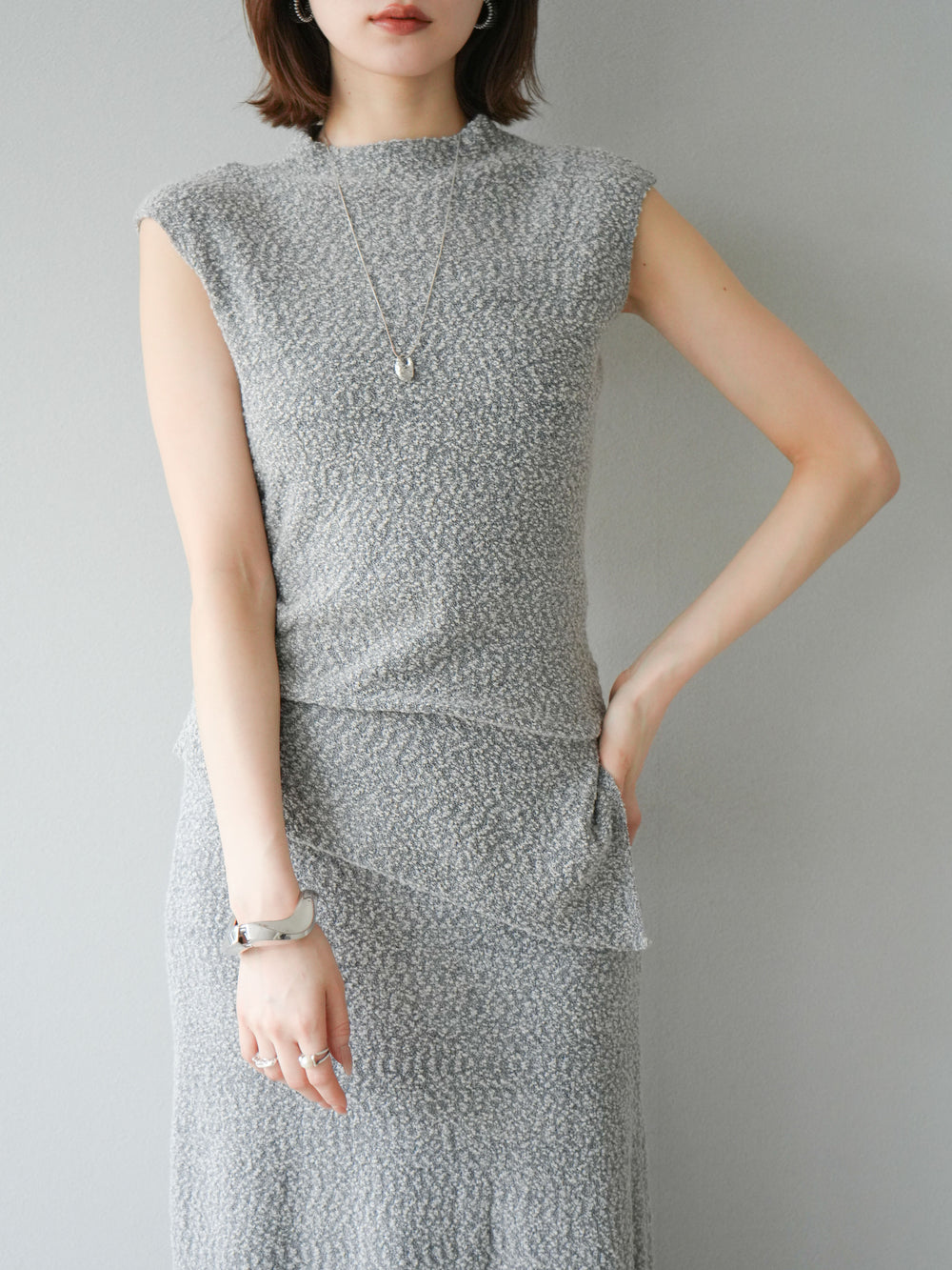 [予約]ブークレアシメニットノースリーブトップス/グレー