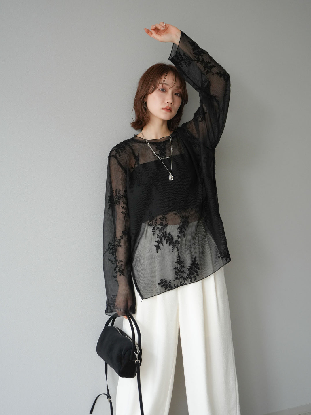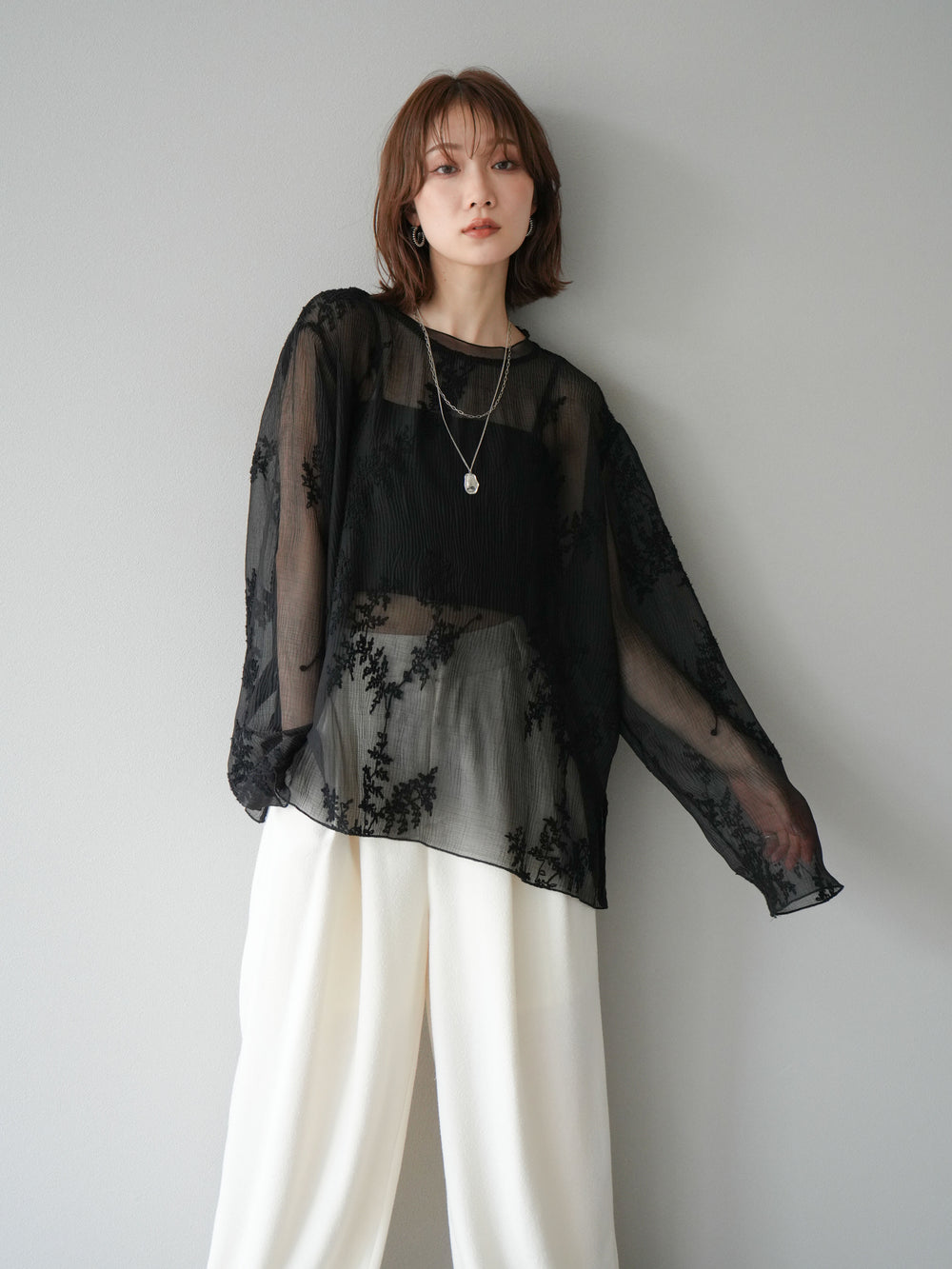 [予約]刺繍シアープルオーバー/ブラック