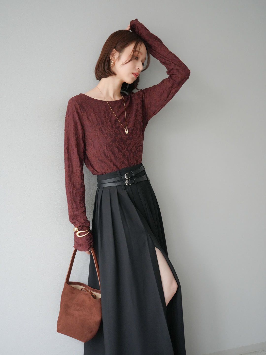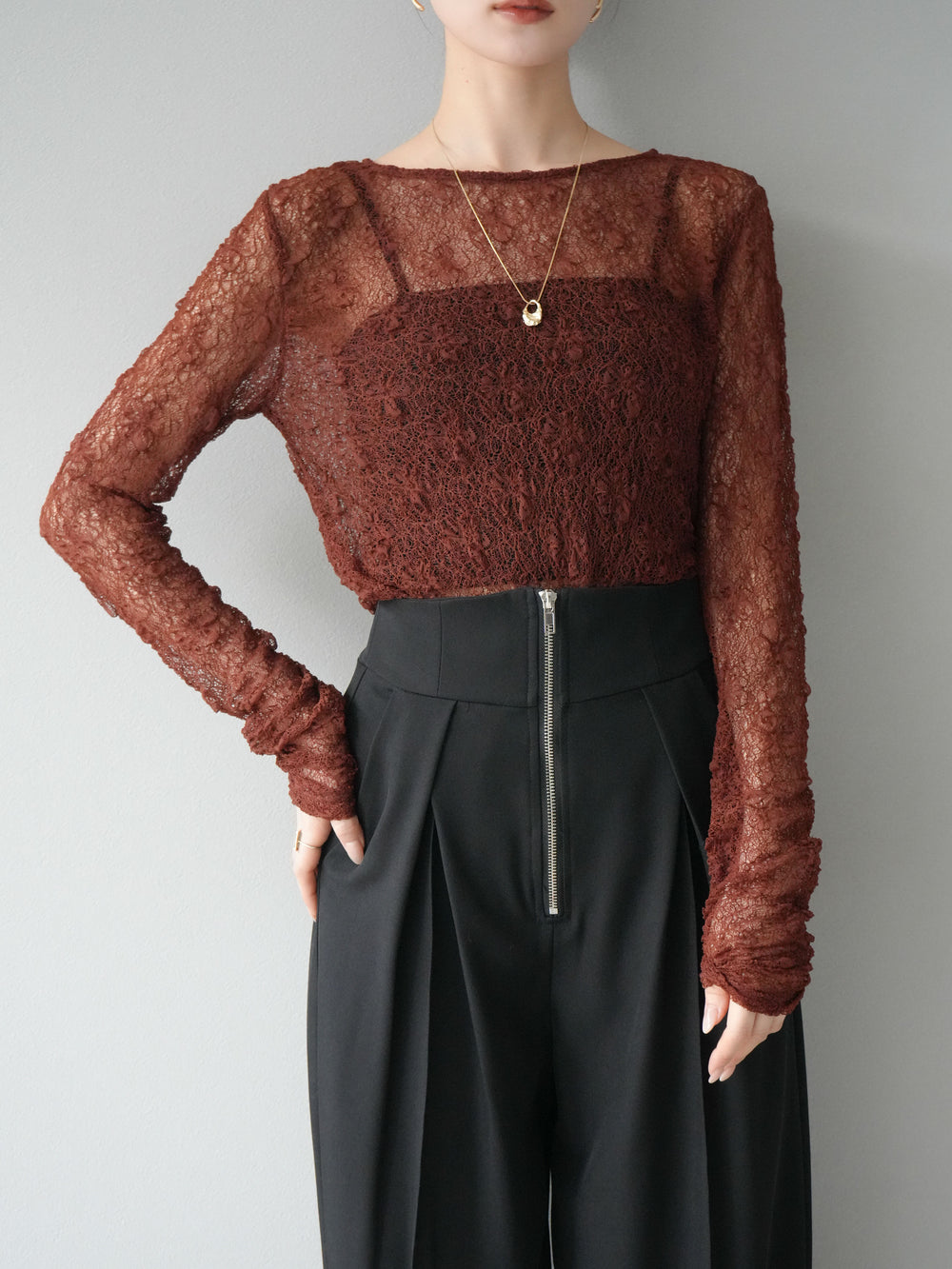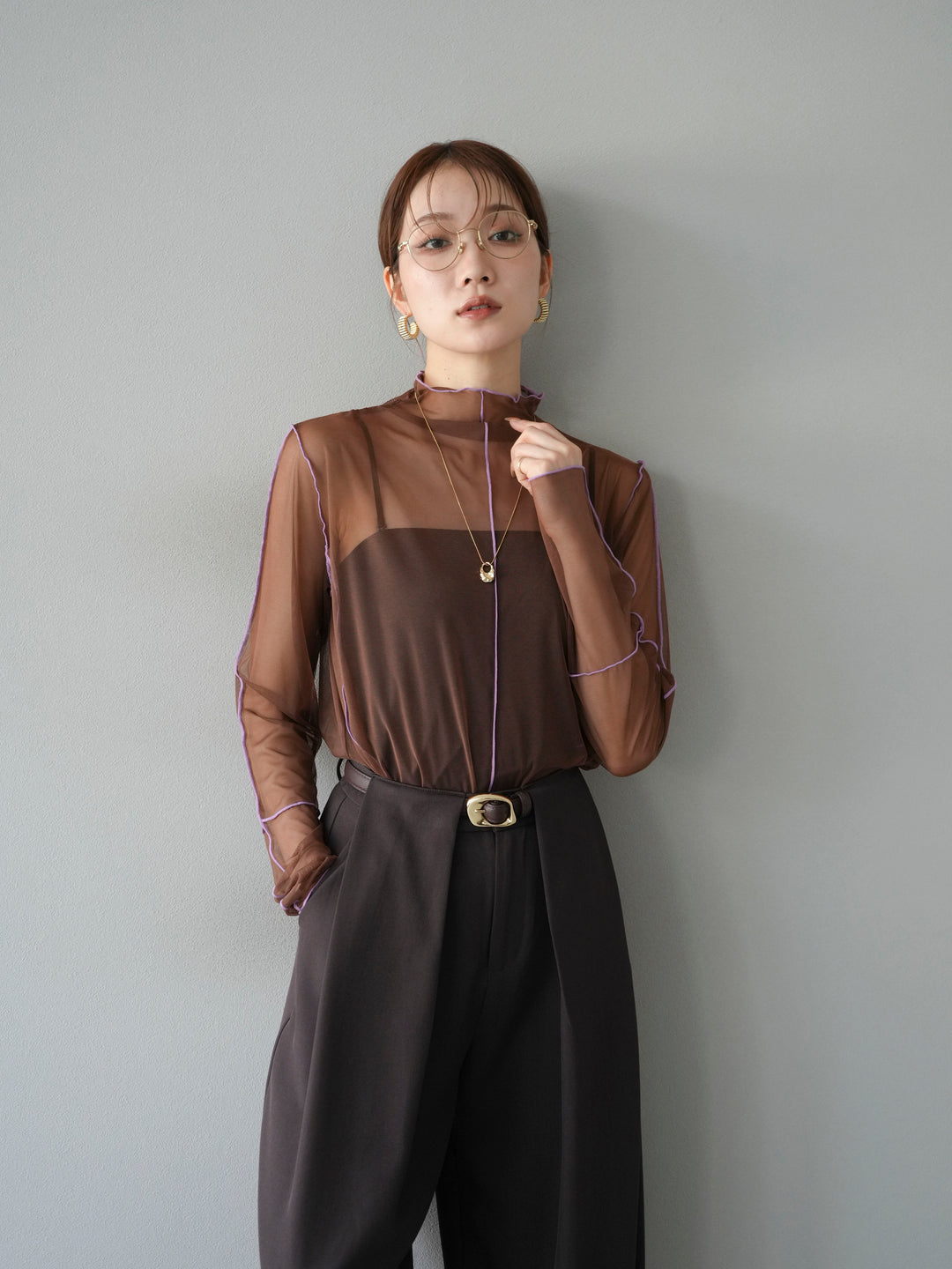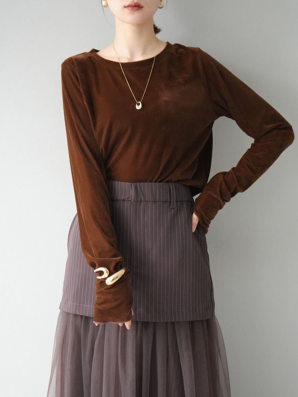 [予約]シアーベロアフィンガーホールトップス/ブラウン