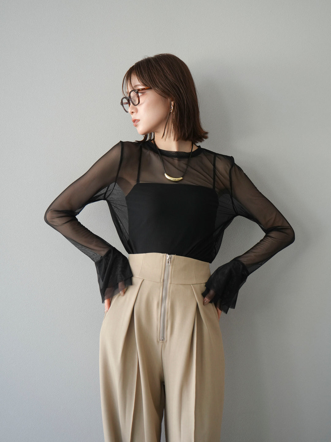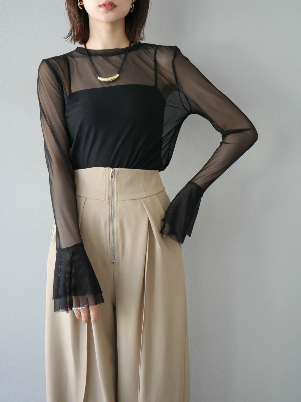 [予約]フレアロングスリーブパワーメッシュトップス/ブラック