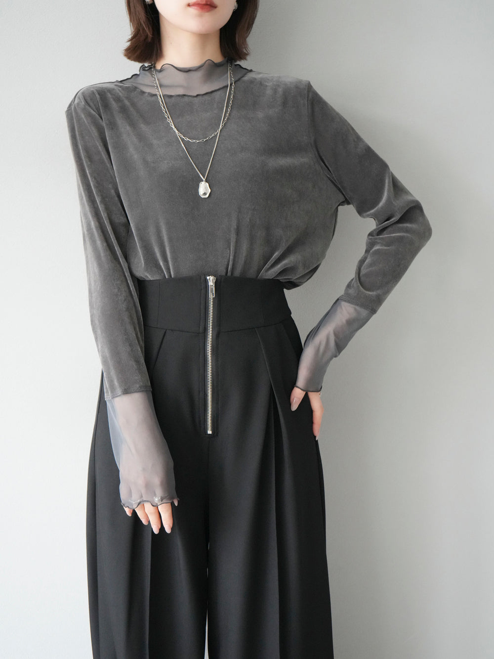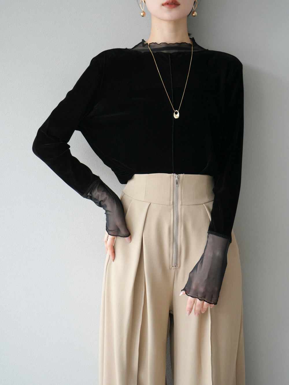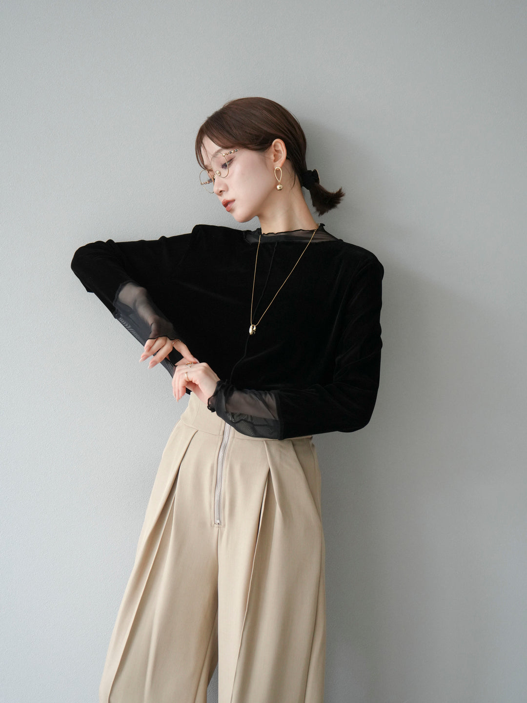 [予約]シアーベロアプチネックノースリーブトップス/アイボリー
