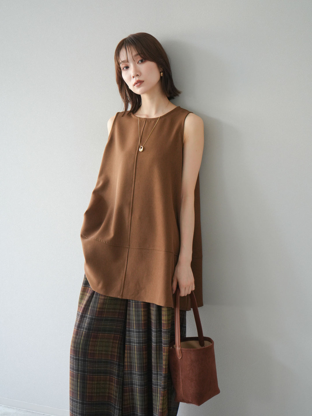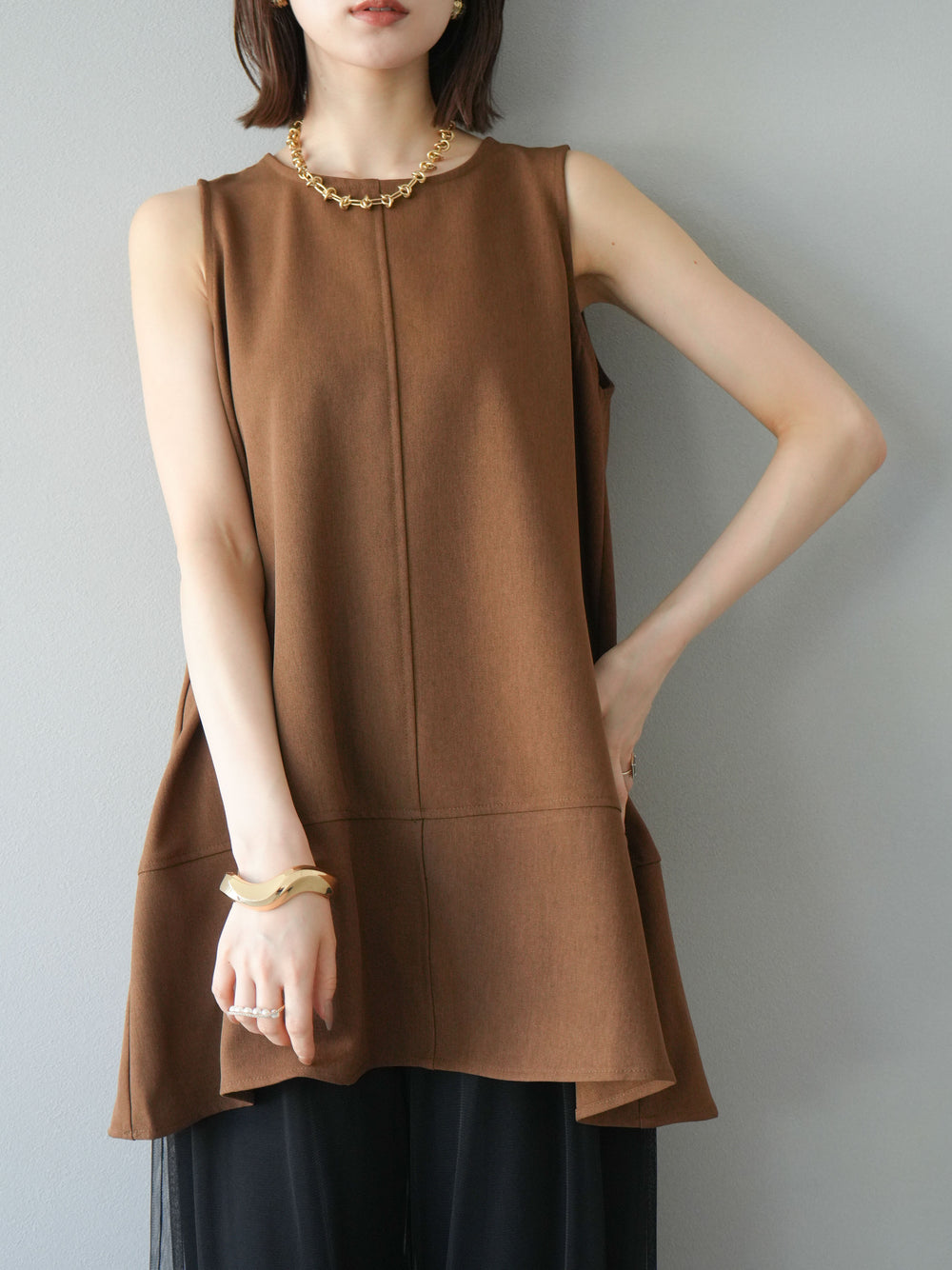 [予約]シアーベロアプチネックノースリーブトップス/ブラウン