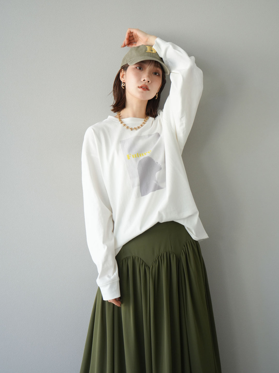 [予約]ピグメントロゴプリントTシャツ/アイボリー