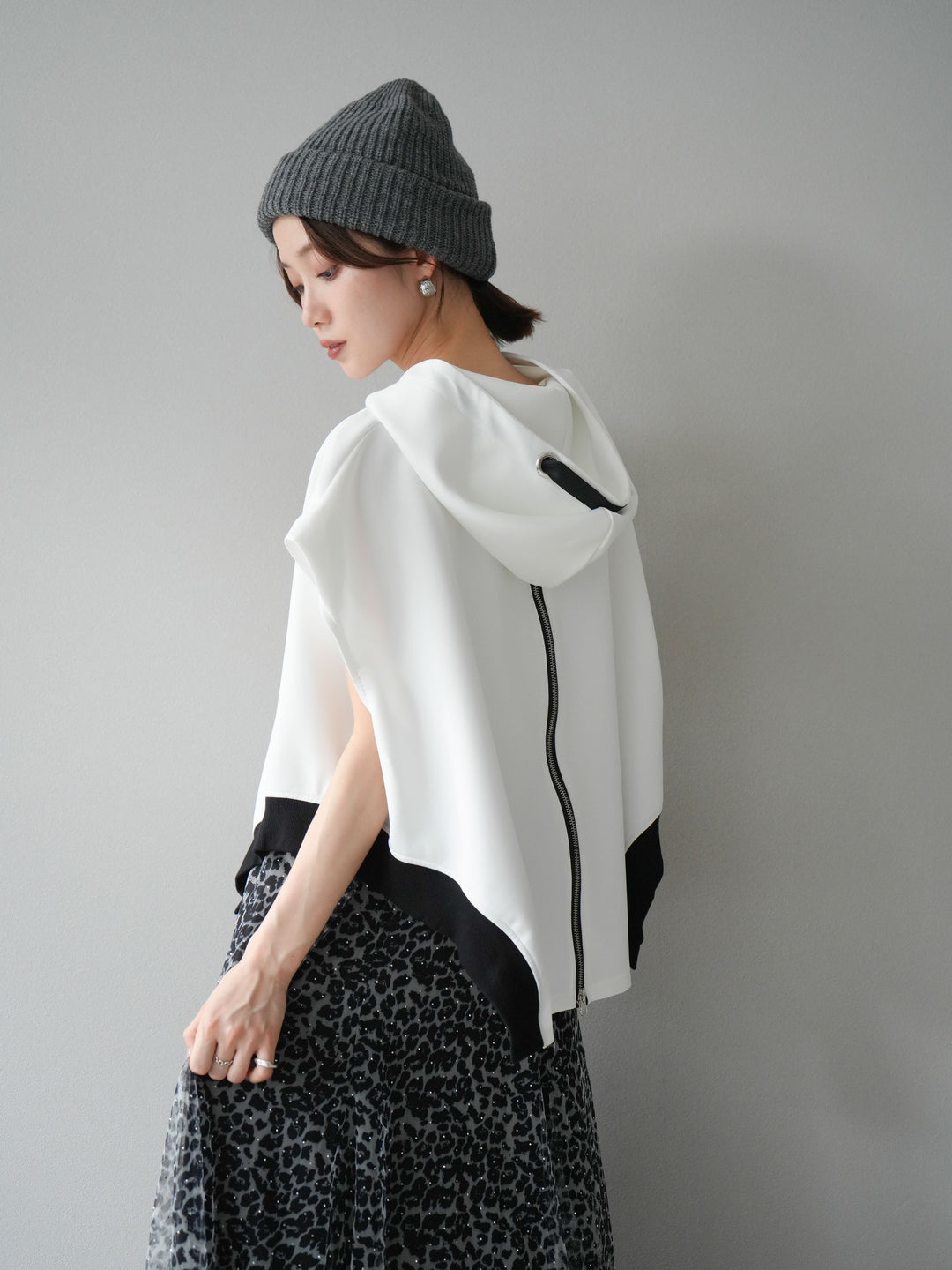 [予約]アシンメトリードルマンバックZIPフーディー/オフホワイト