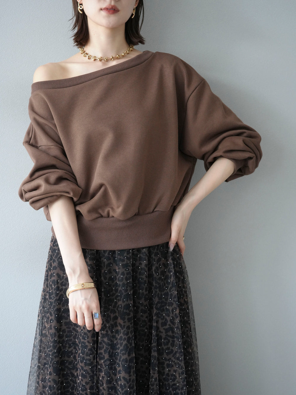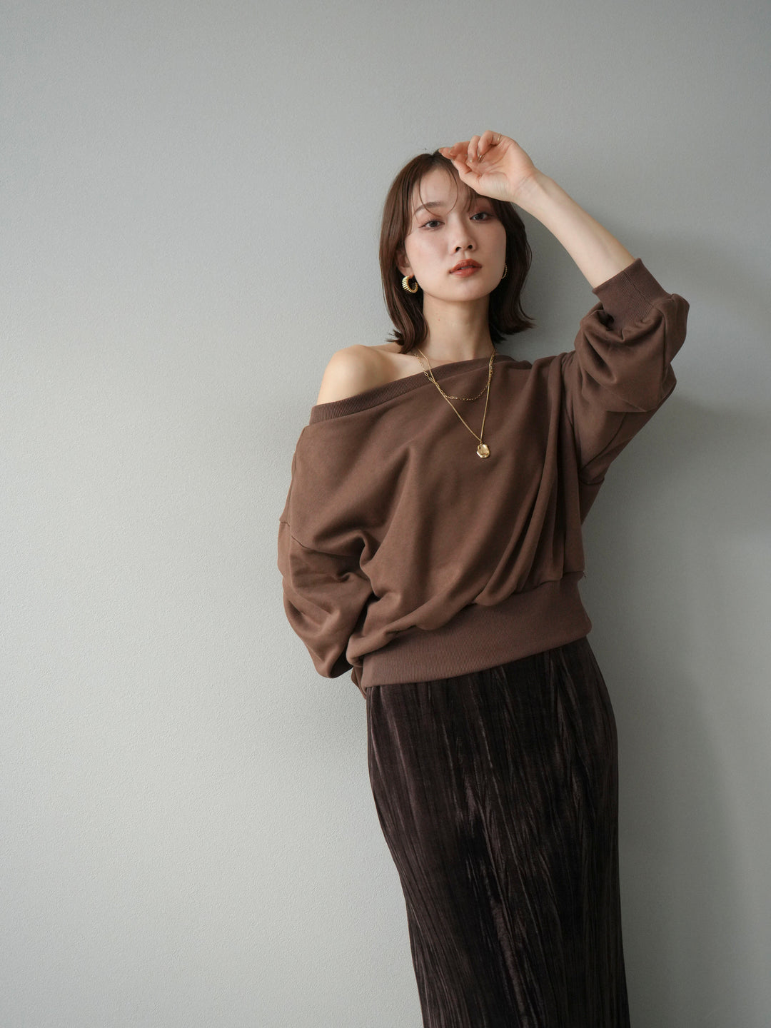 [予約]オフショルスウェットプルオーバー/ブラウン